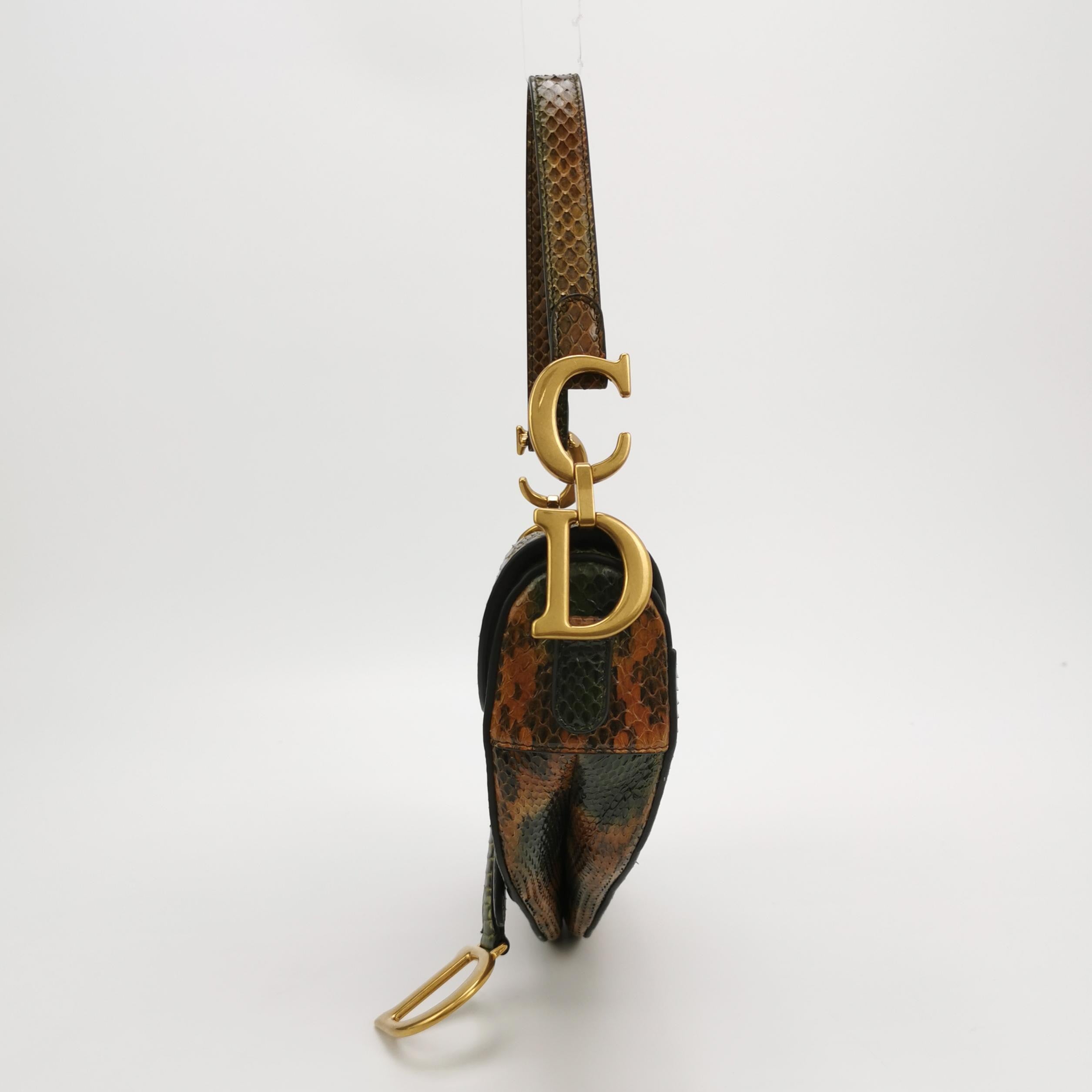 Dior Saddle Medium Green and Brown Snake-Skin Leather Bag