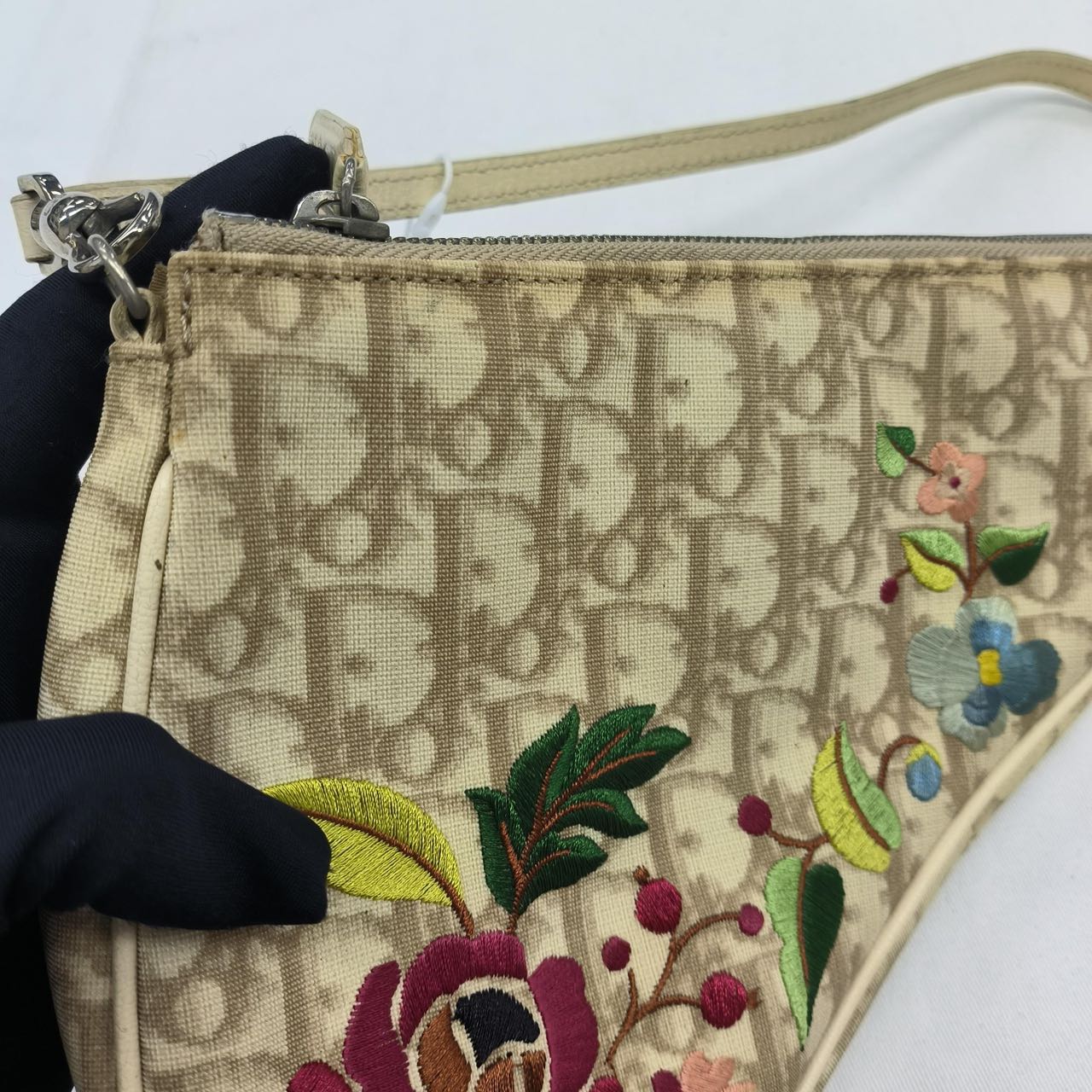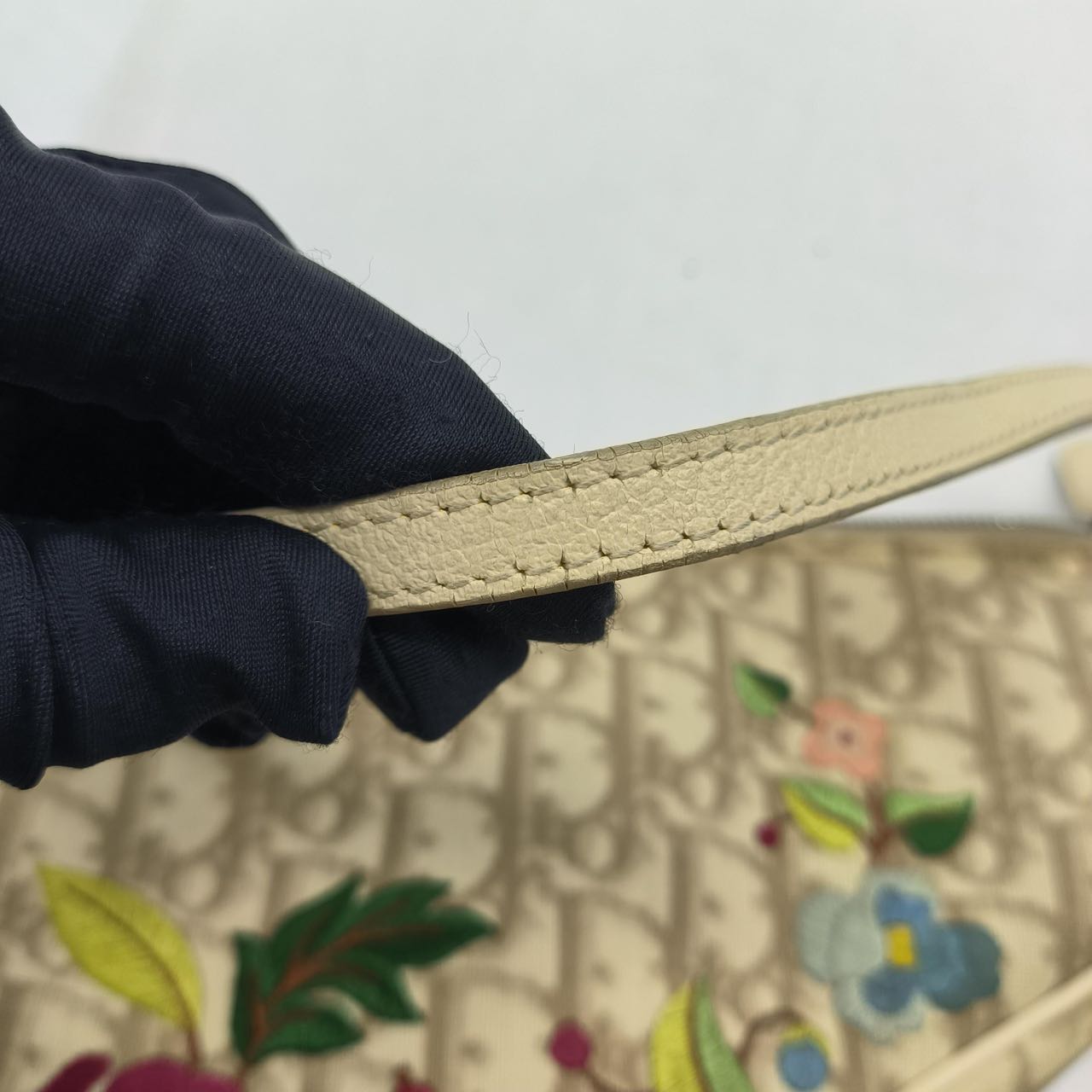 Dior Saddle Mini Classic Cream White Oblique Flower Embroidery