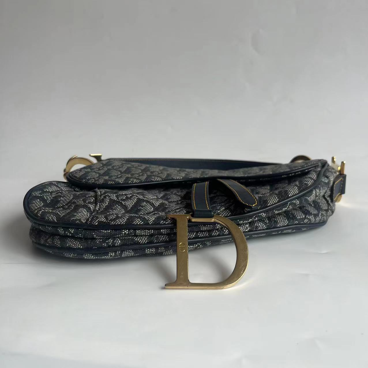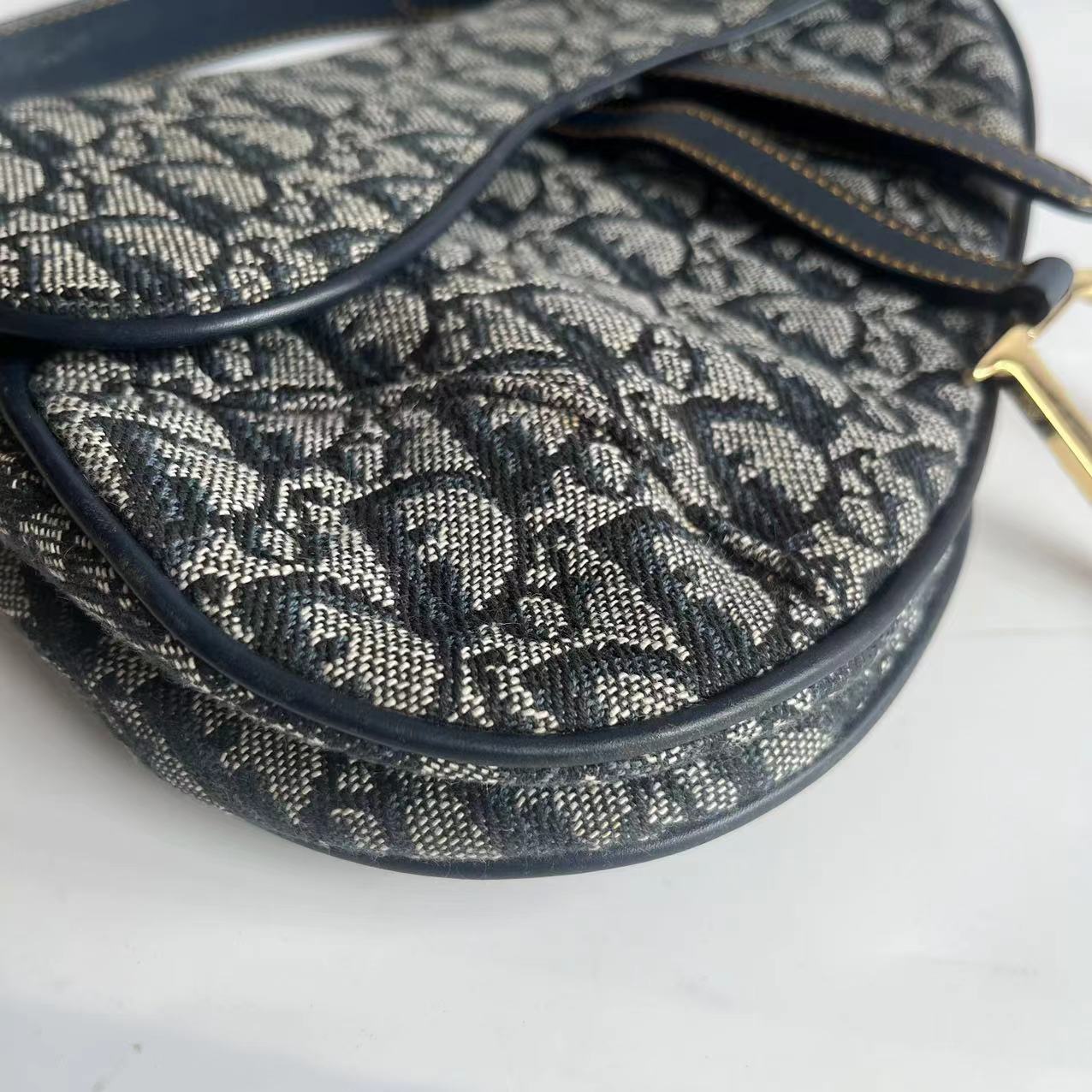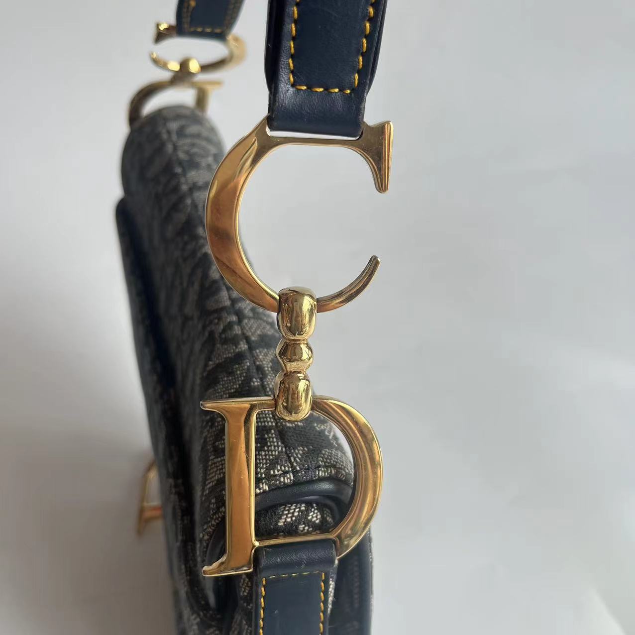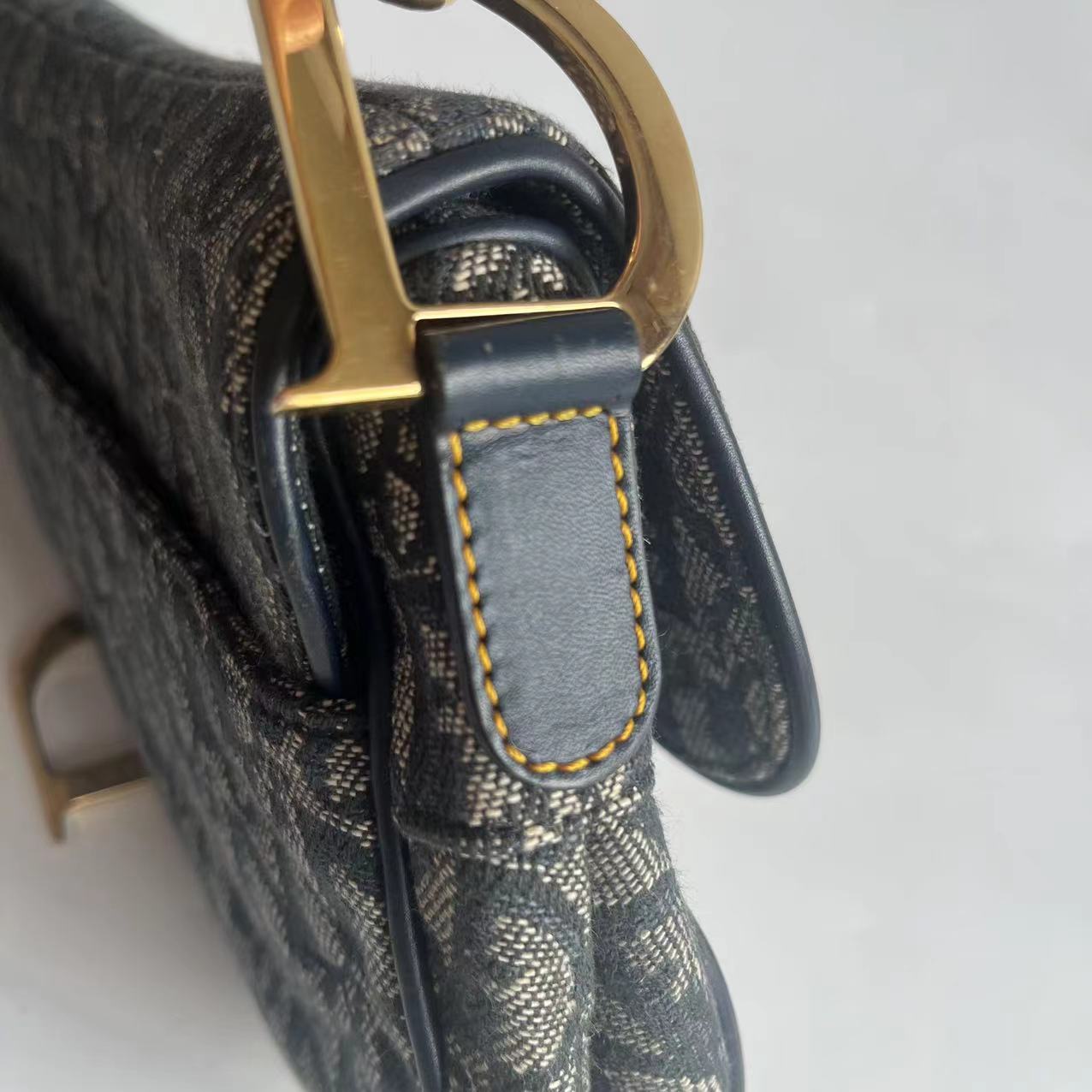 Dior Saddle Vintage Navy Oblique with Multicolor Silk Lining