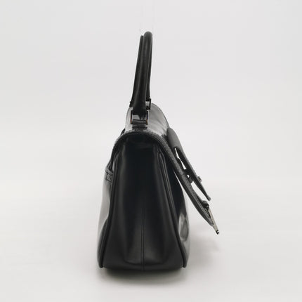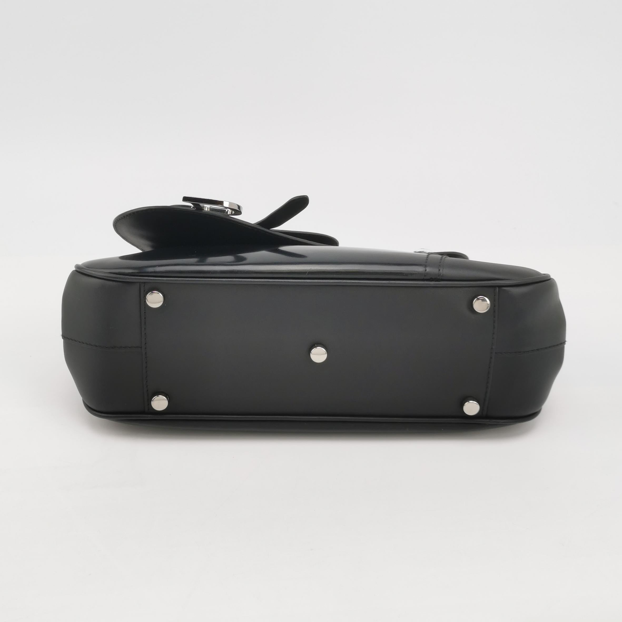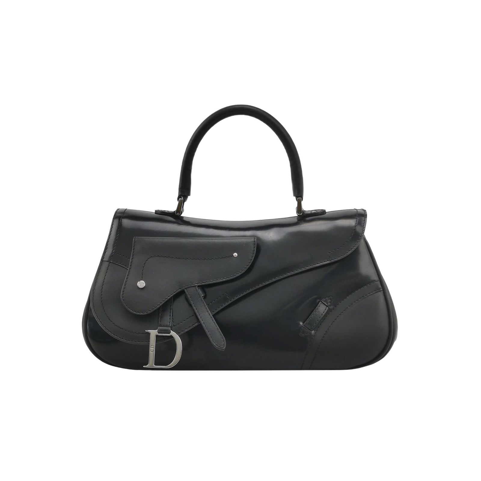 Dior Top Handle Saddle Bag Black Smooth Shiny Calfskin Leather
