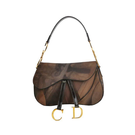Dior Vintage Double Saddle Printed Nylon Shoulder Bag