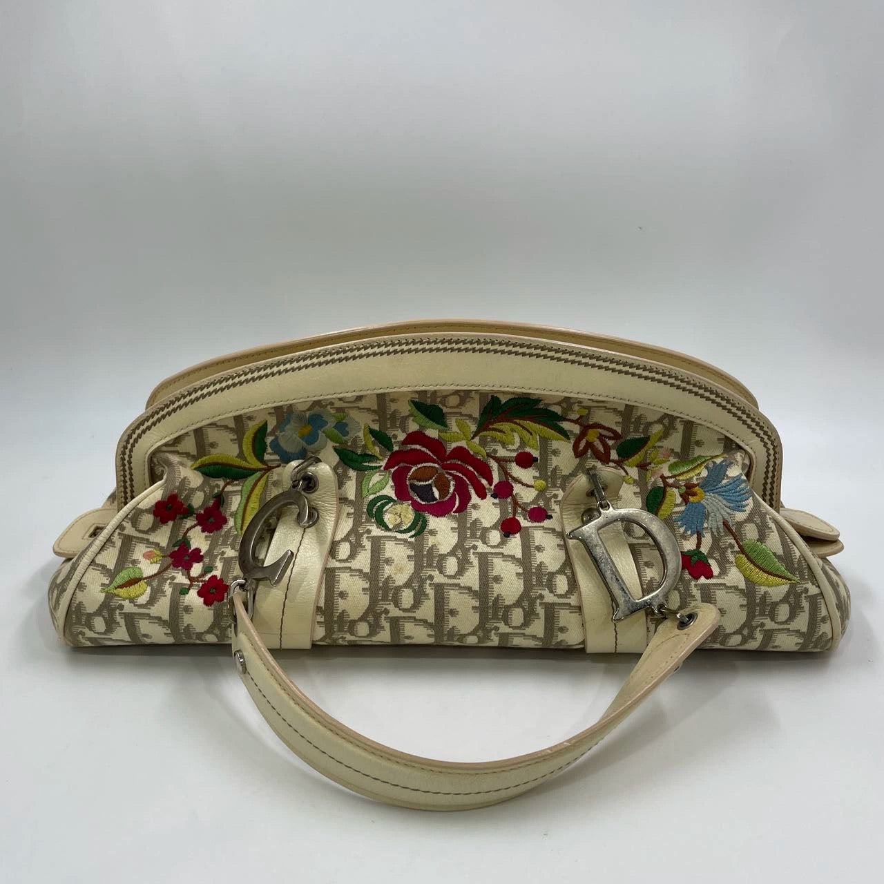 Dior Vintage Embroidered Diorissimo Bowler Bag Top White Monogram
