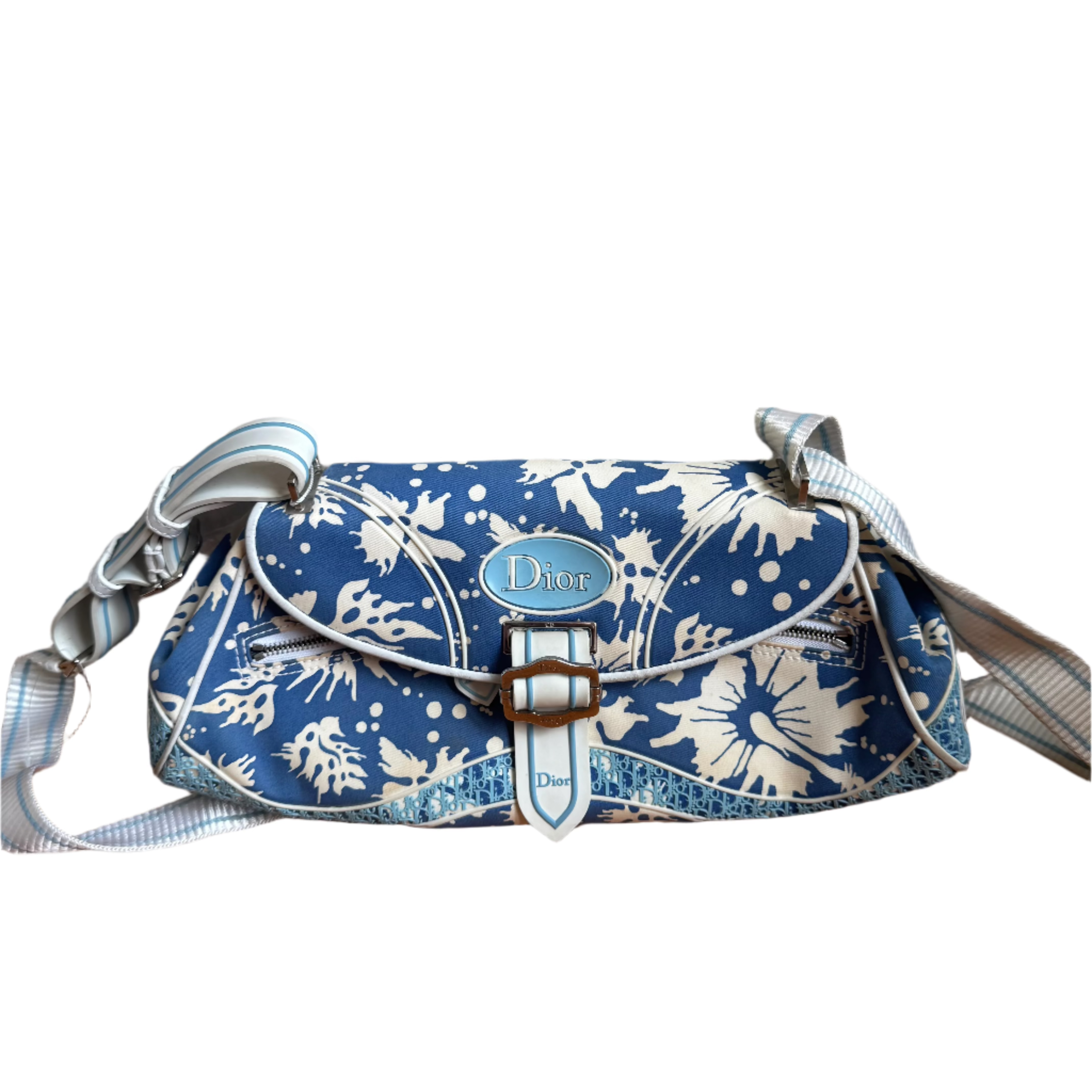 Dior Vintage Surf Chick Shoulder Bag Blue and White Chinese Porcelain Print