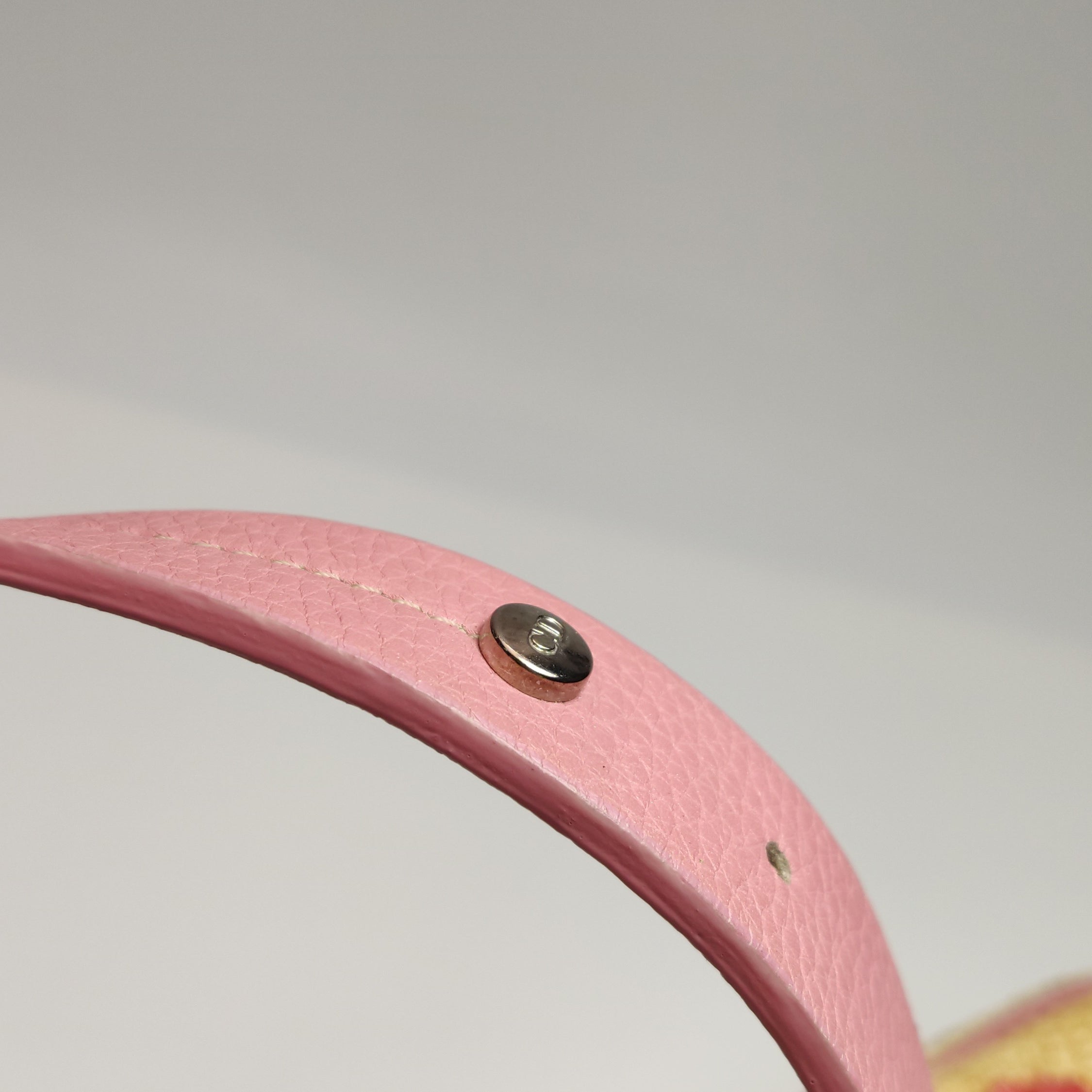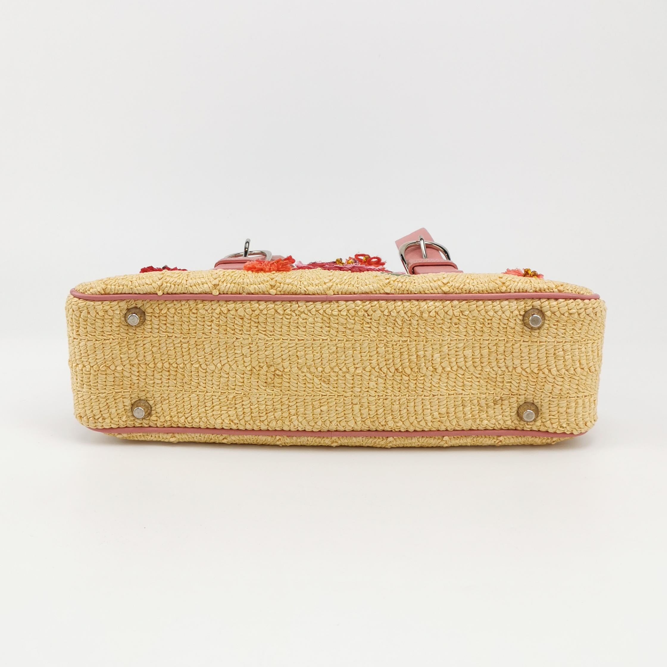Dior Wicker Boston Bag Floral Embroidery Pink Leather