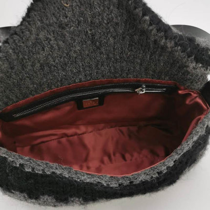 Fendi Baguette Bag Grey and White Wool Knit Shoulder Bag