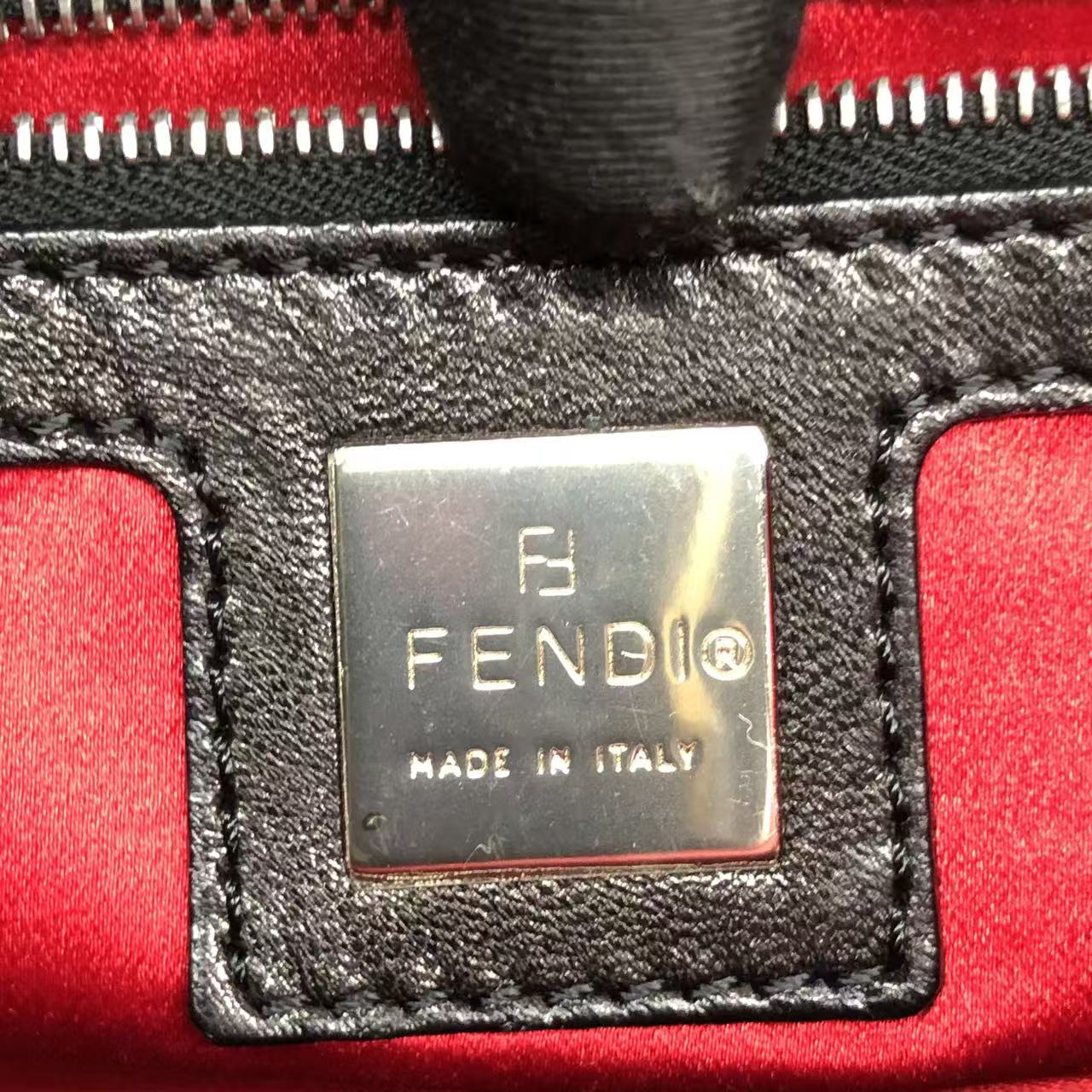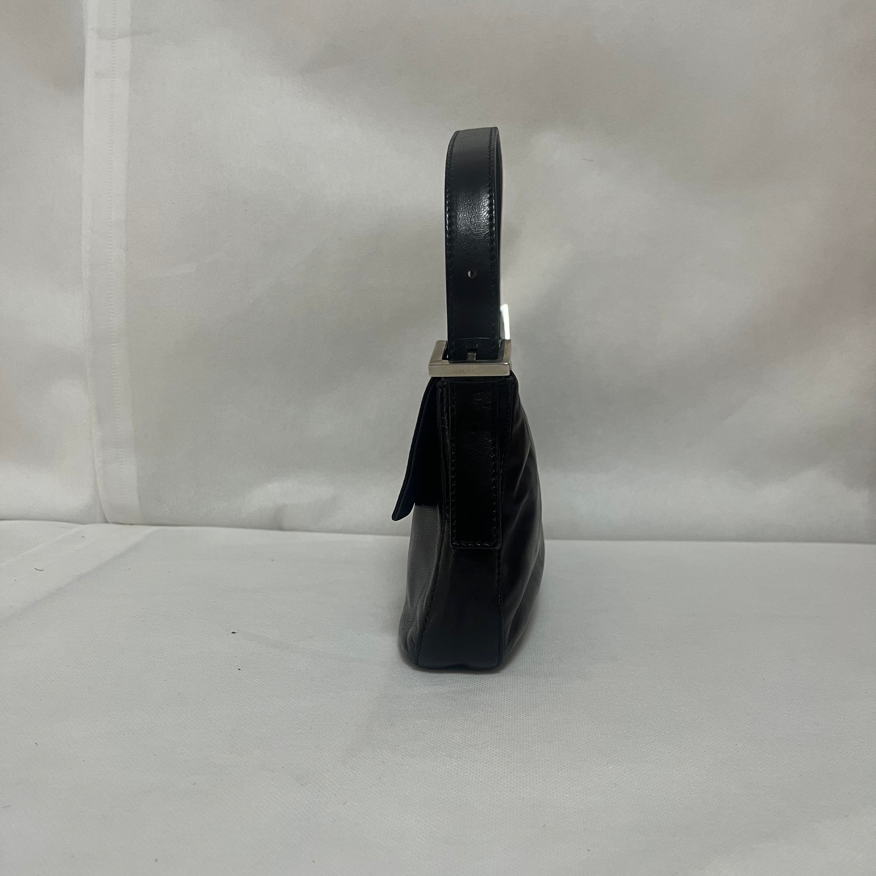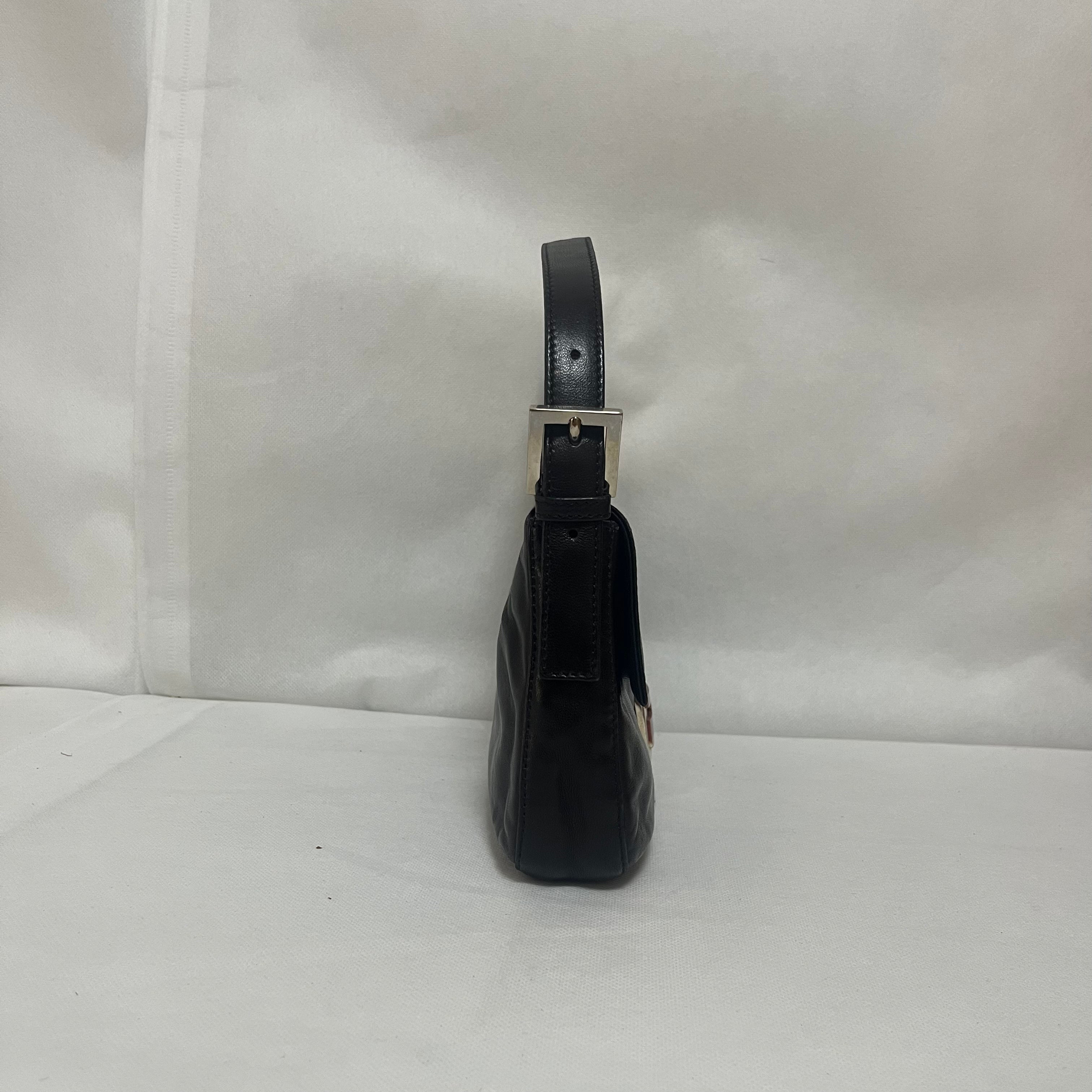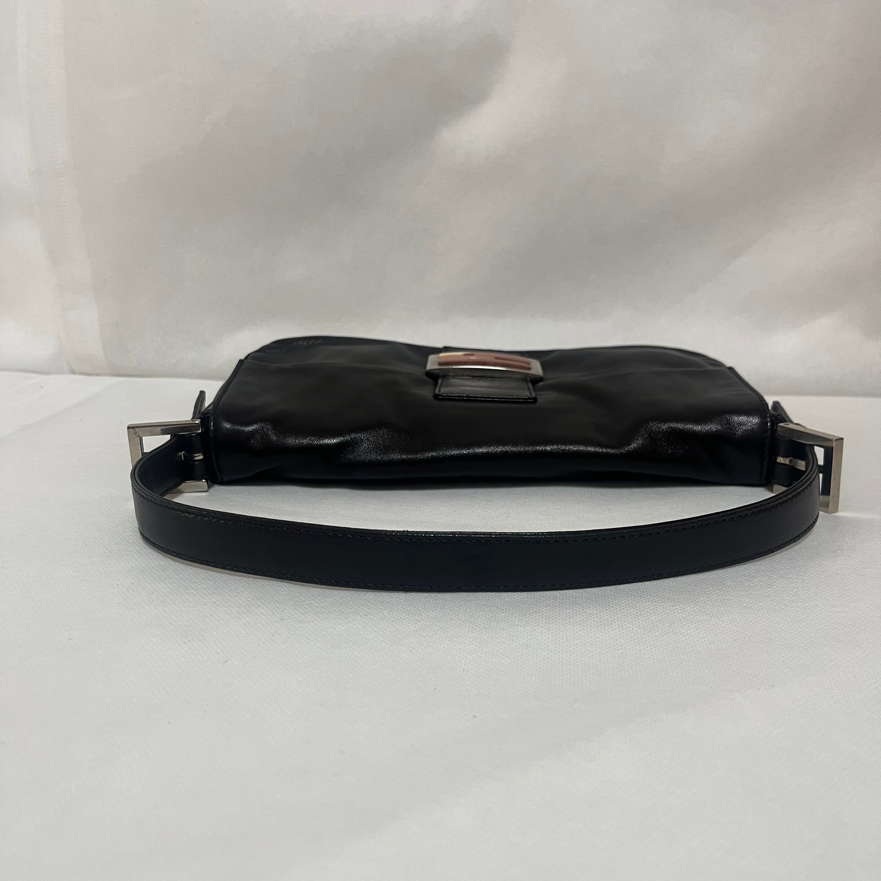Fendi Baguette Black Lambskin Leather Red Enamel Buckle Shoulder Bag