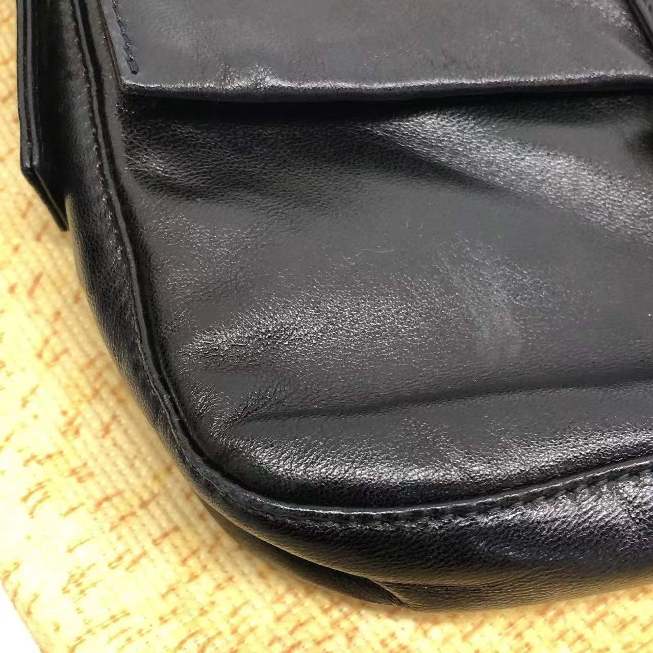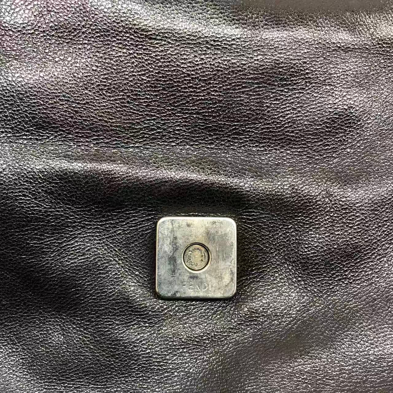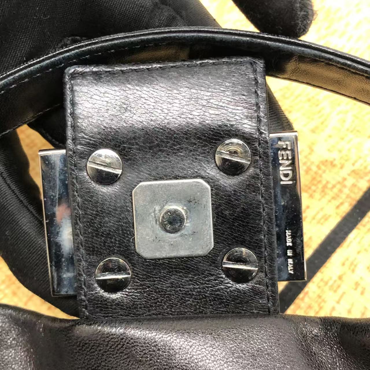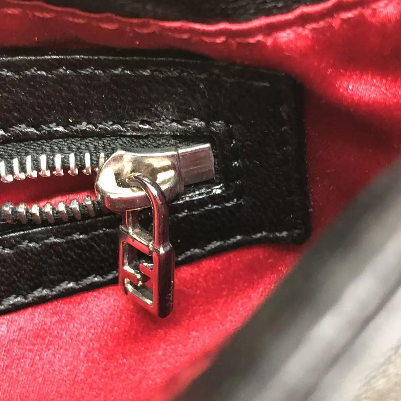 Fendi Baguette Black Lambskin Leather Red Enamel Buckle Shoulder Bag