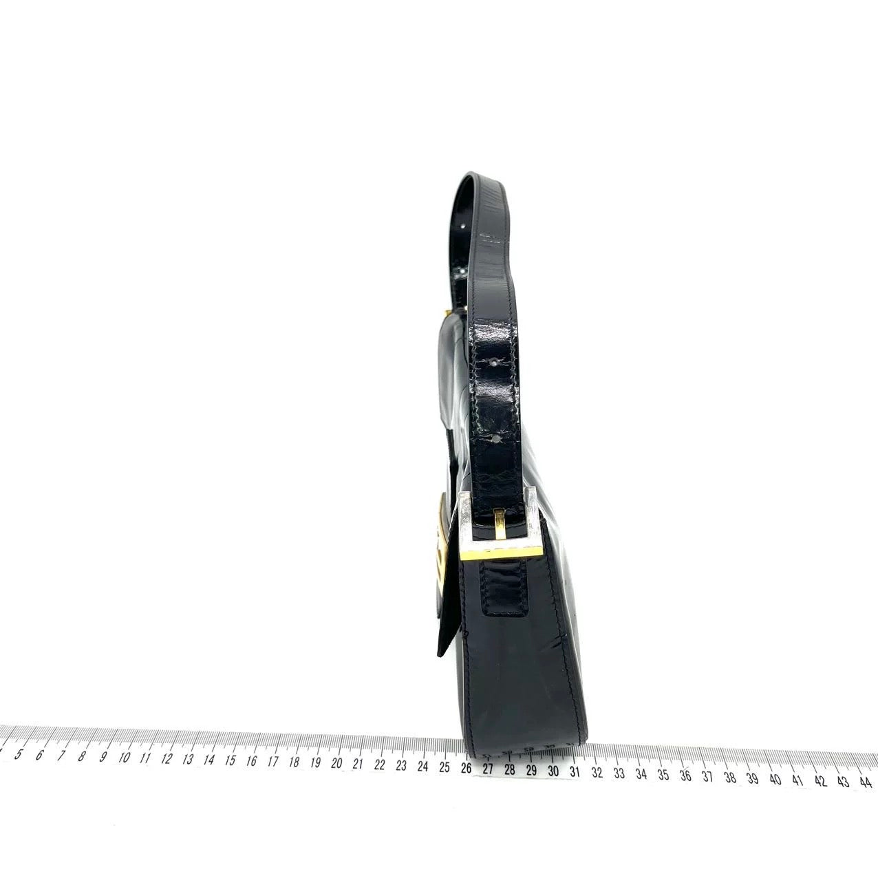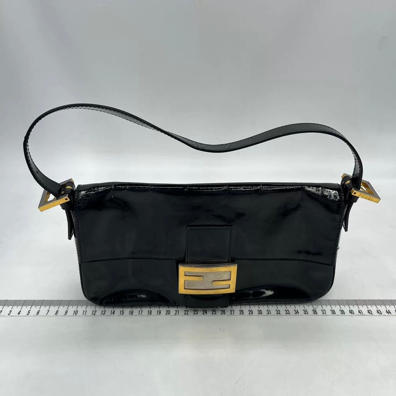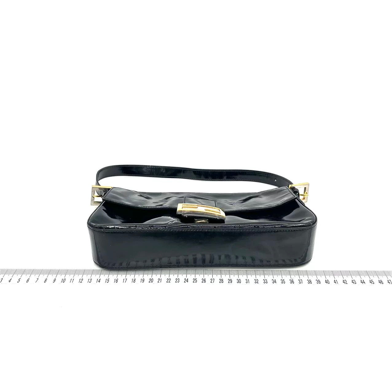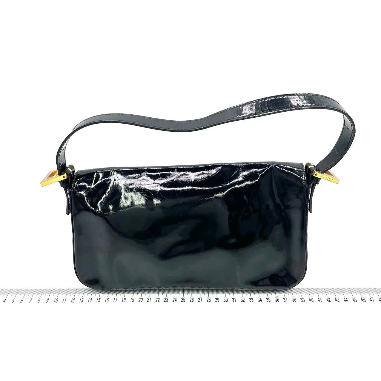 Fendi Baguette Black Patent Leather Gold Hardware Shoulder Bag