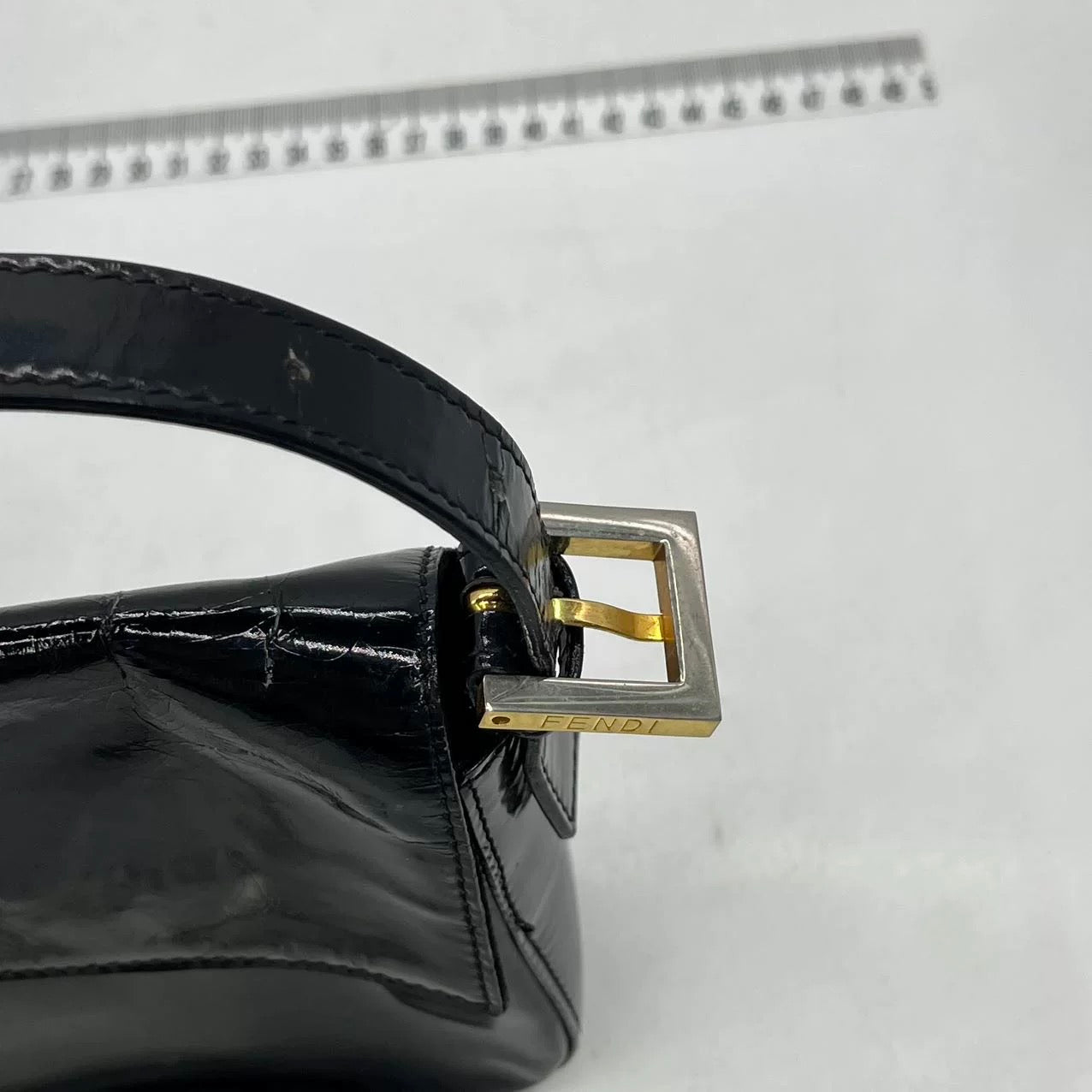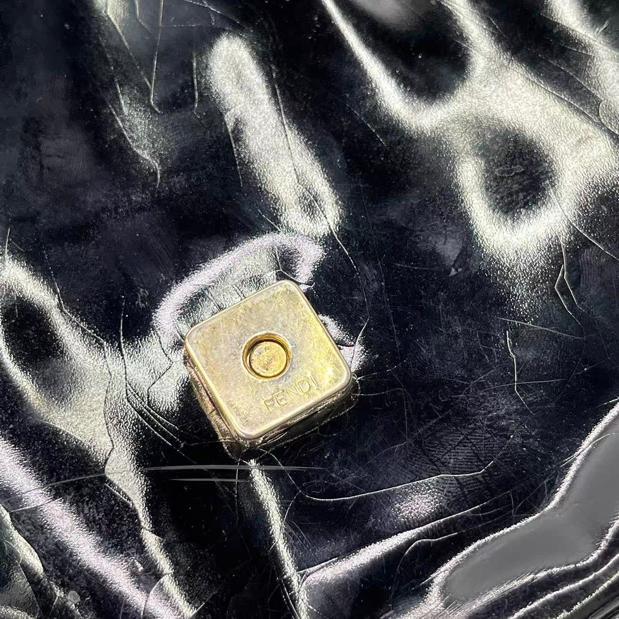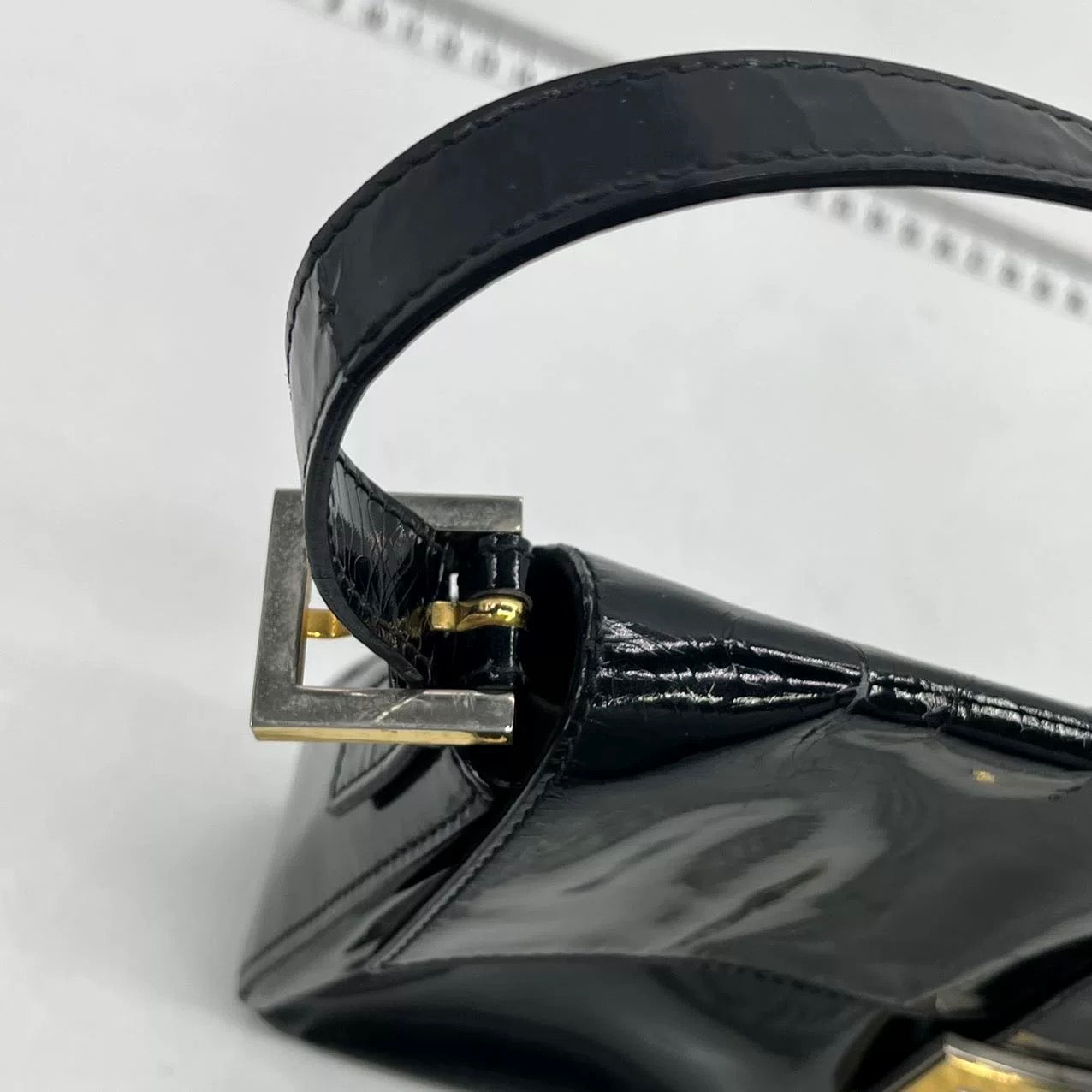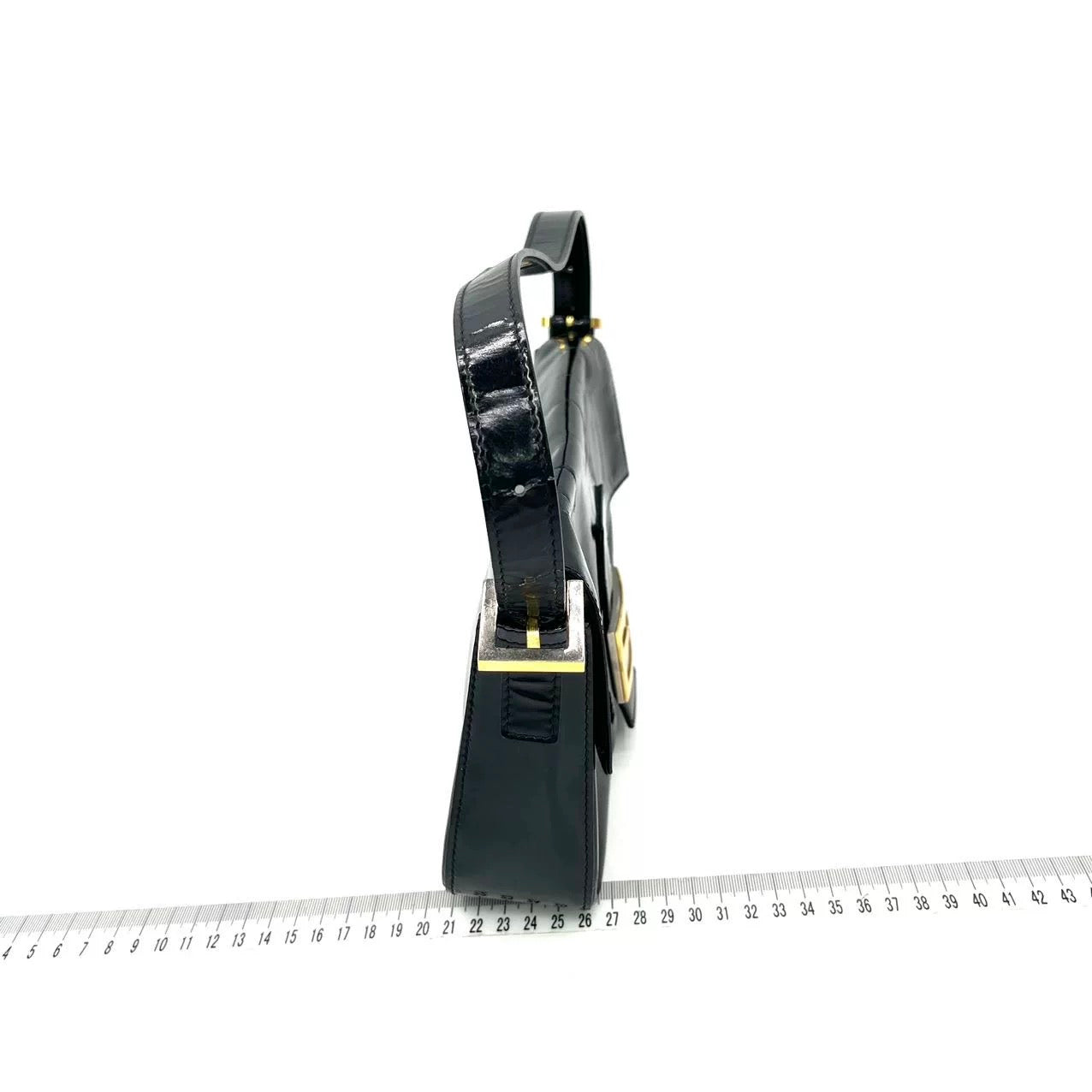 Fendi Baguette Black Patent Leather Gold Hardware Shoulder Bag