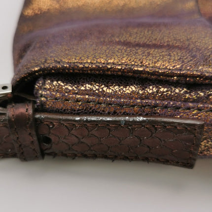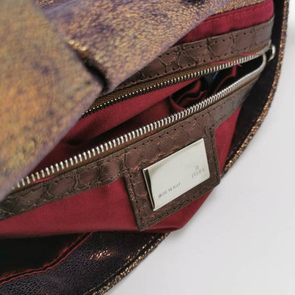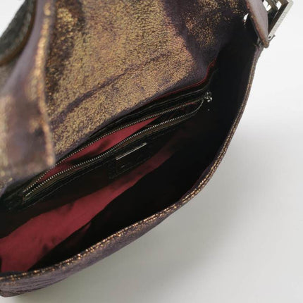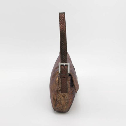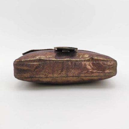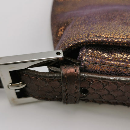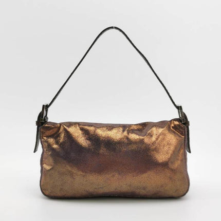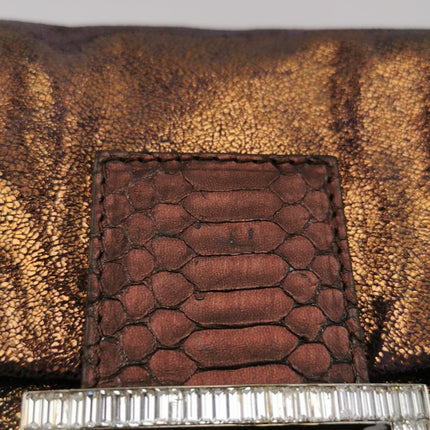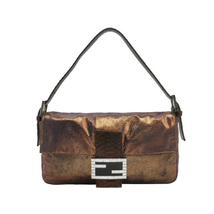Fendi Baguette Copper Lambskin Leather Crystal Buckle Shoulder Bag