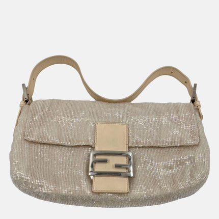Fendi Baguette Glittering Waterfall Beads Cream Shoulder Bag
