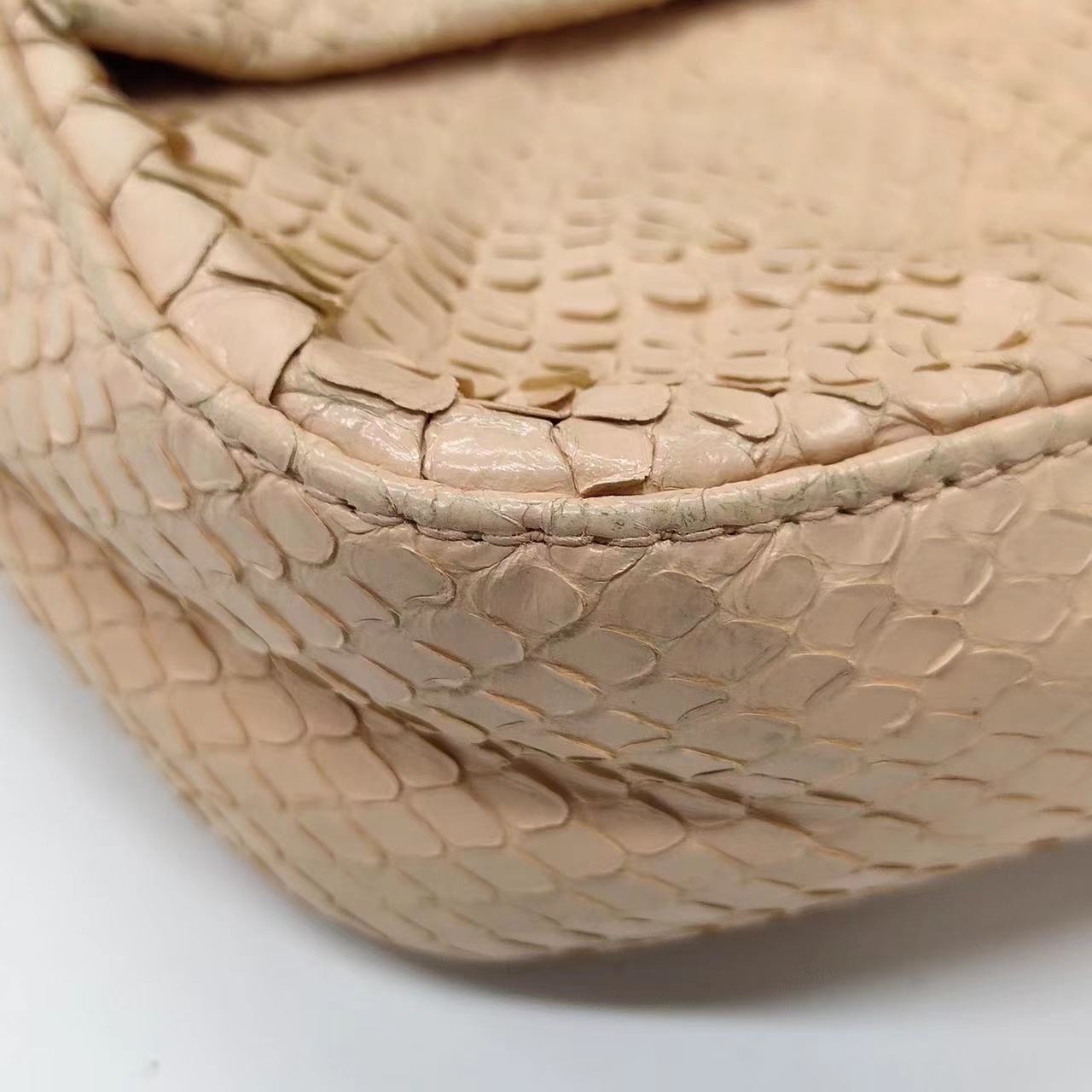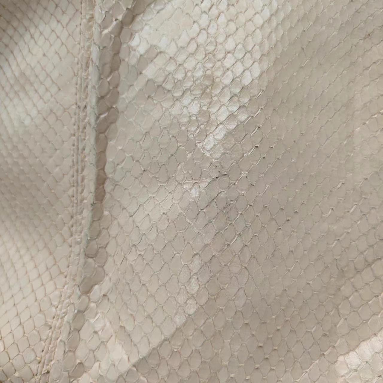 The python skin on the corners are a little dry and flaky which is common for this type of leather.
