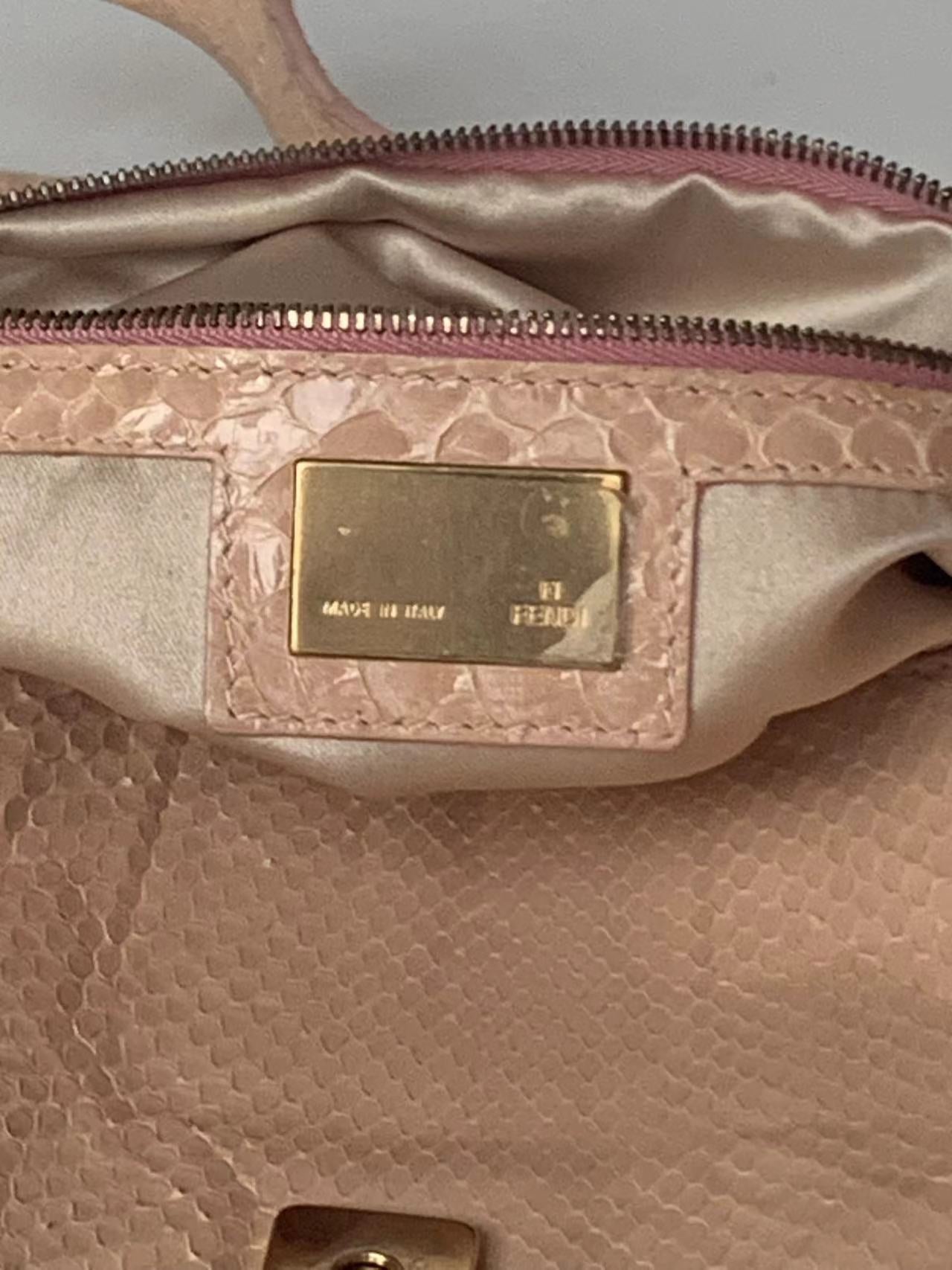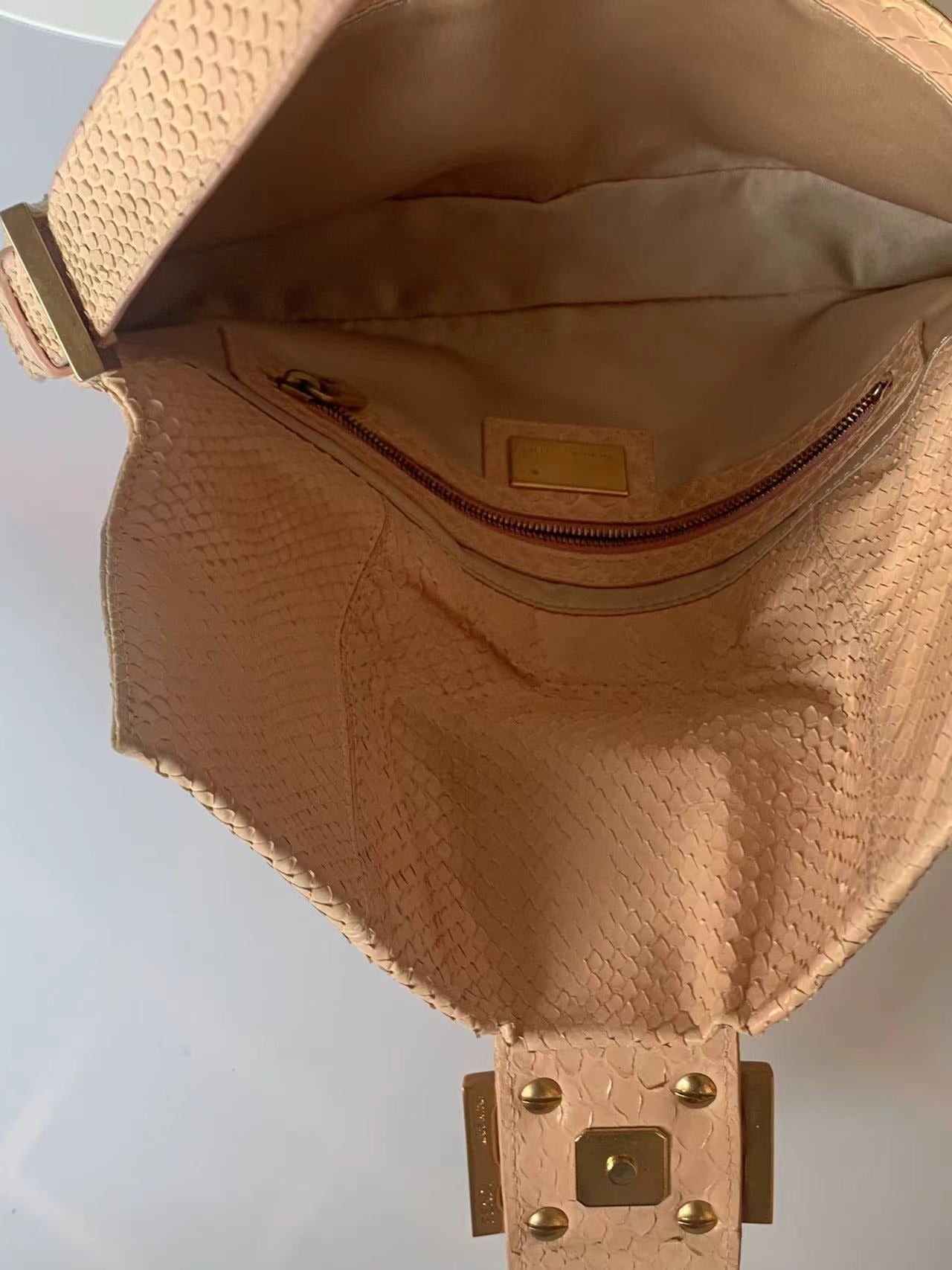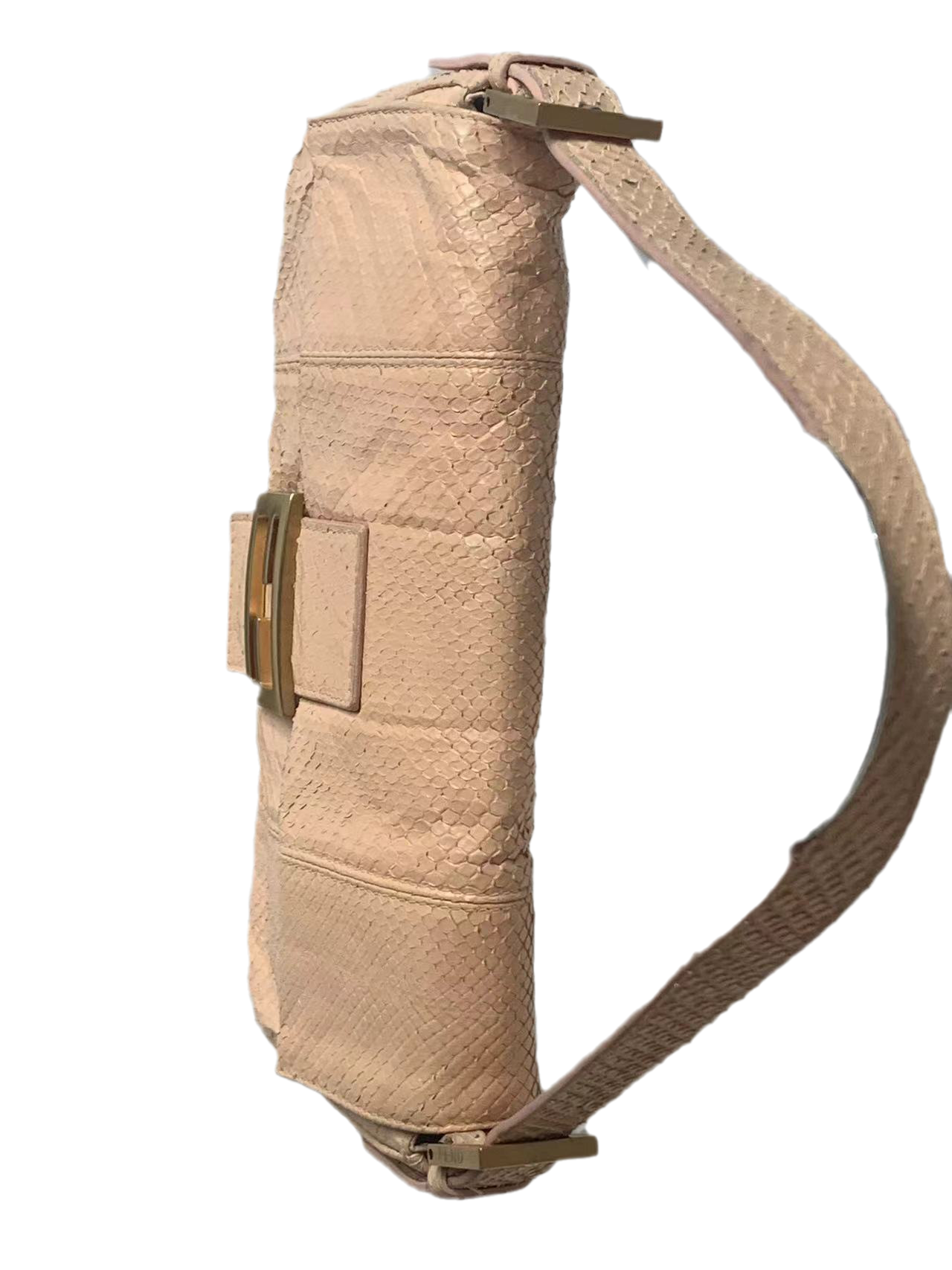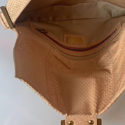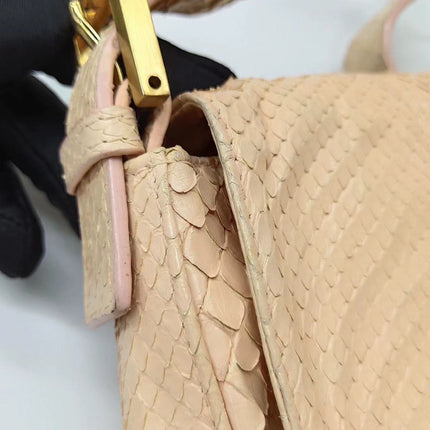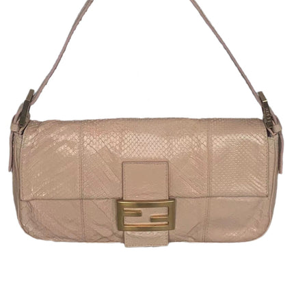 Fendi baguette nude pink python leather shoulder bag
