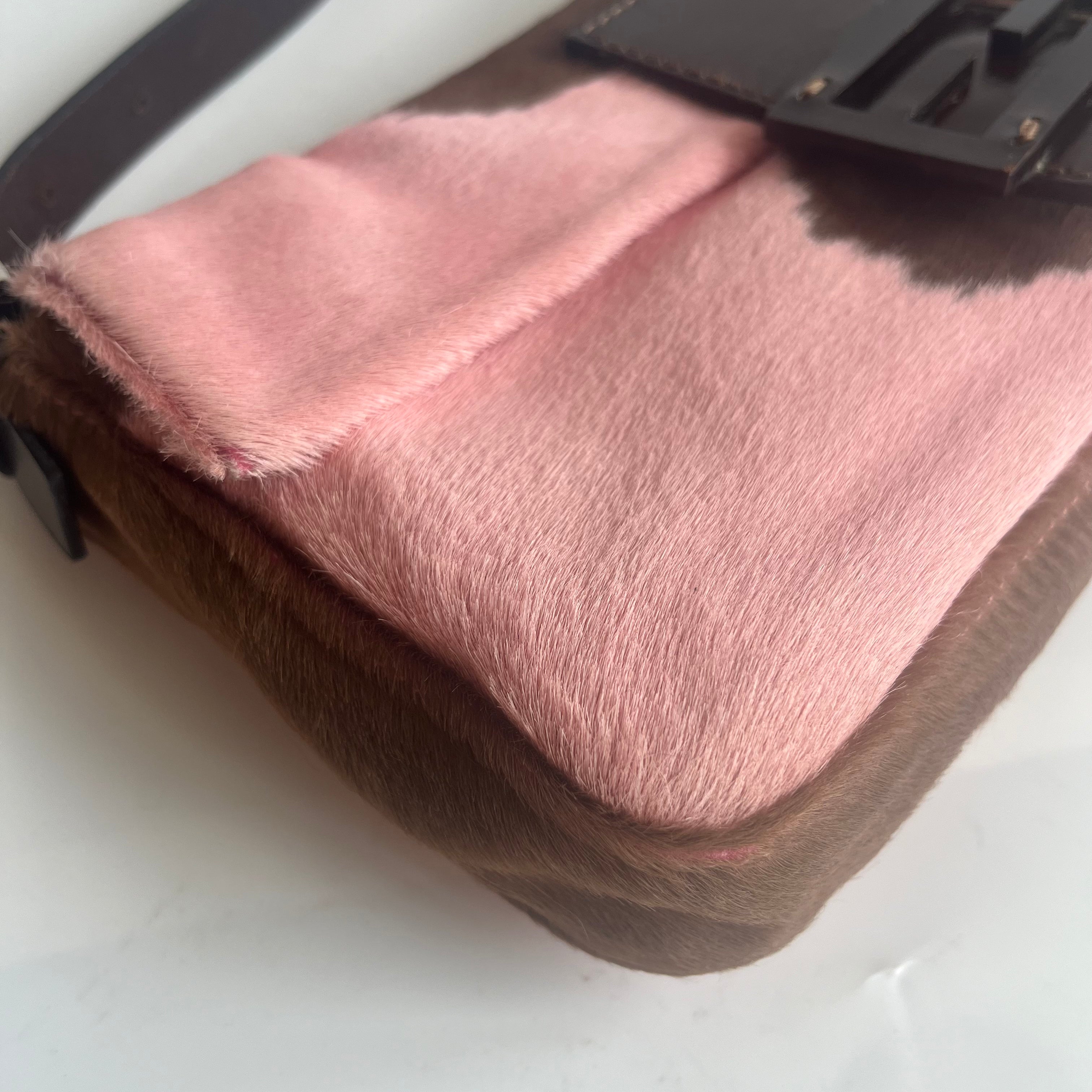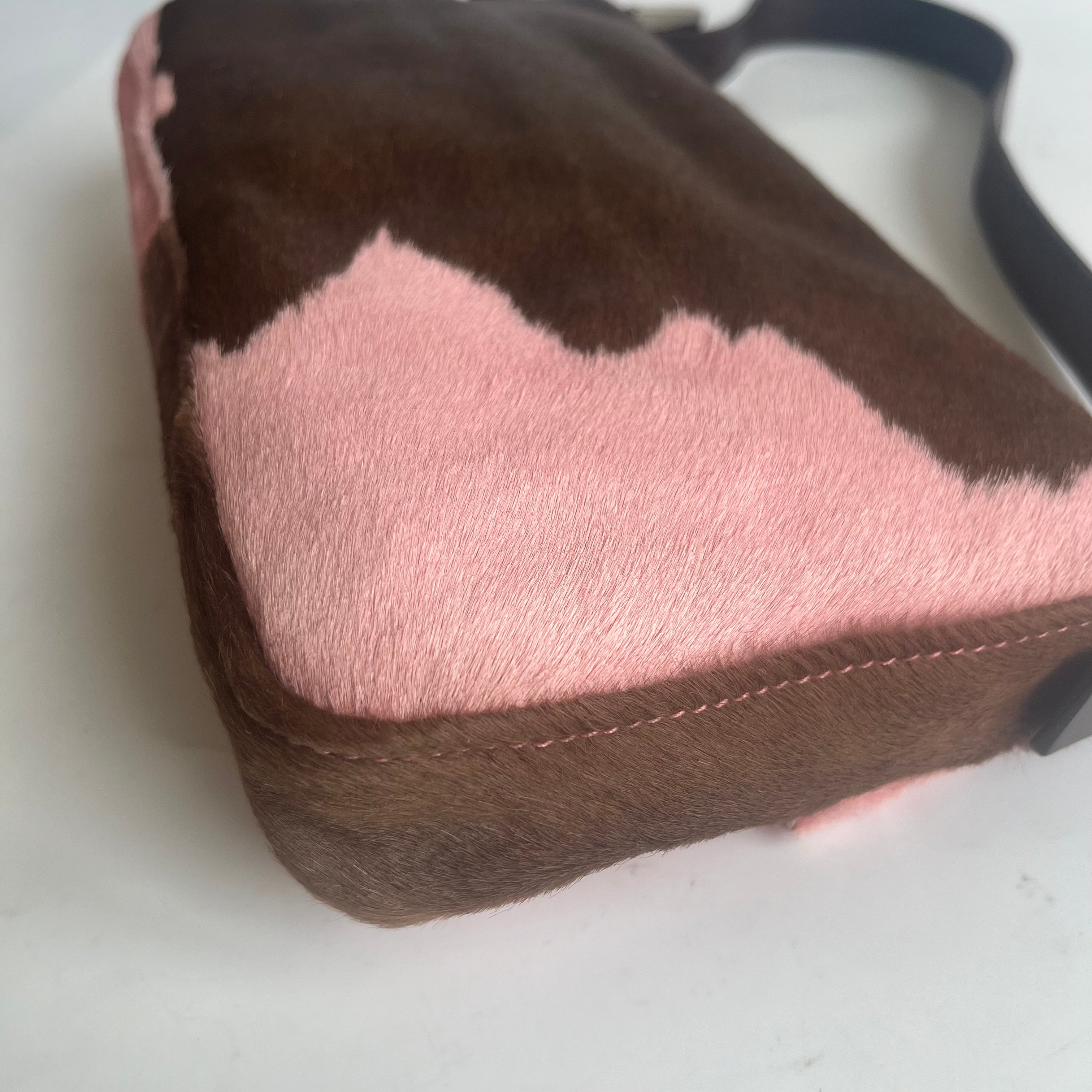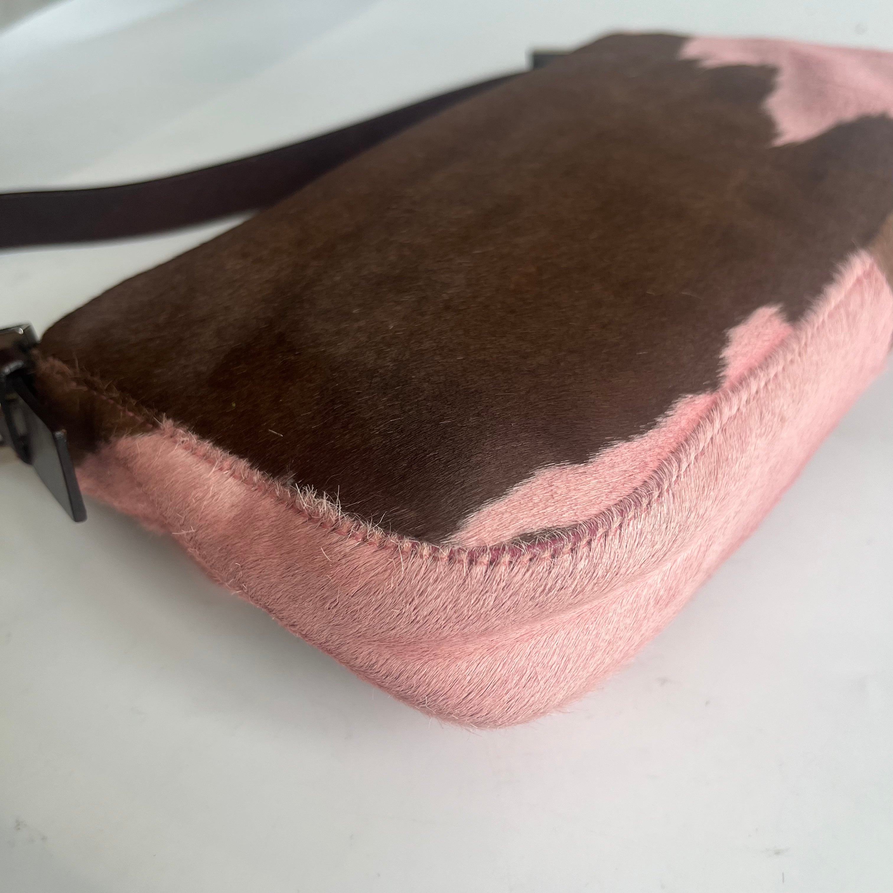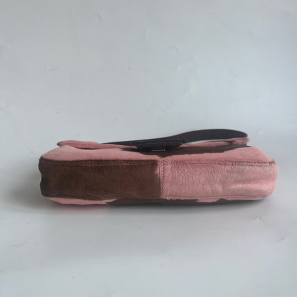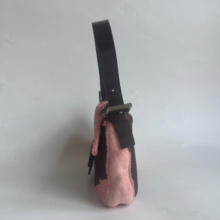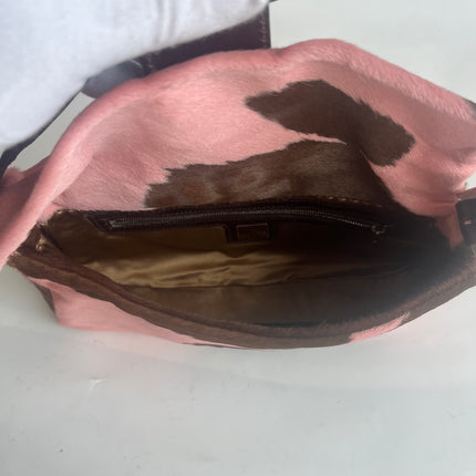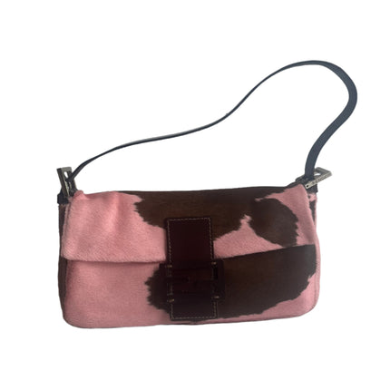 Fendi Baguette Pony-style Calfskin Leather Pink Cow Print Shoulder Bag