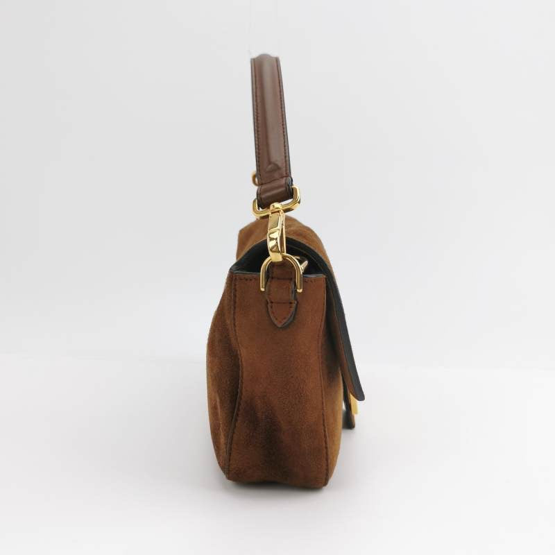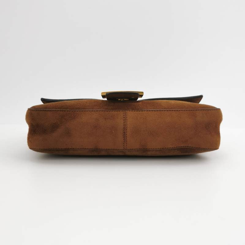 Fendi Baguette Selleria Suede Leather Crossbody Bag Medium Caramel Tan