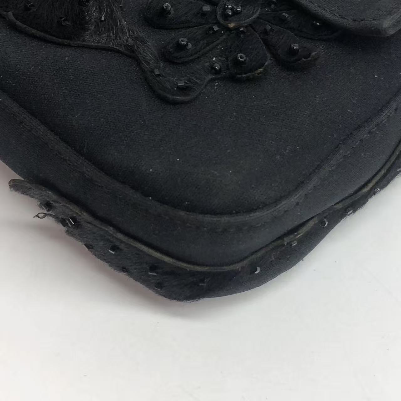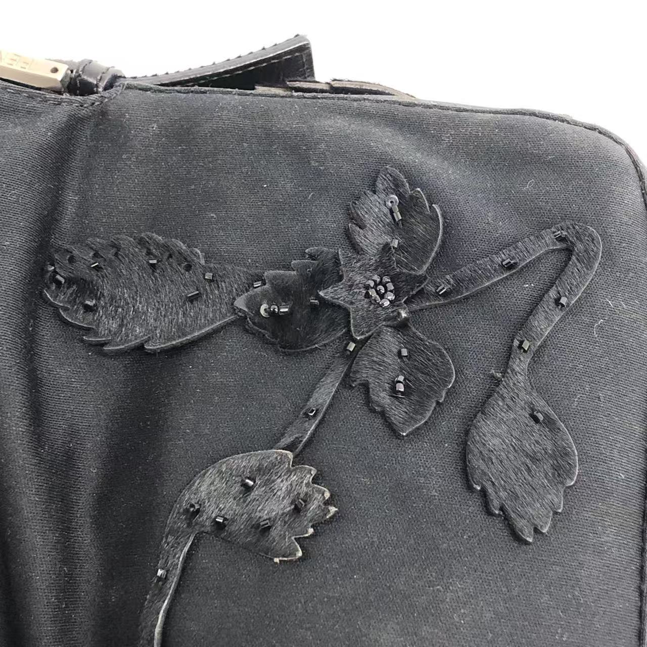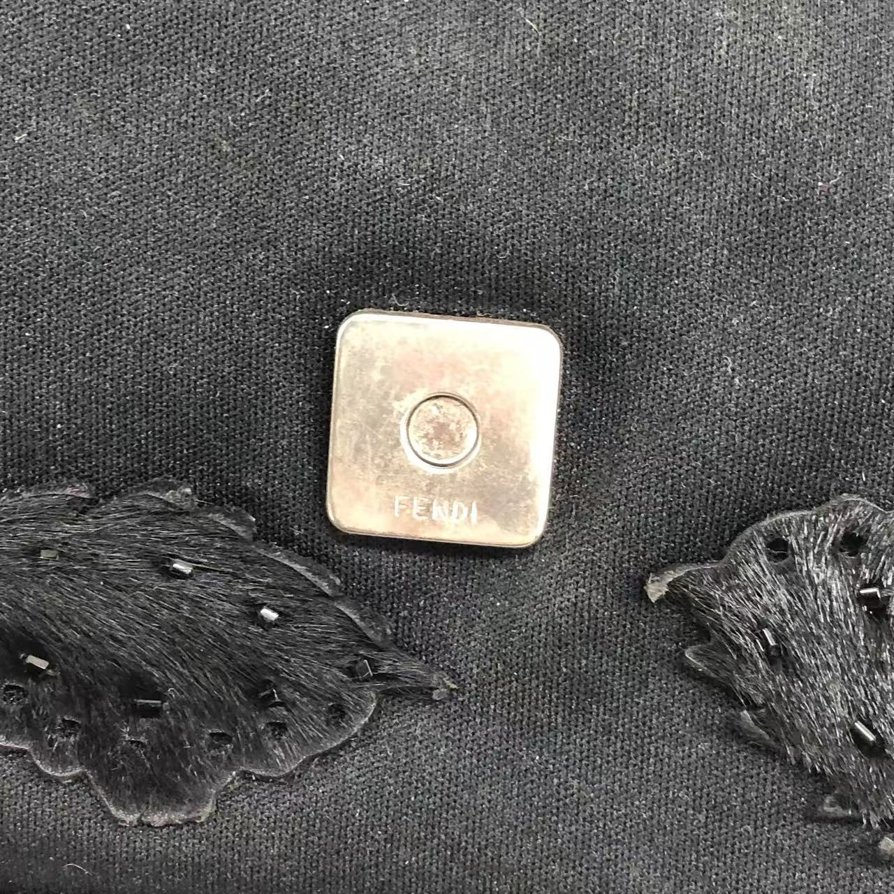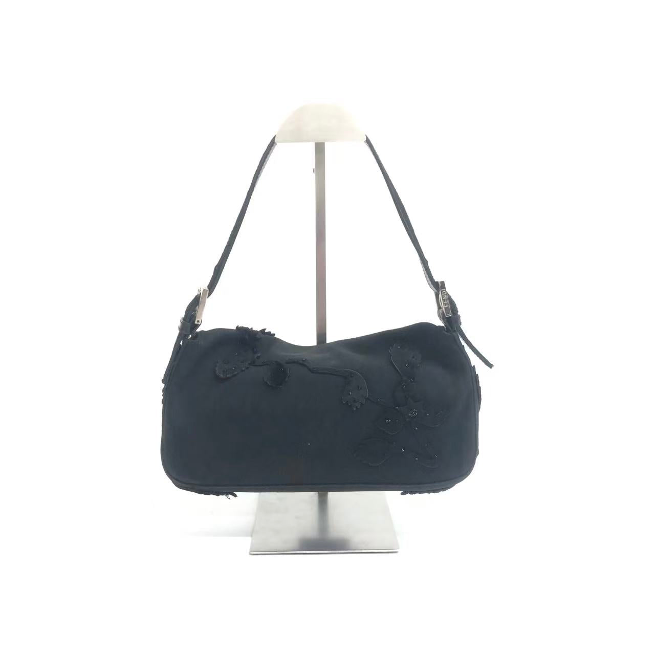 FENDI Baguette Vintage Black Cloth With Flower Embroidery Silver Hardware