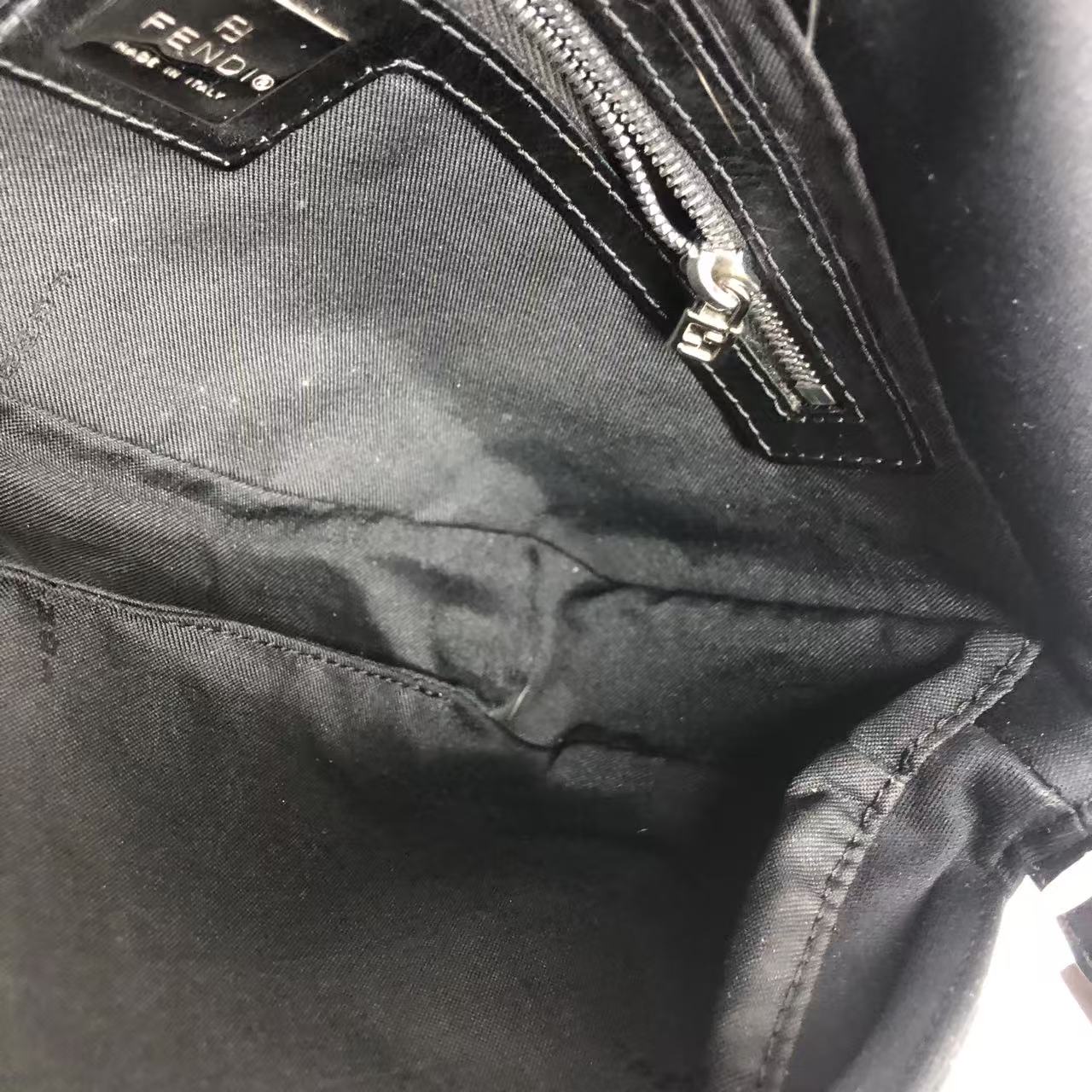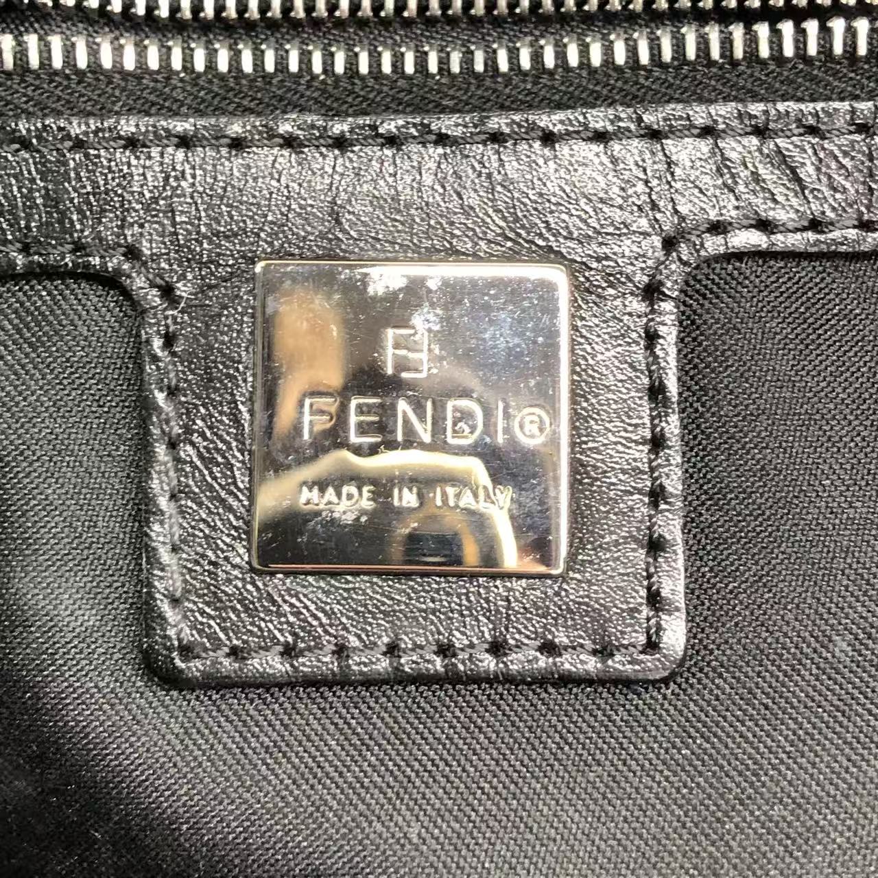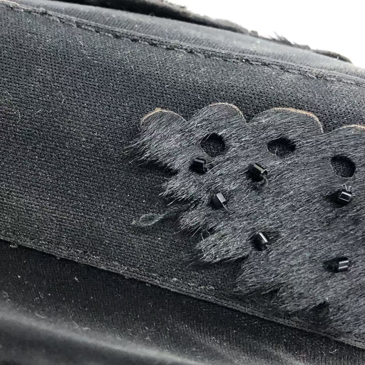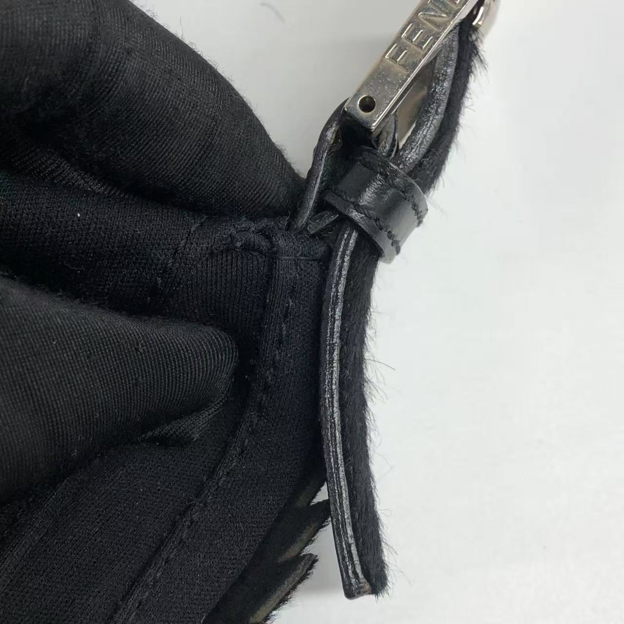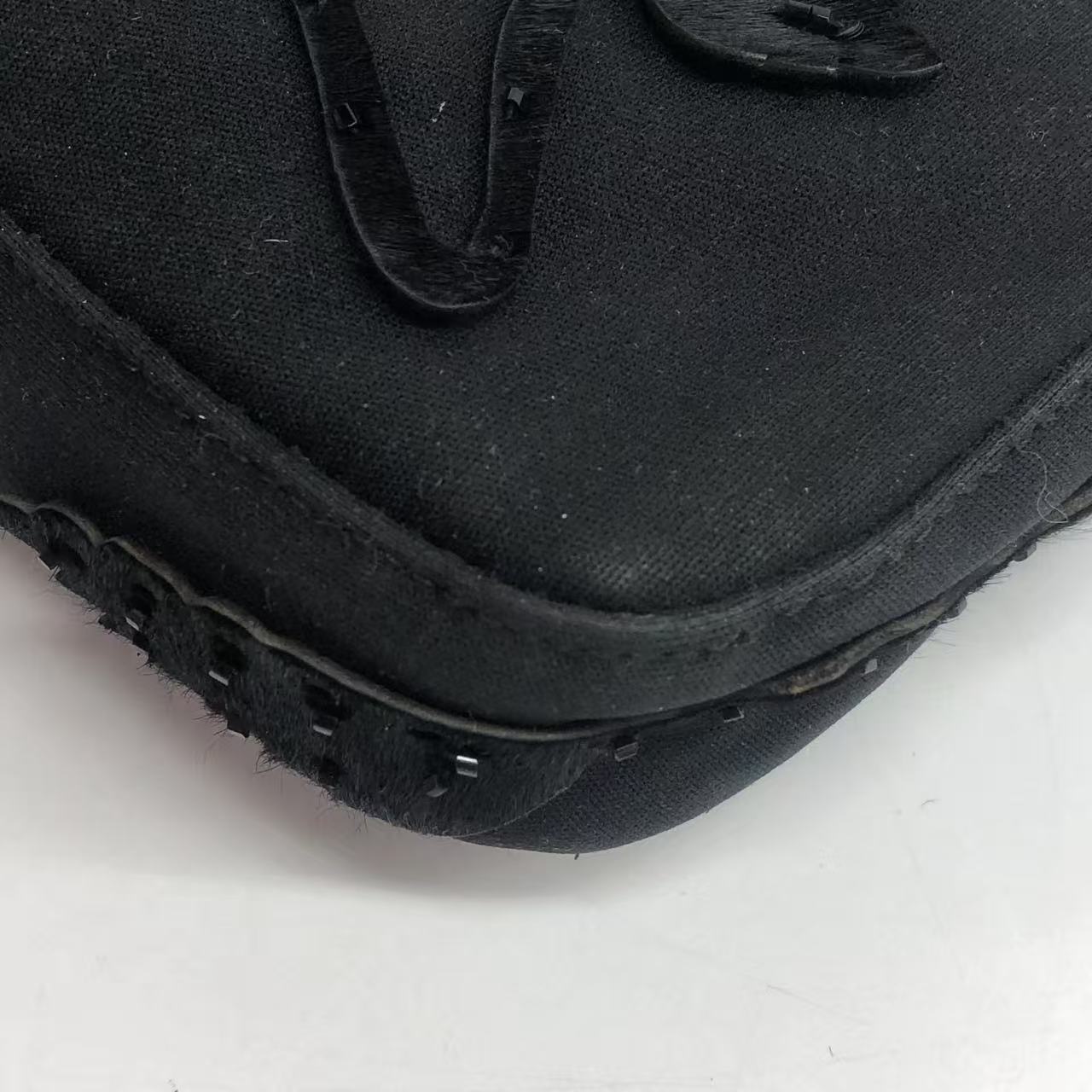 FENDI Baguette Vintage Black Cloth With Flower Embroidery Silver Hardware