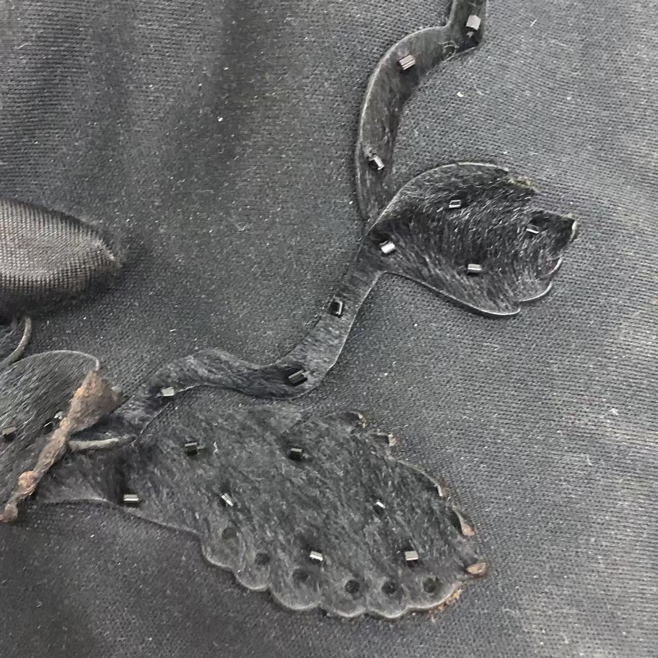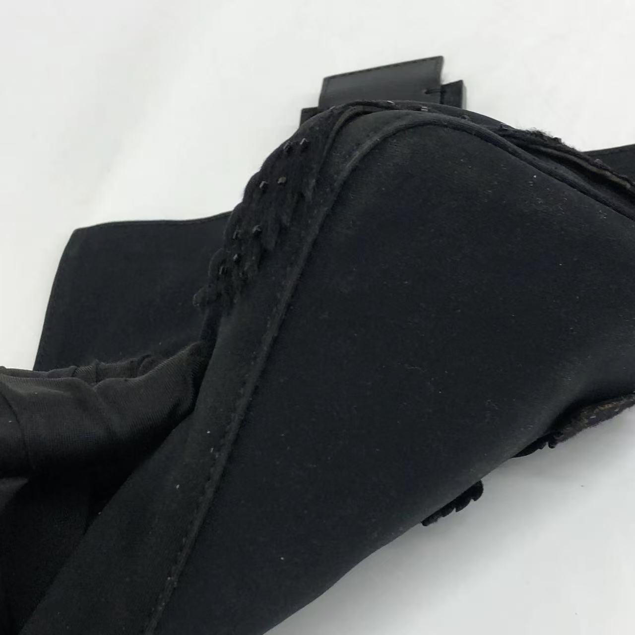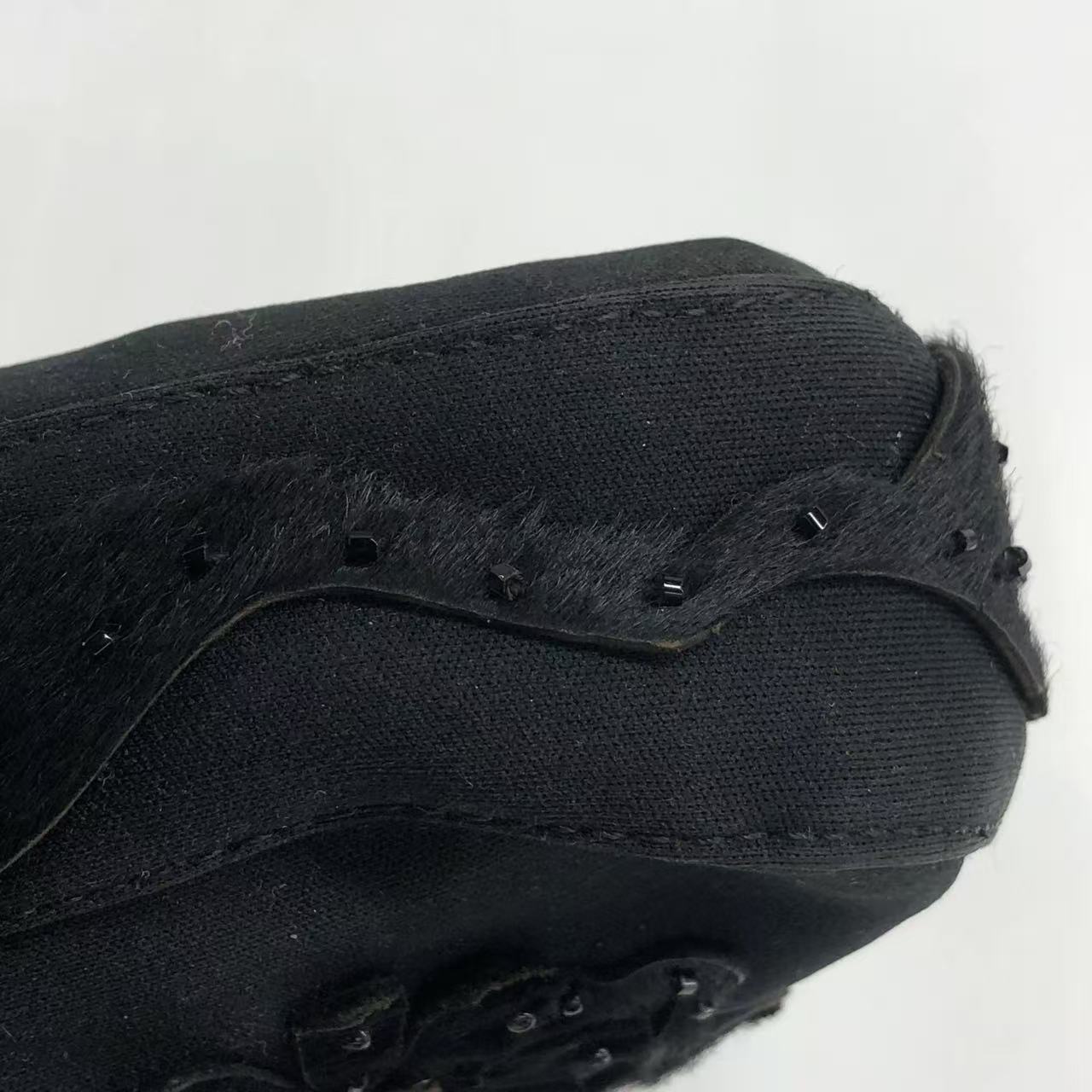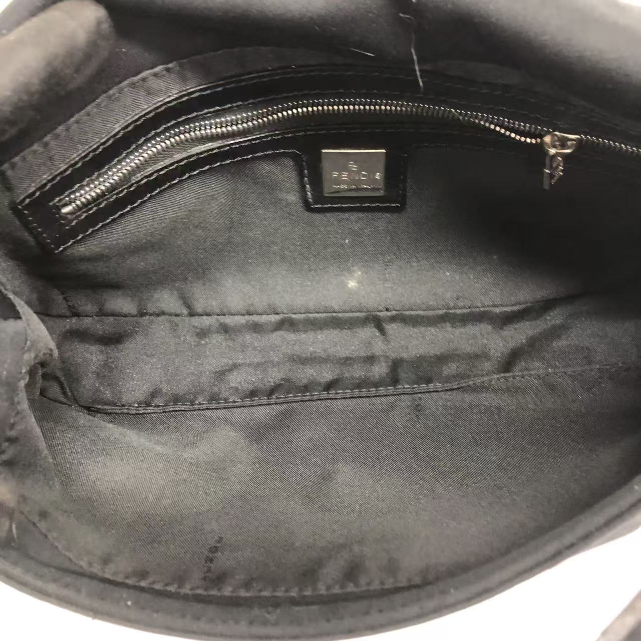 FENDI Baguette Vintage Black Cloth With Flower Embroidery Silver Hardware
