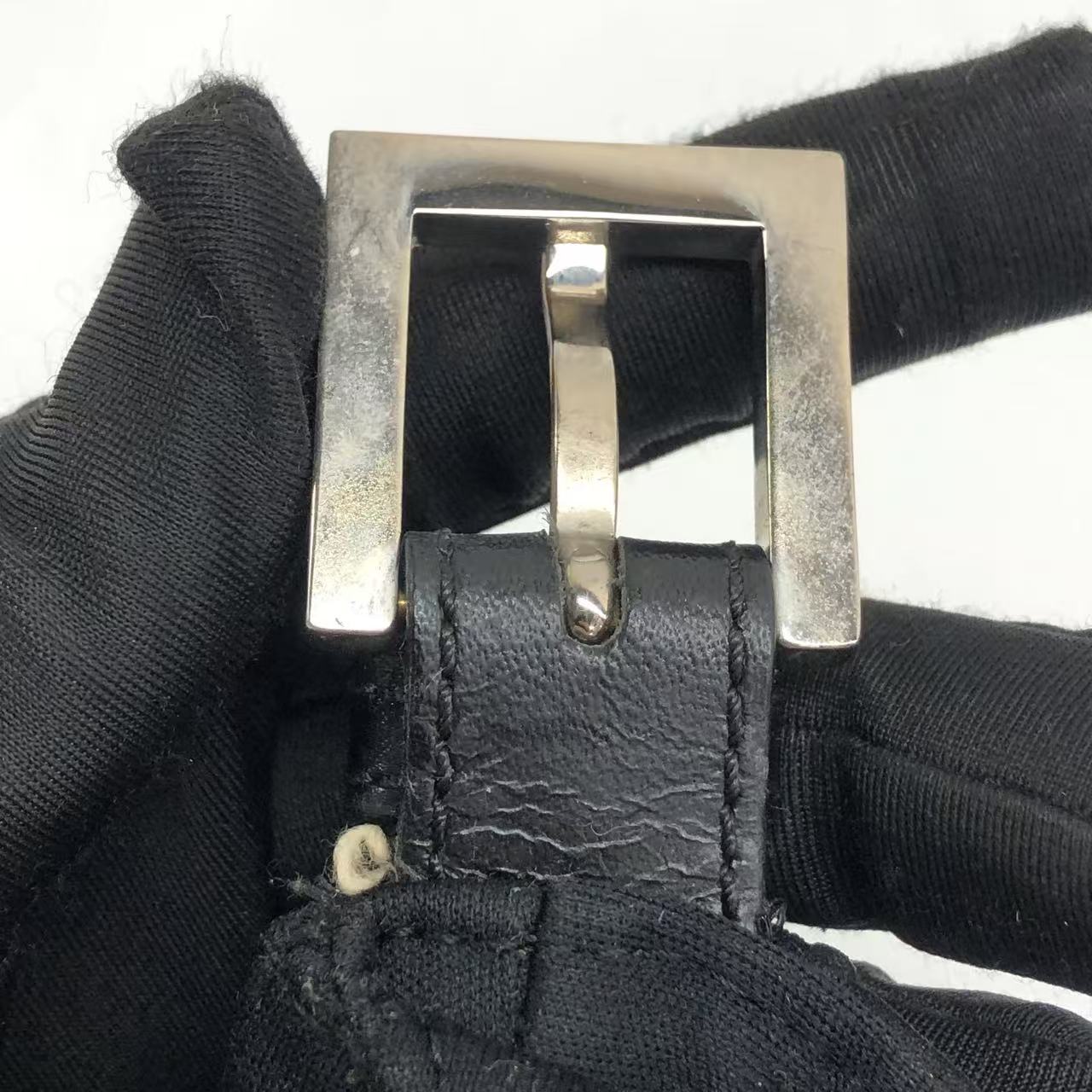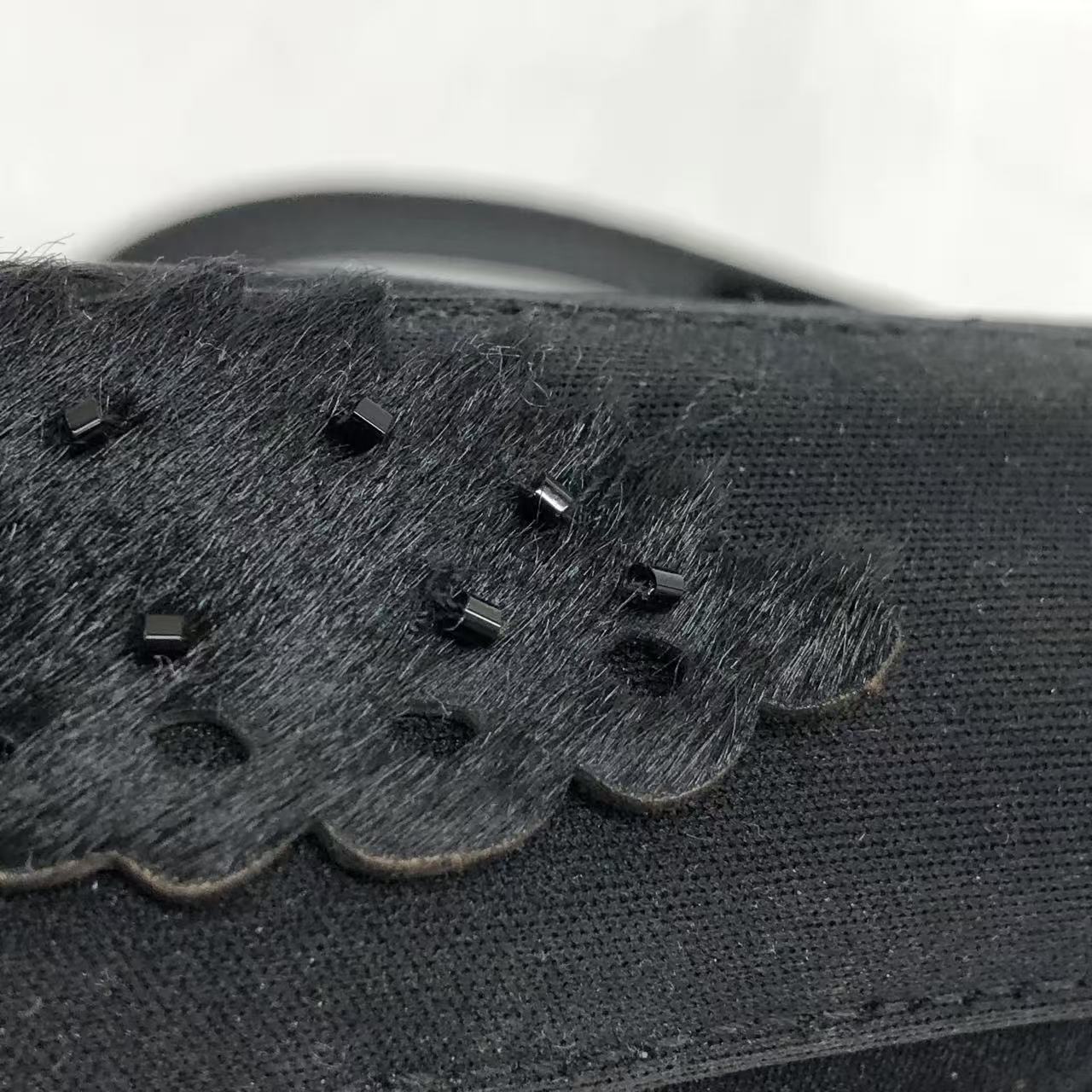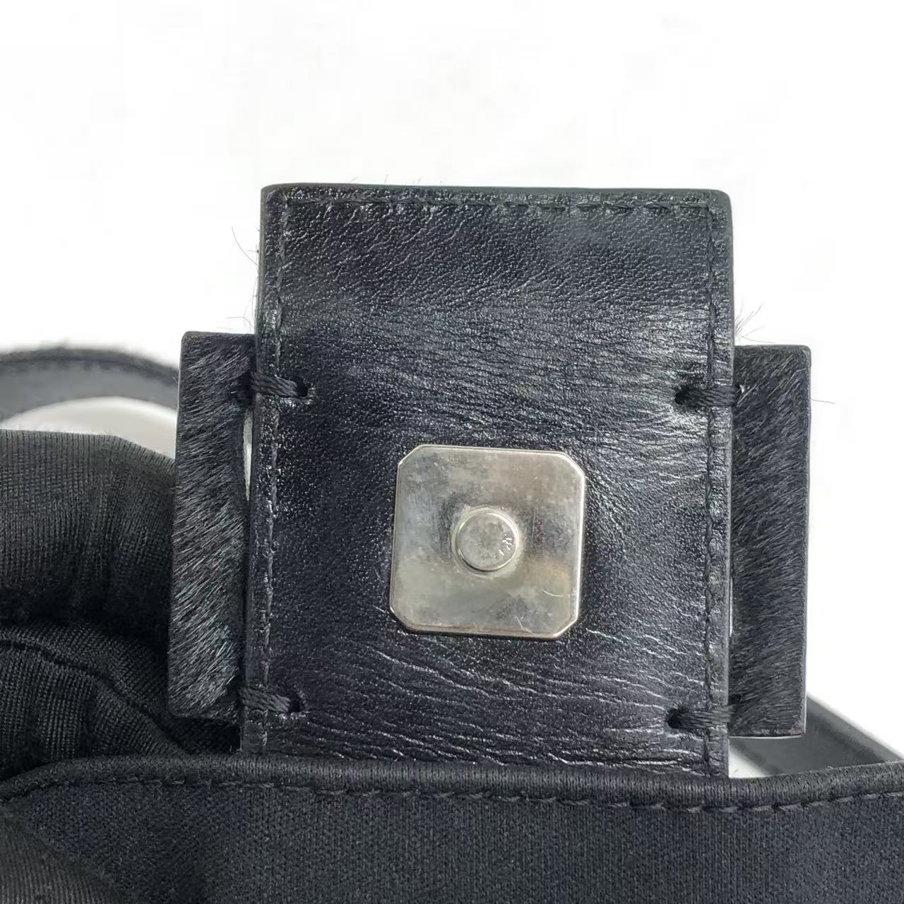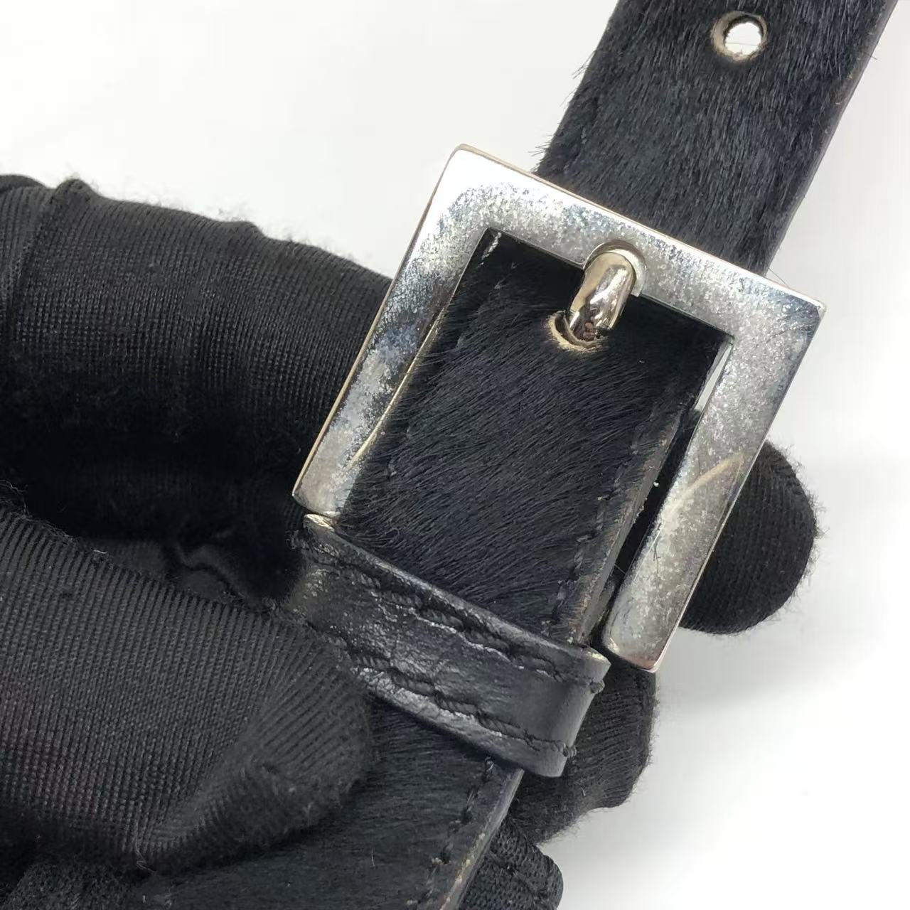 FENDI Baguette Vintage Black Cloth With Flower Embroidery Silver Hardware