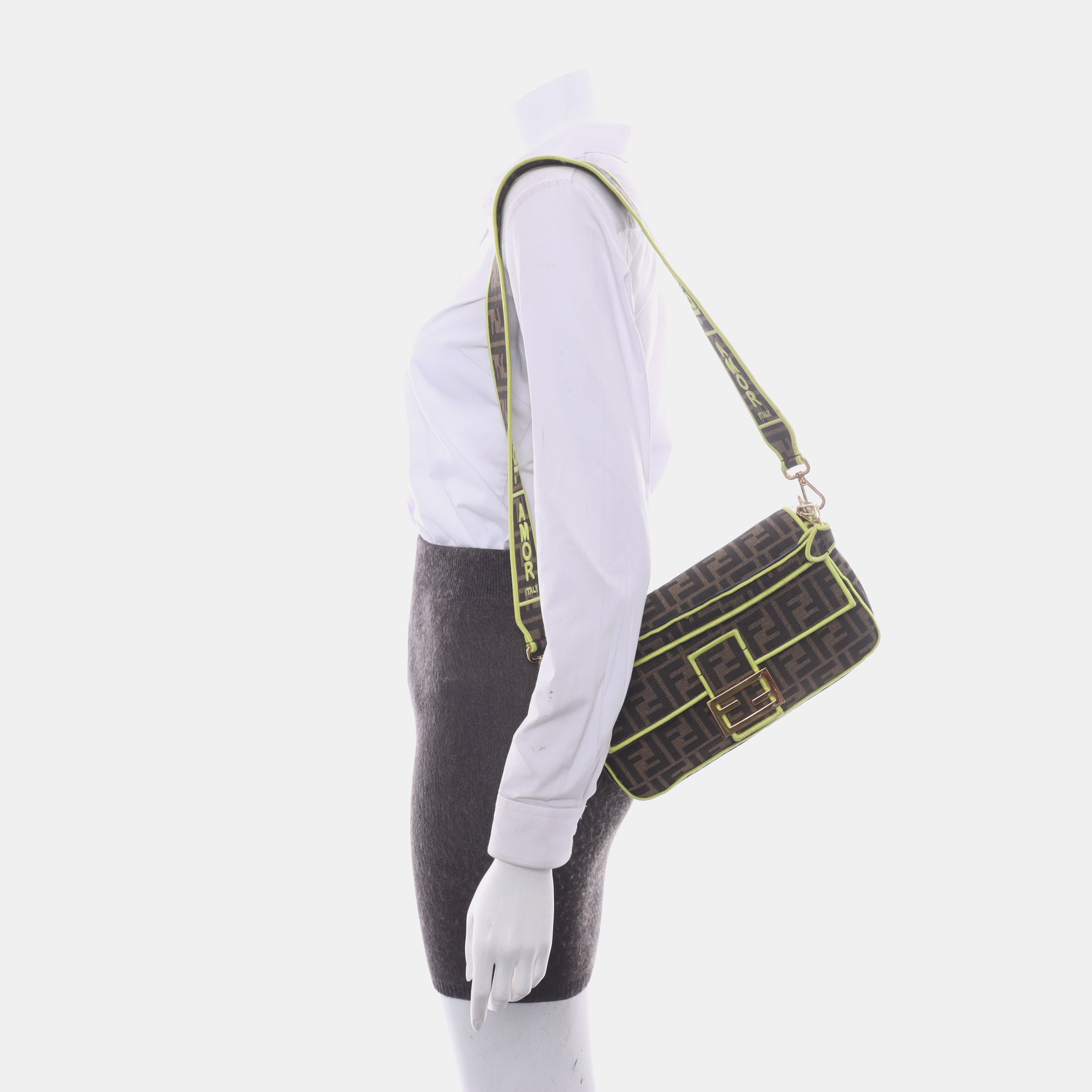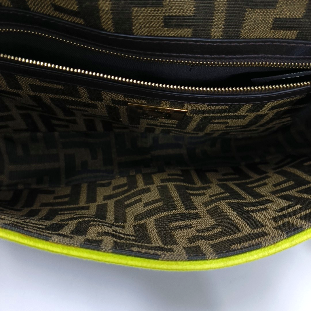 FENDI Baguette Zucca Monogram Canvas with Lime Neon Trimming Medium