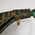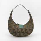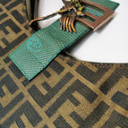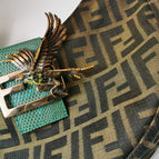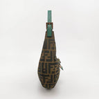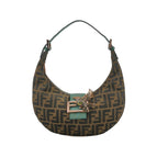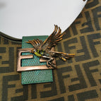 Fendi Croissant Shoulder Bag Medium Zucca Monogram Canvas Lizard-skin Strap Bird Brooch