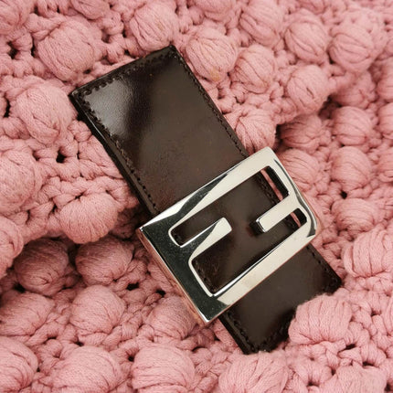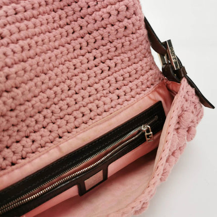Fendi Mamma Baguette Bag Pink Crochet Shoulder Bag