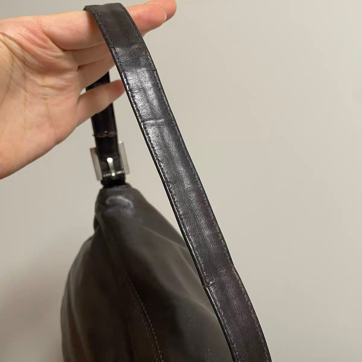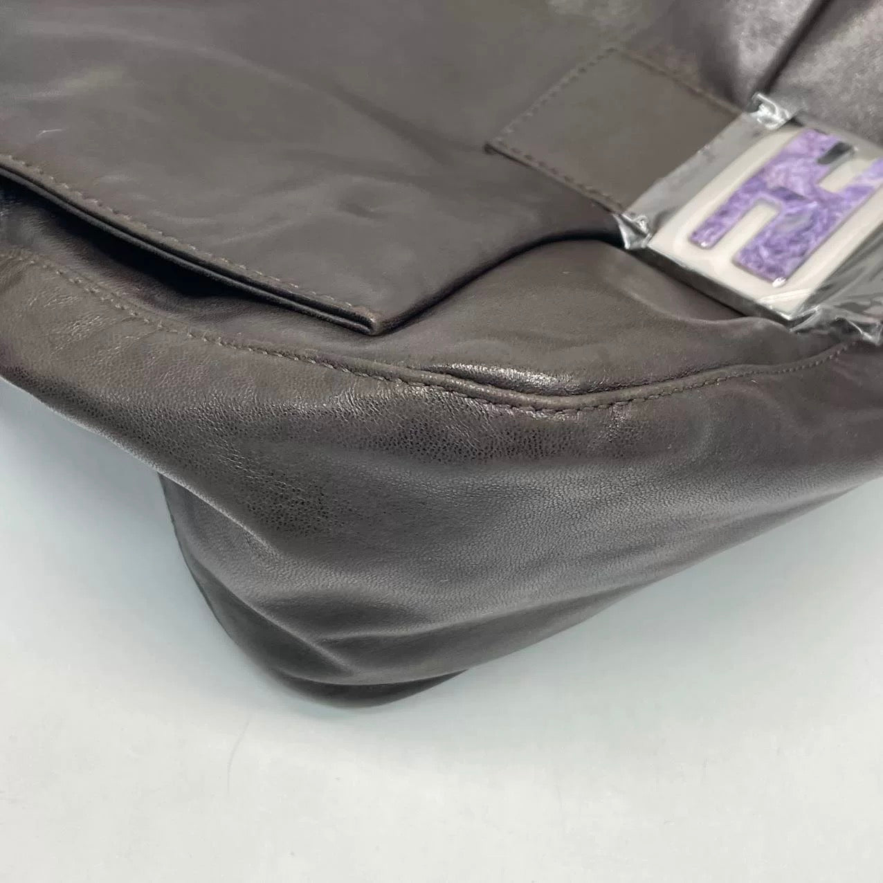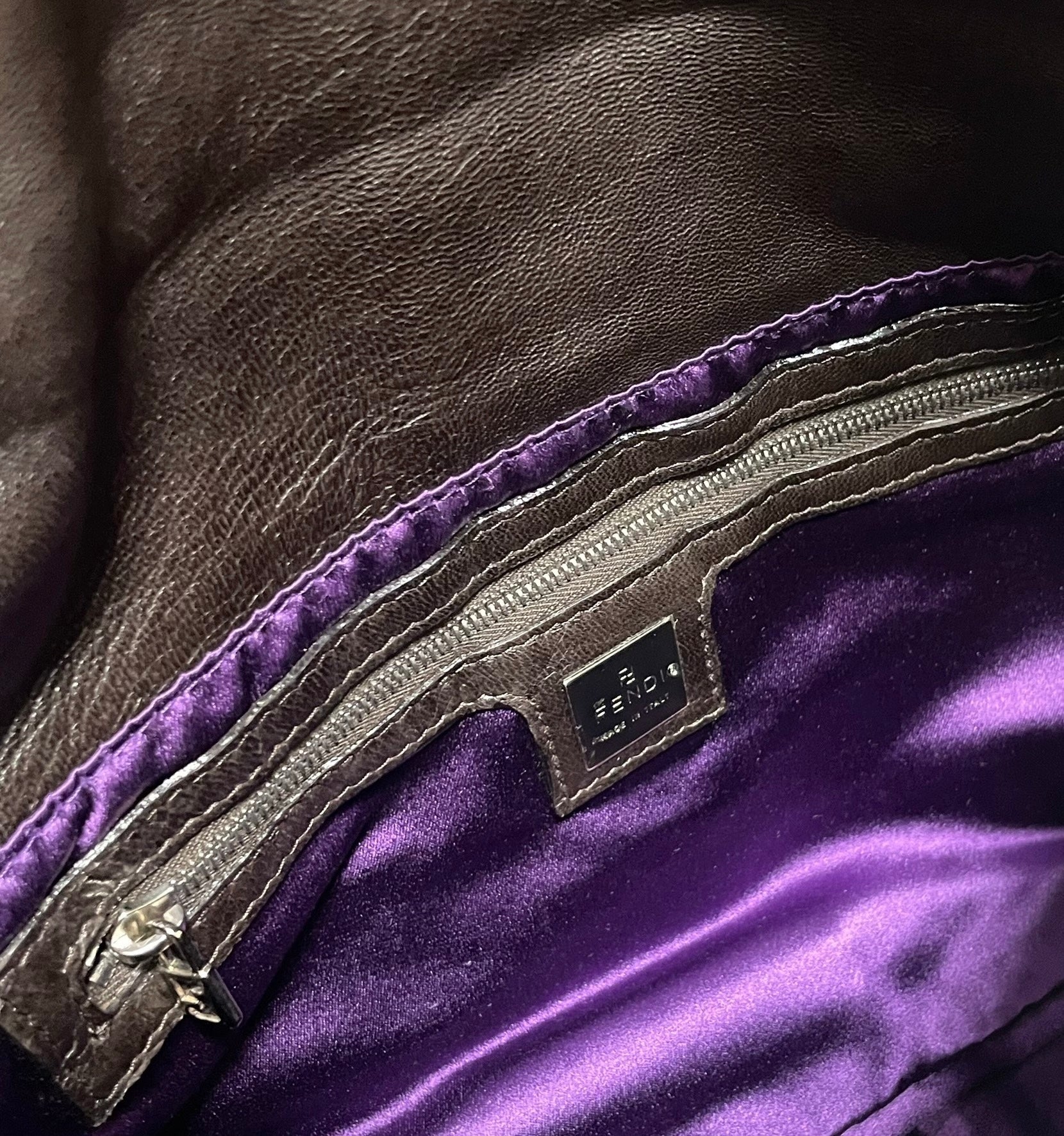 Fendi Mamma Baguette Chocolate Brown Lambskin Leather Silver Hardware