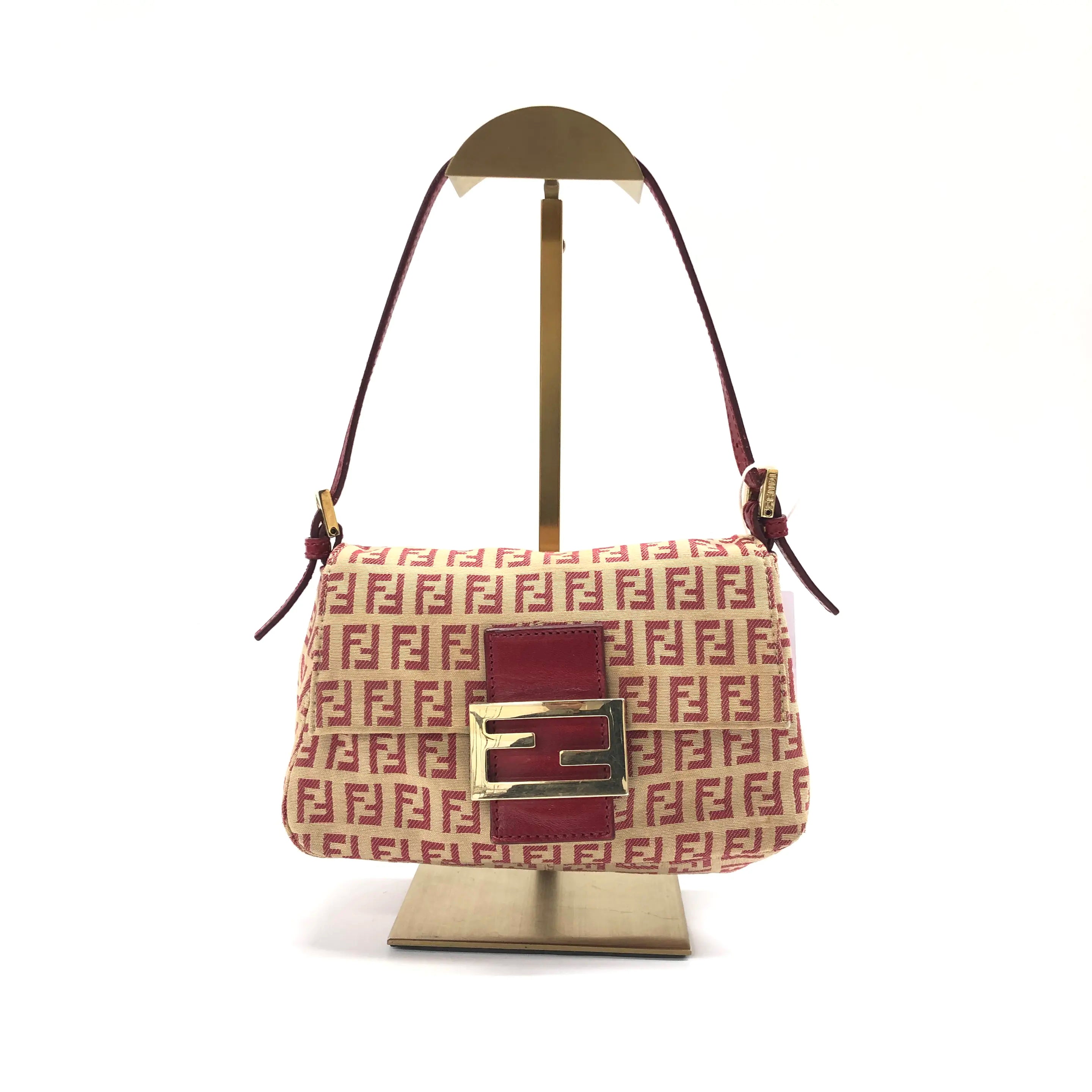 Fendi Mini Mamma Baguette Red Zucchino Print Shoulder Bag