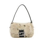 Fendi Mini Mamma Baguette White Rabbit Fur Shoulder Bag