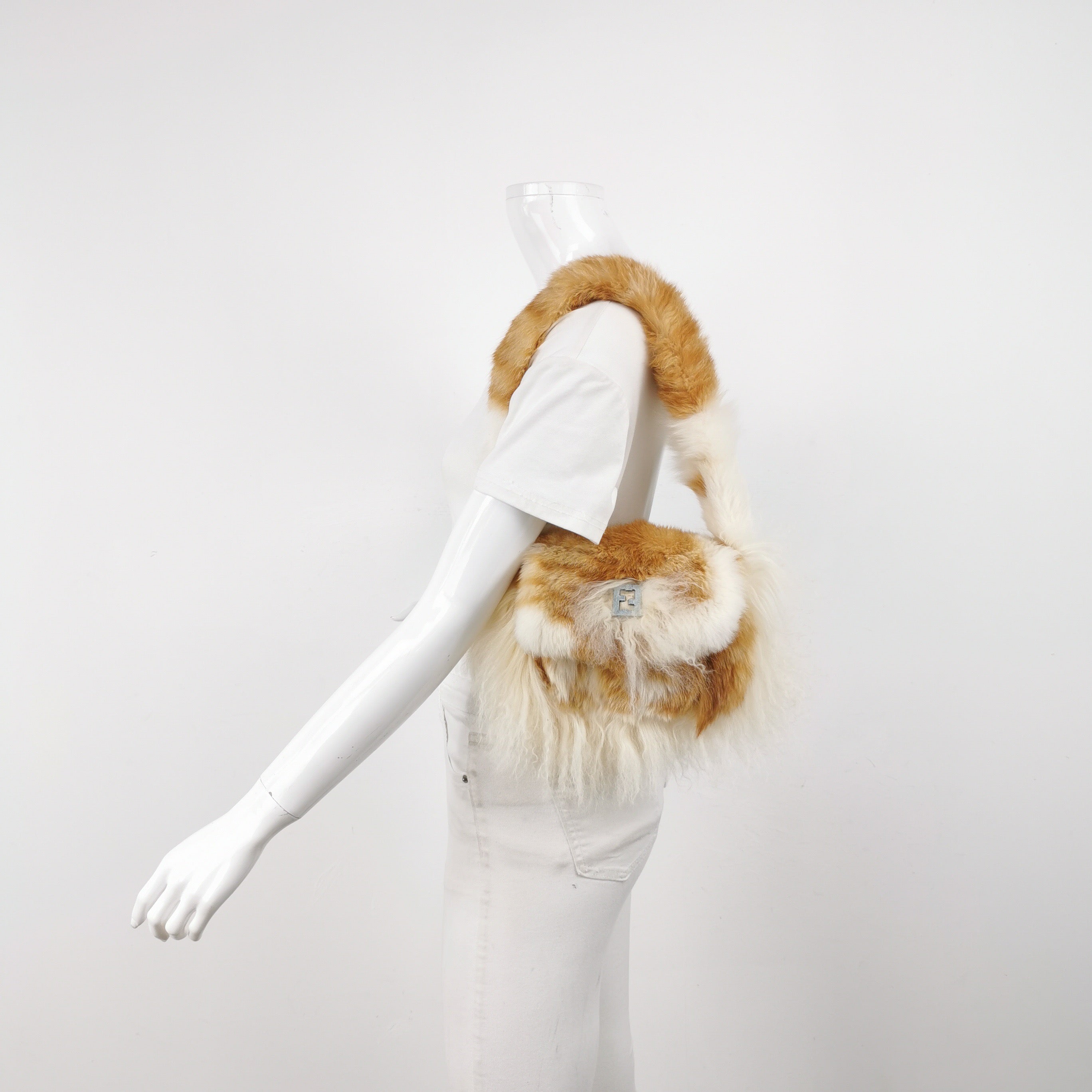 Fendi Multicolor Brown Fur FF Logo Flap Shoulder Bag