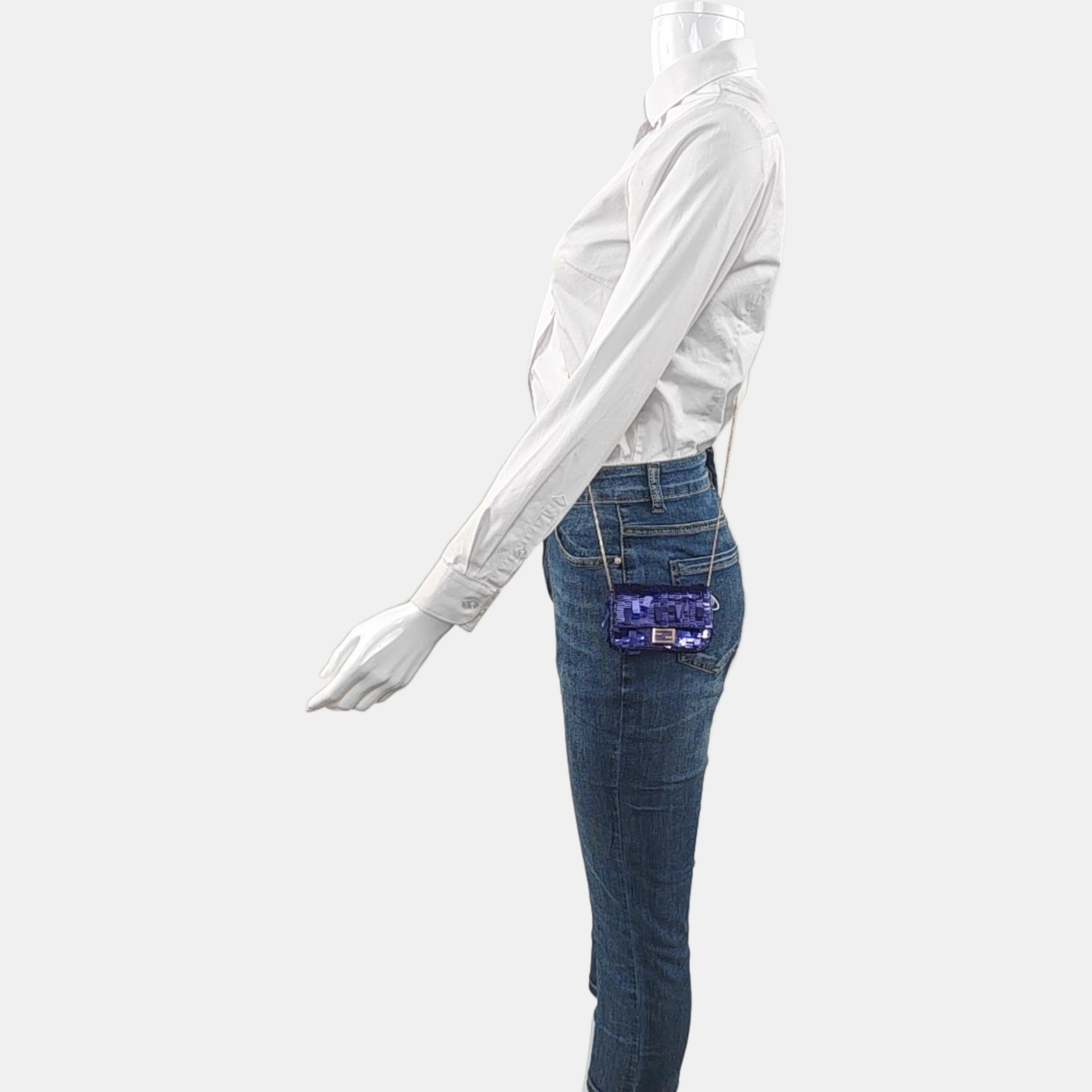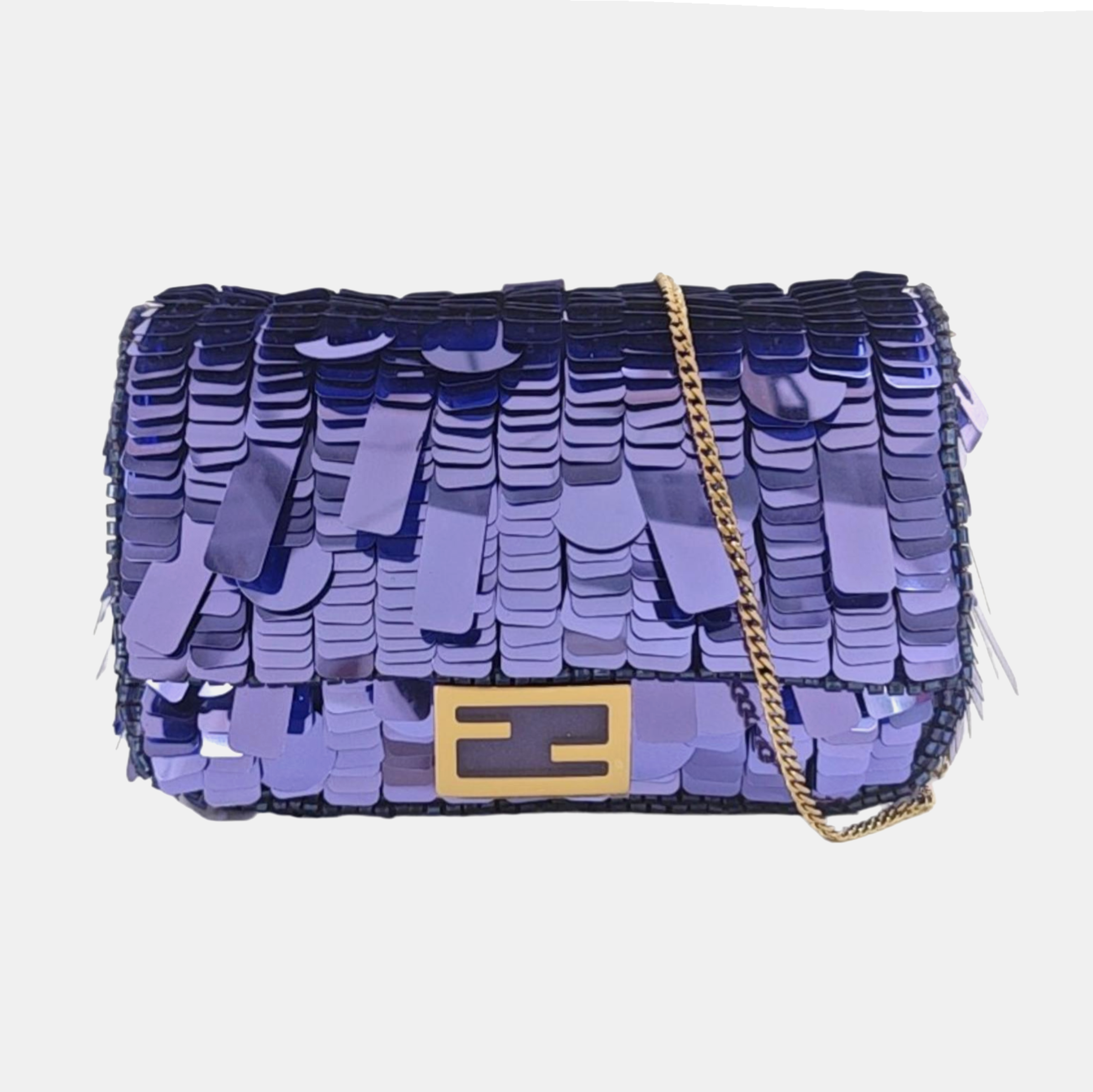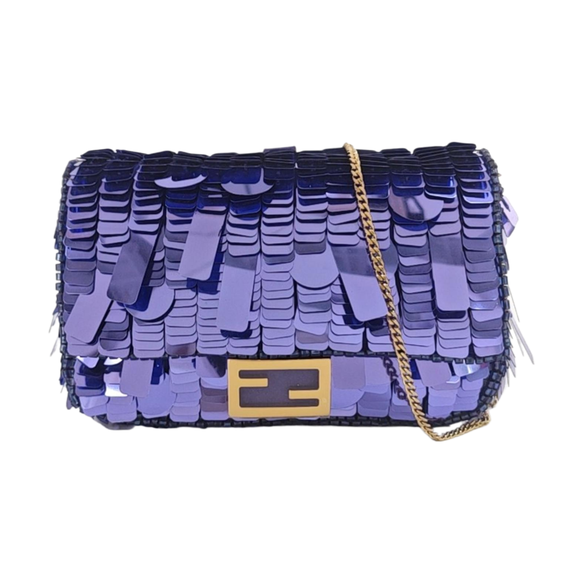 Fendi Nano Baguette Charm Purple Sequins with Chain