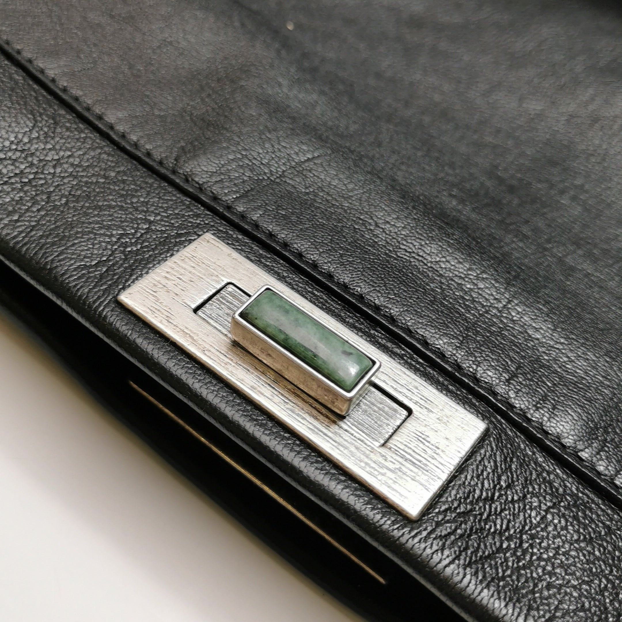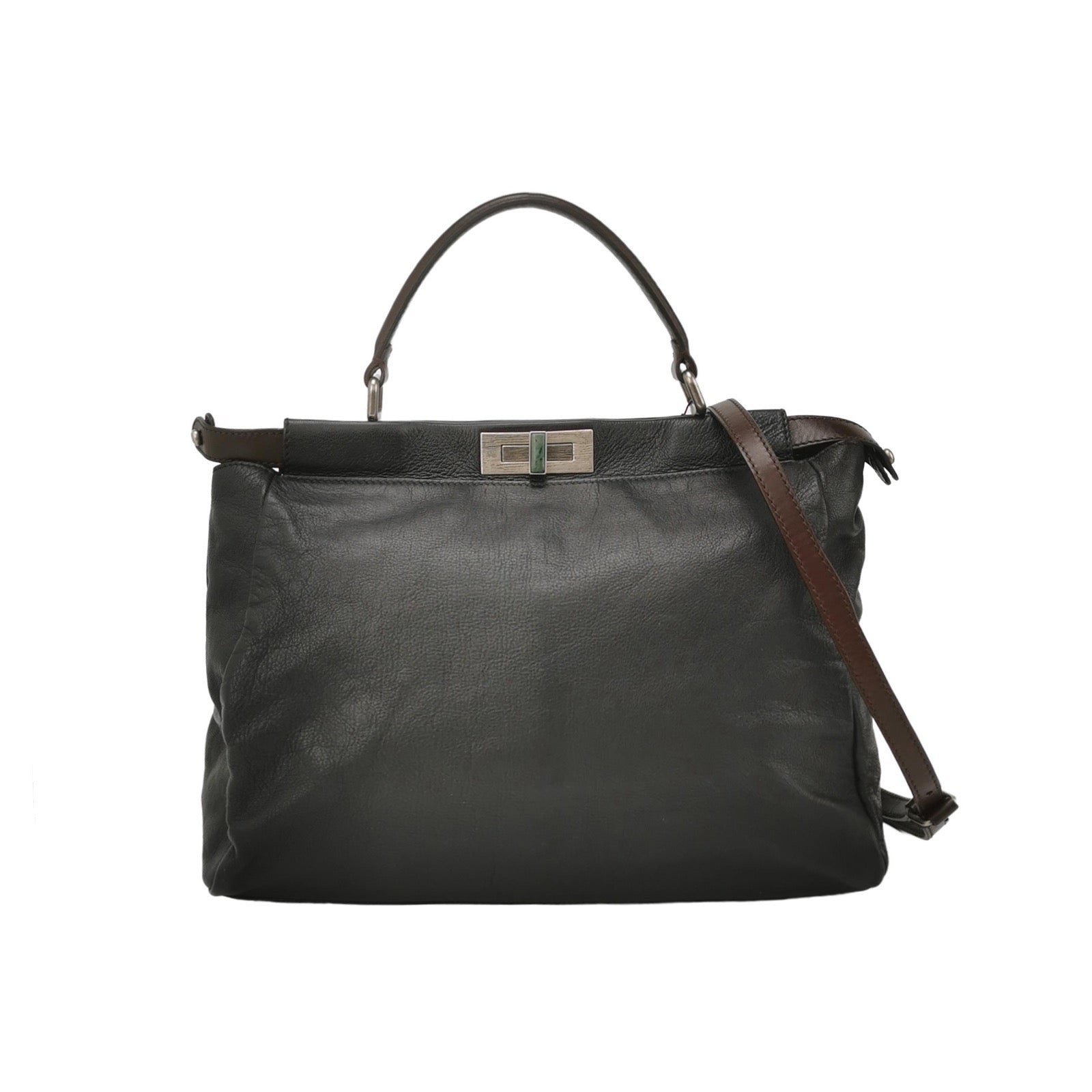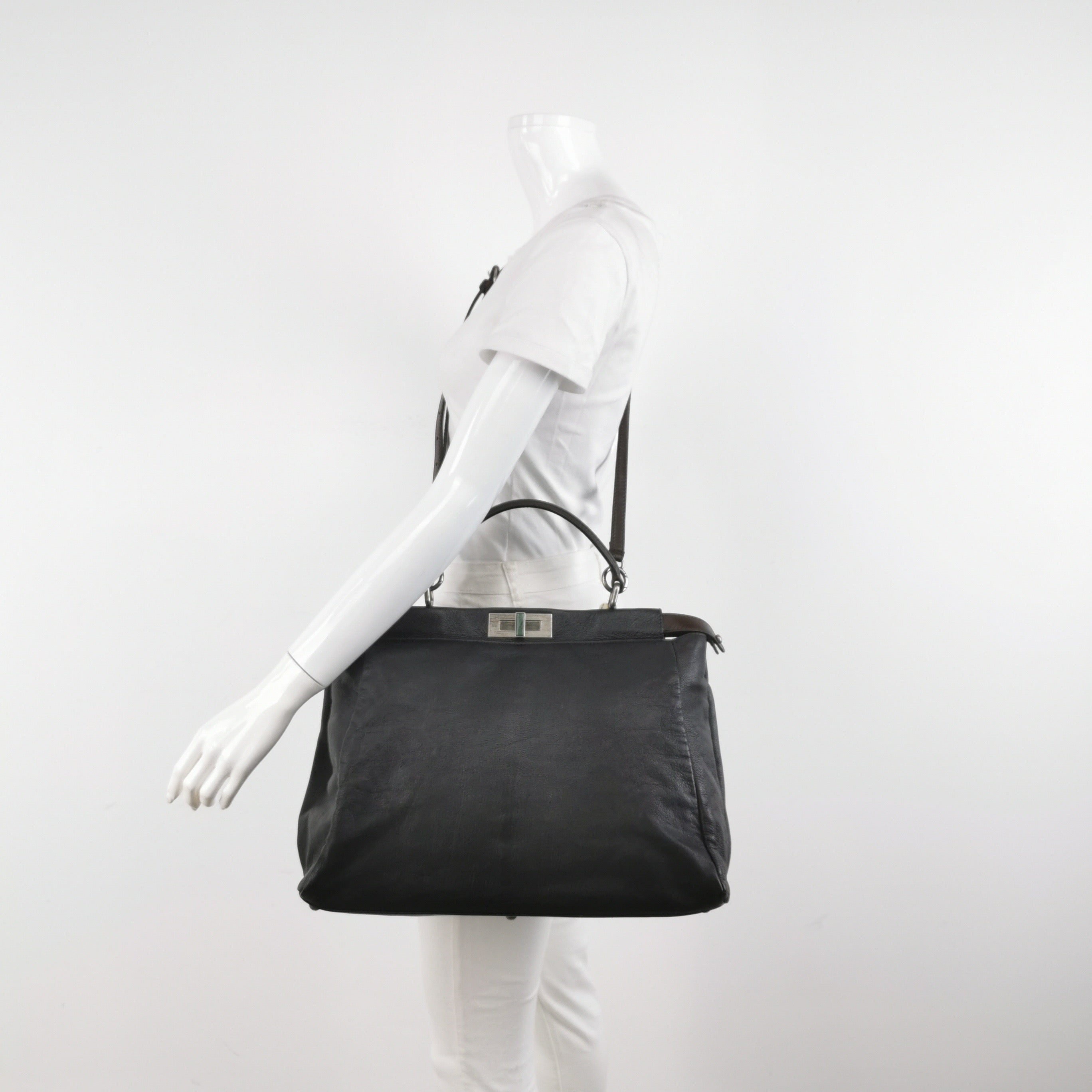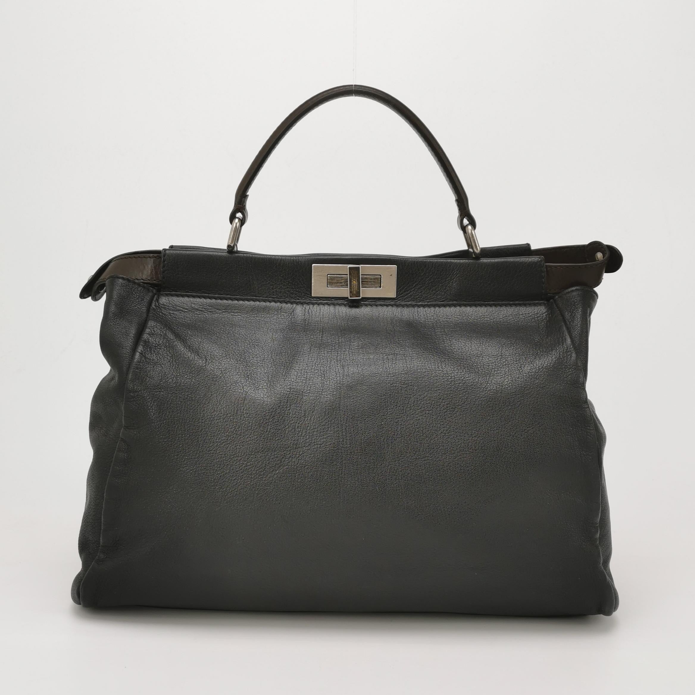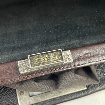 Fendi Peekaboo Large Black Calfskin Leather Glitter Beaded Zucca Interior