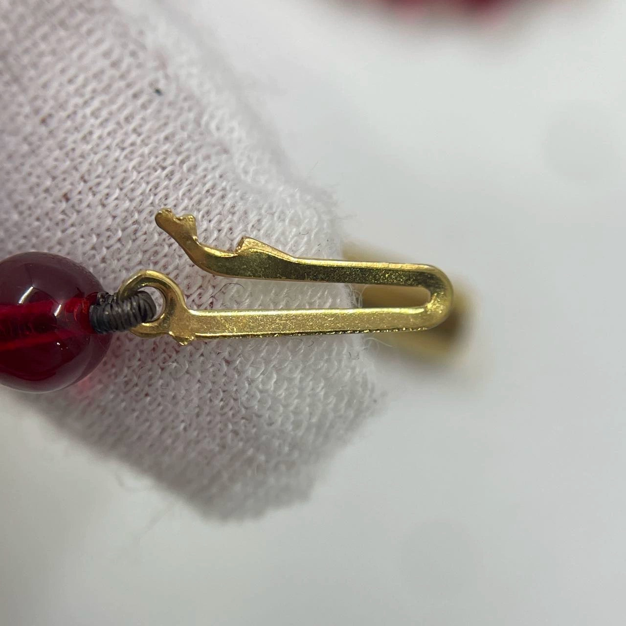 Ferragamo Vintage Rare Red Ruby Beads Necklace Gold Plated Butterfly Signed