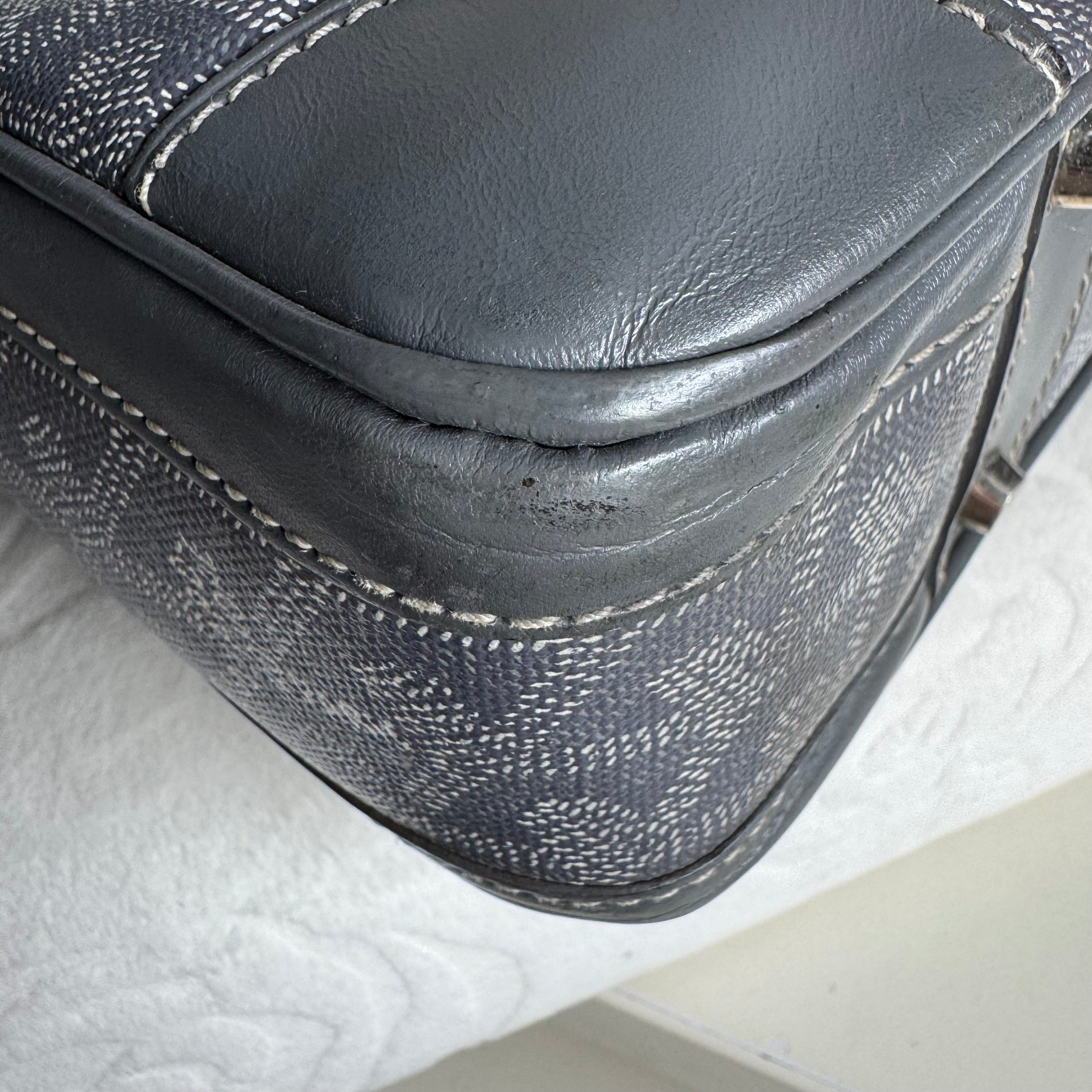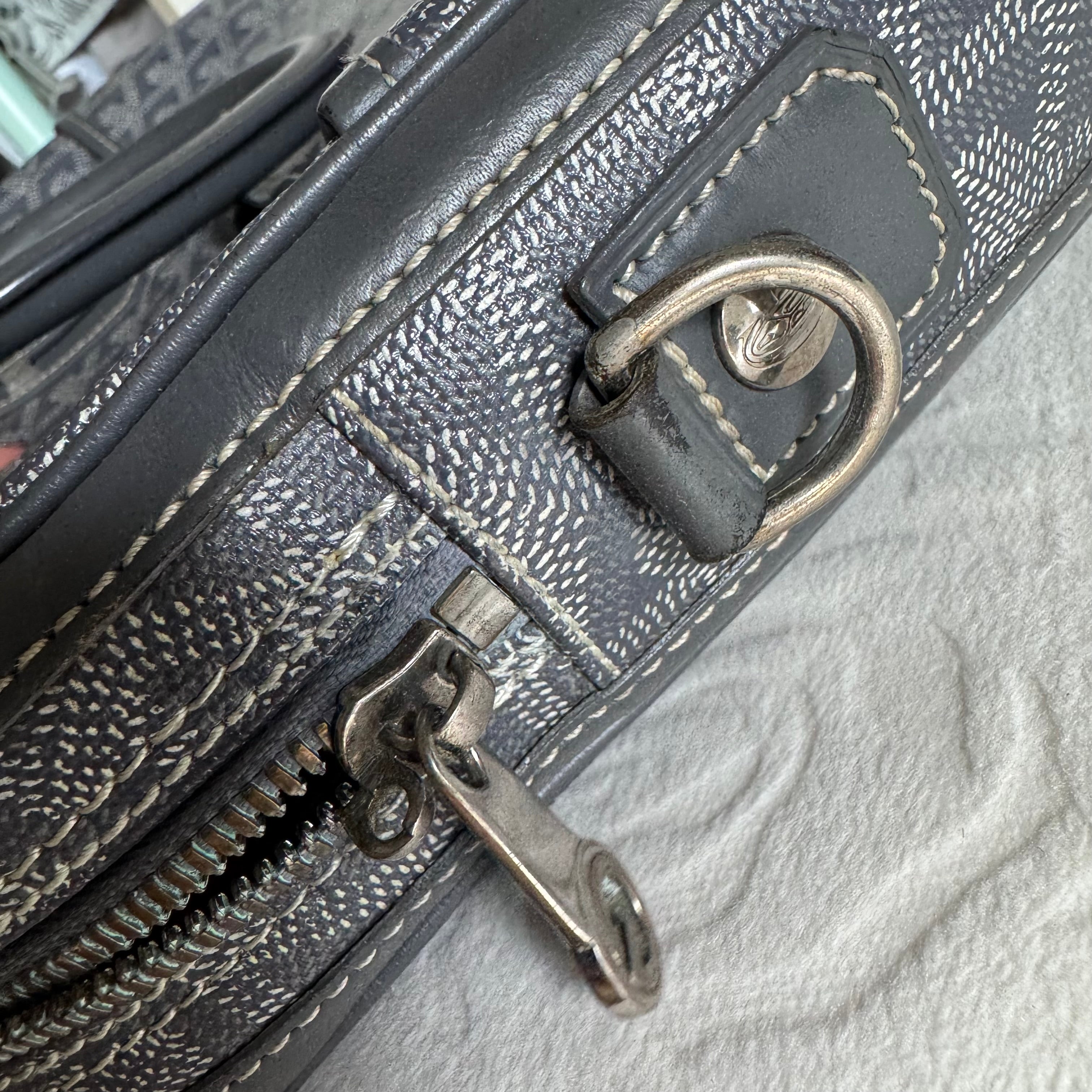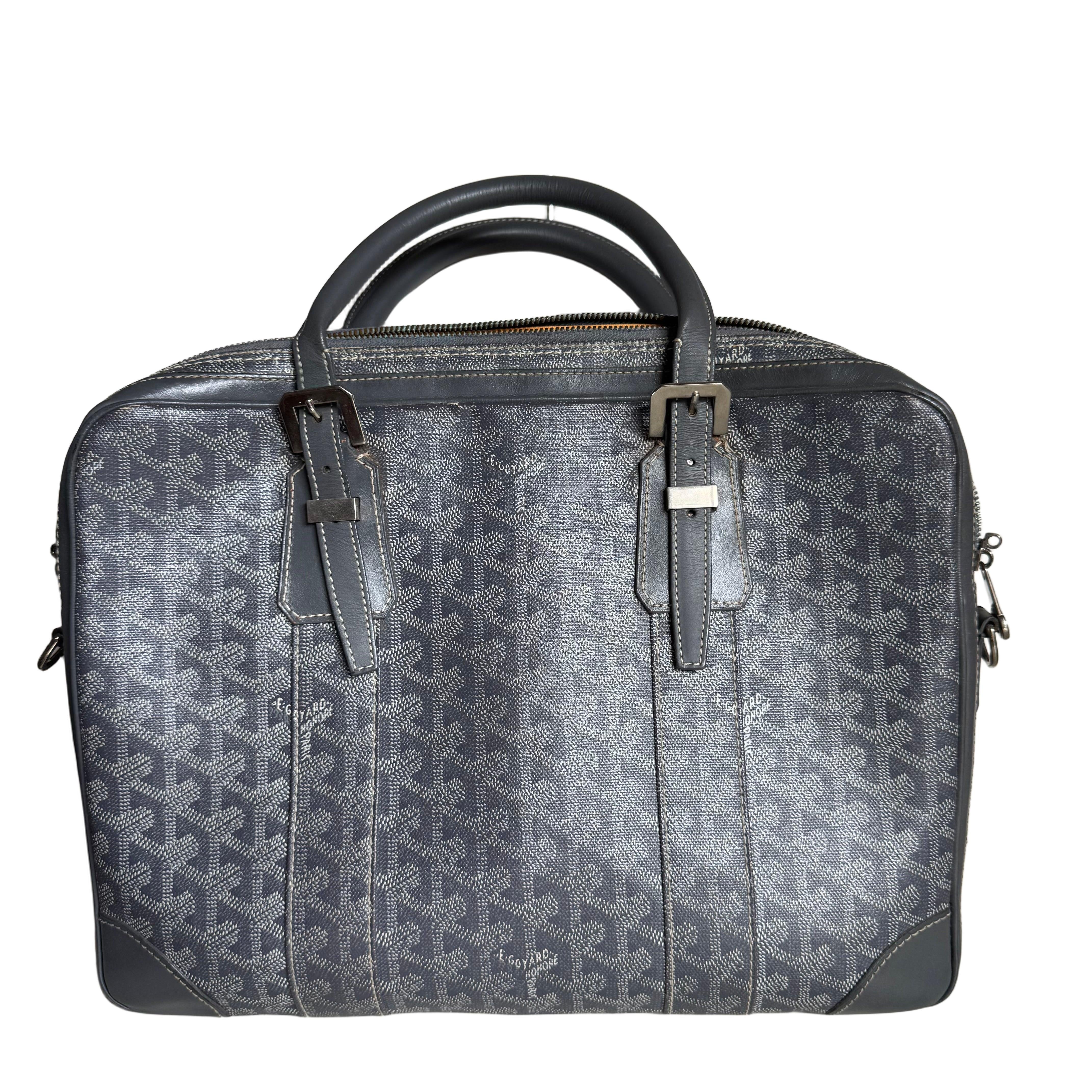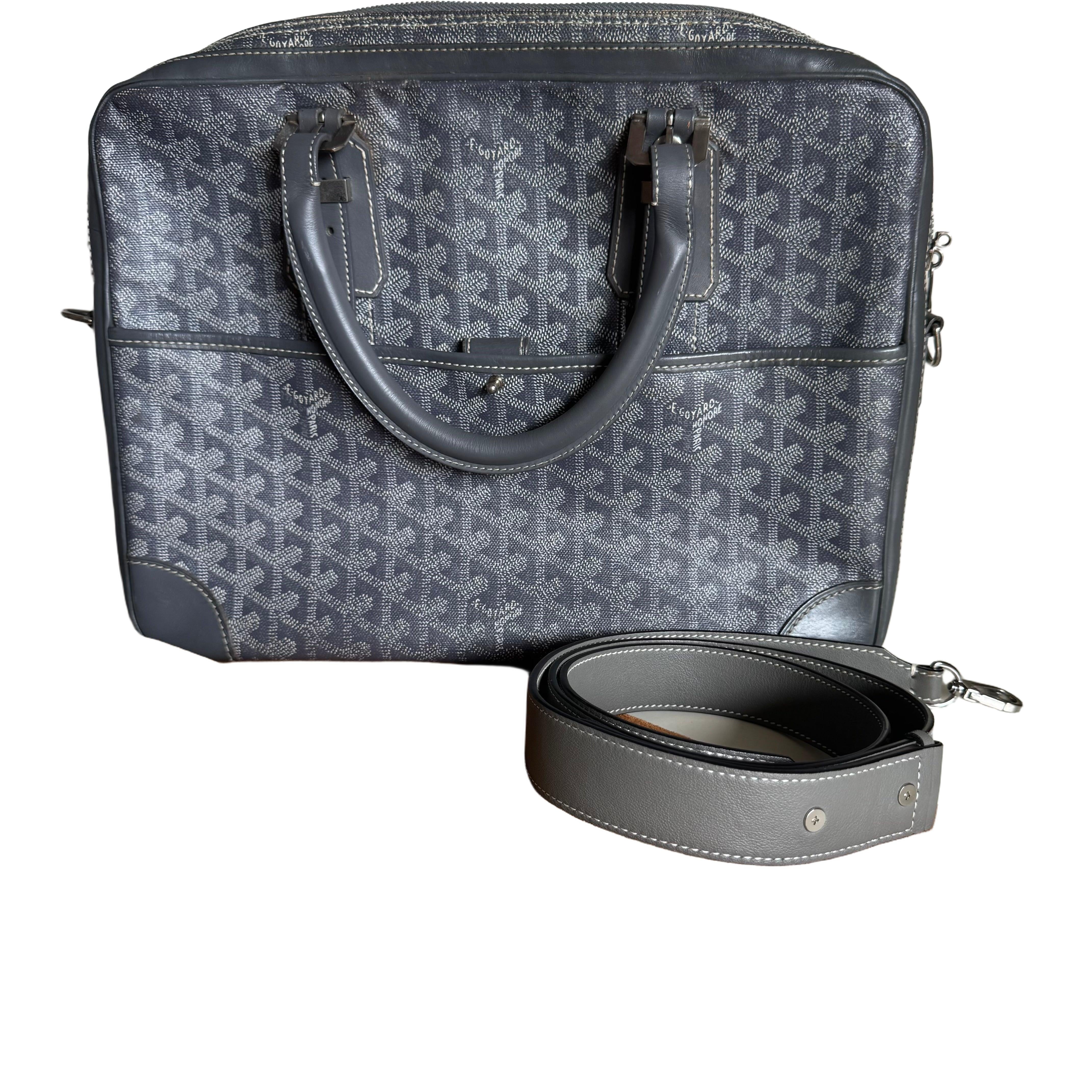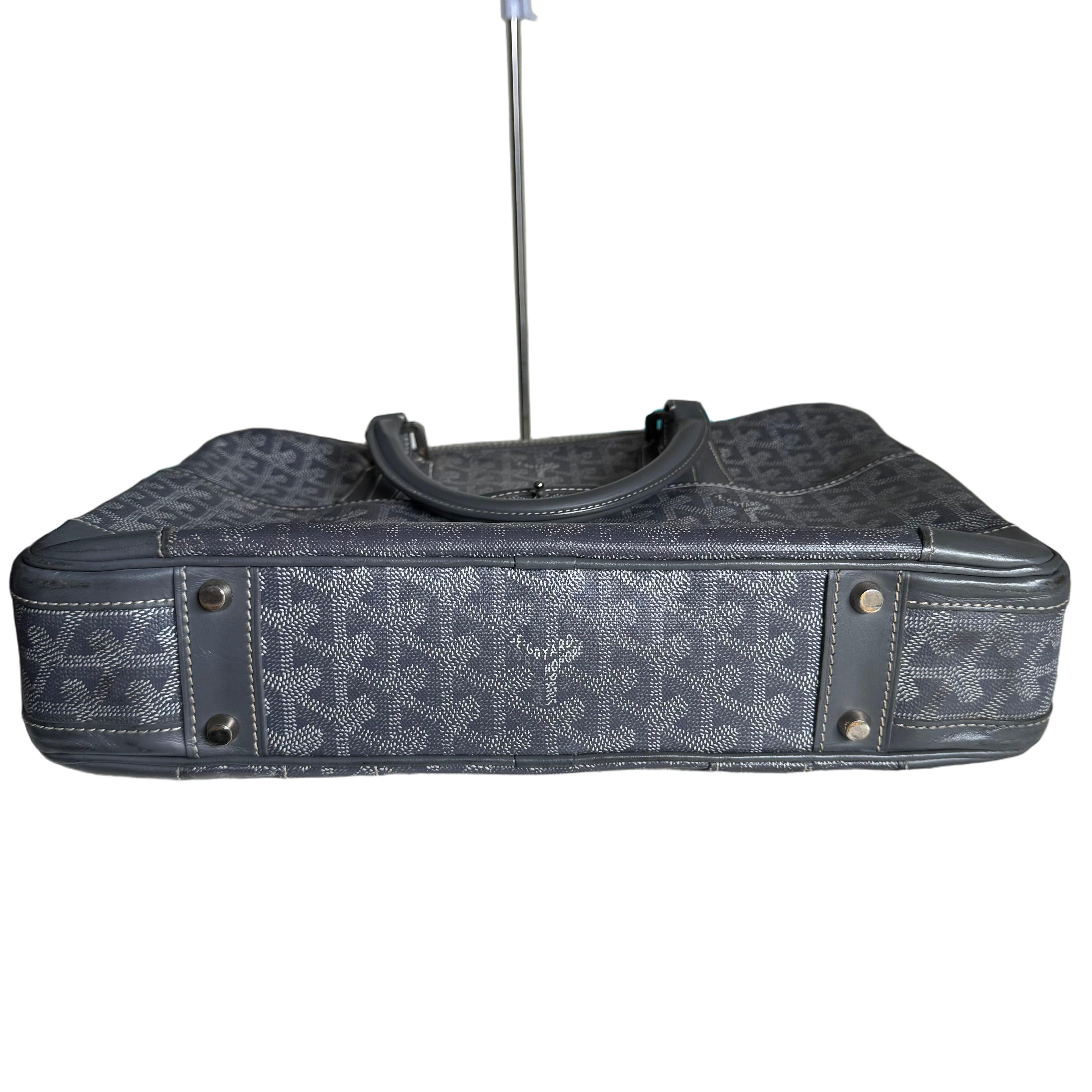 Goyard Ambassade Document Case Small 35cm Handbag Grey Canvas Leather Silver Hardware