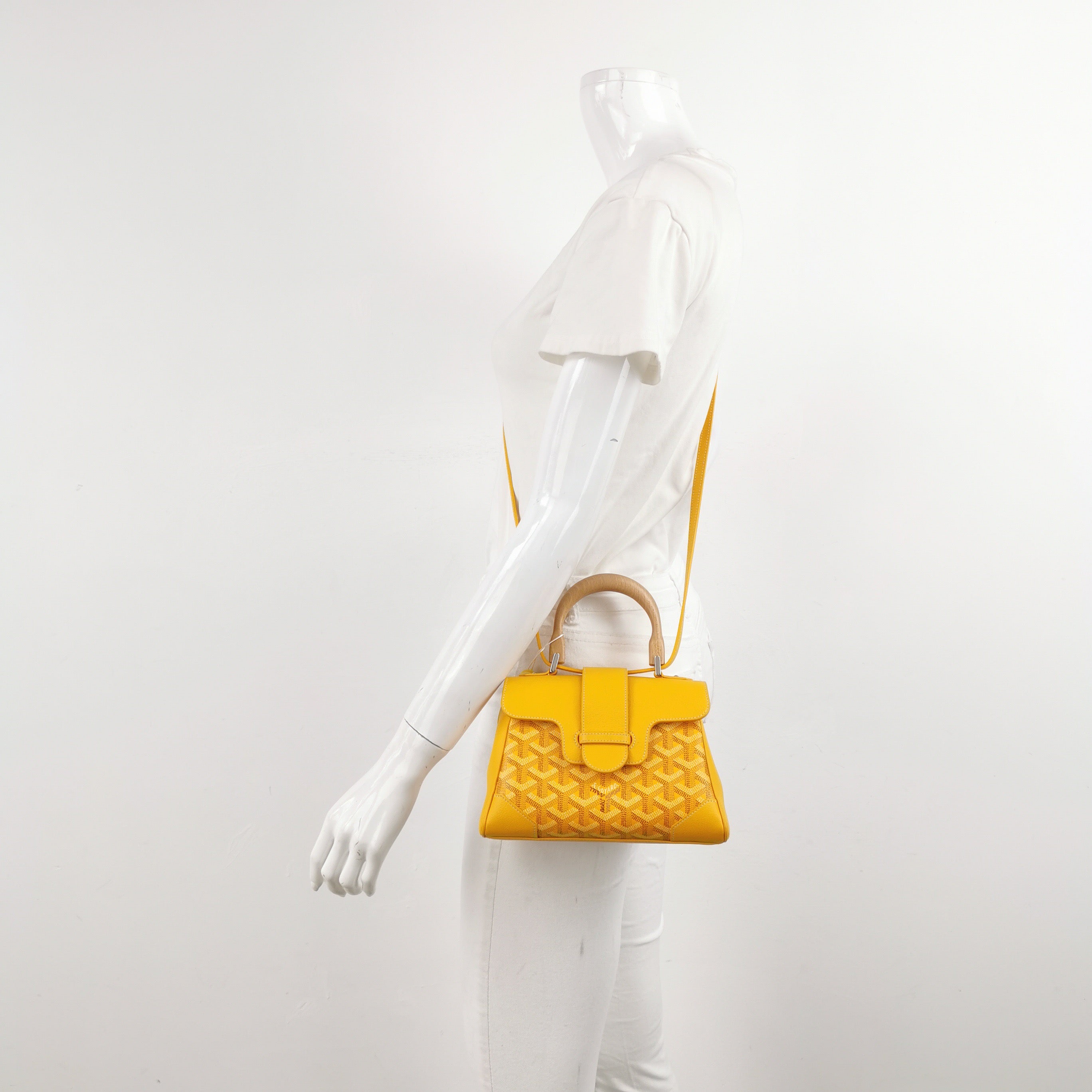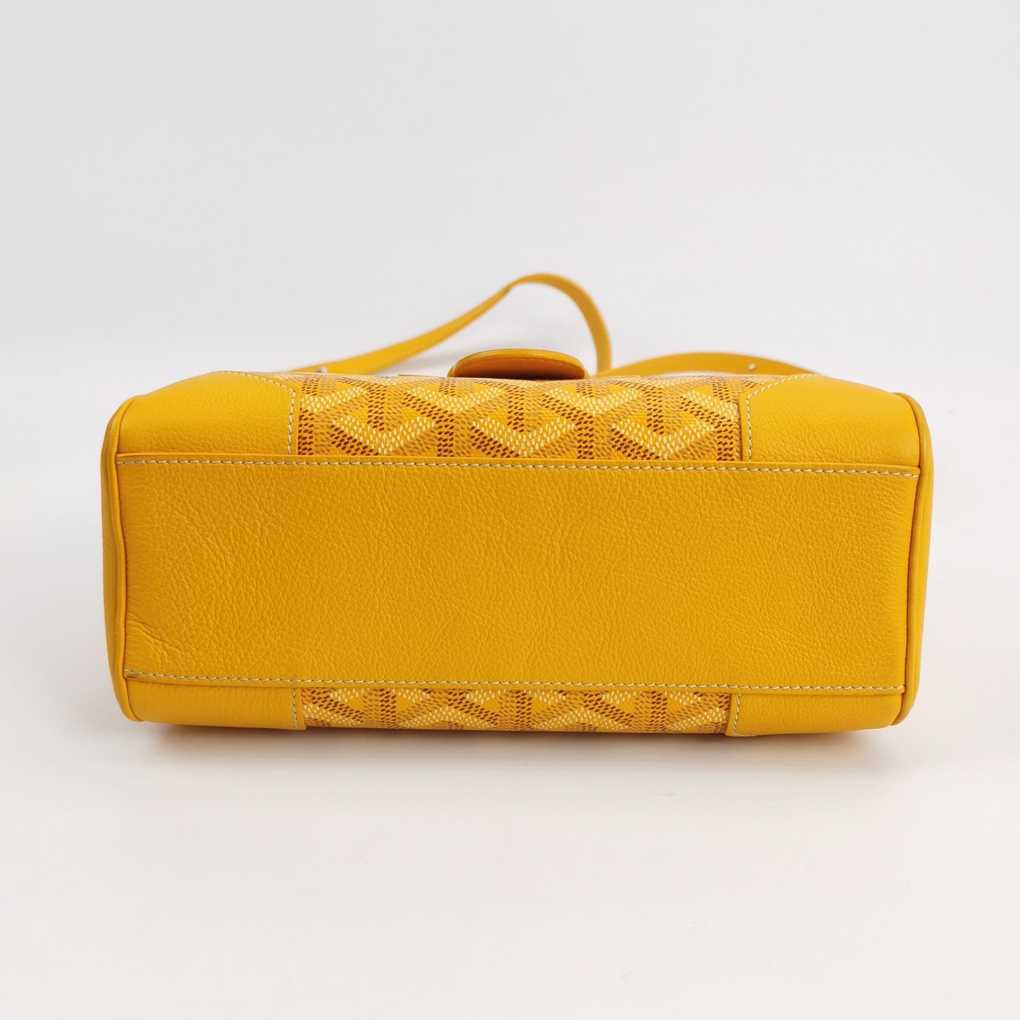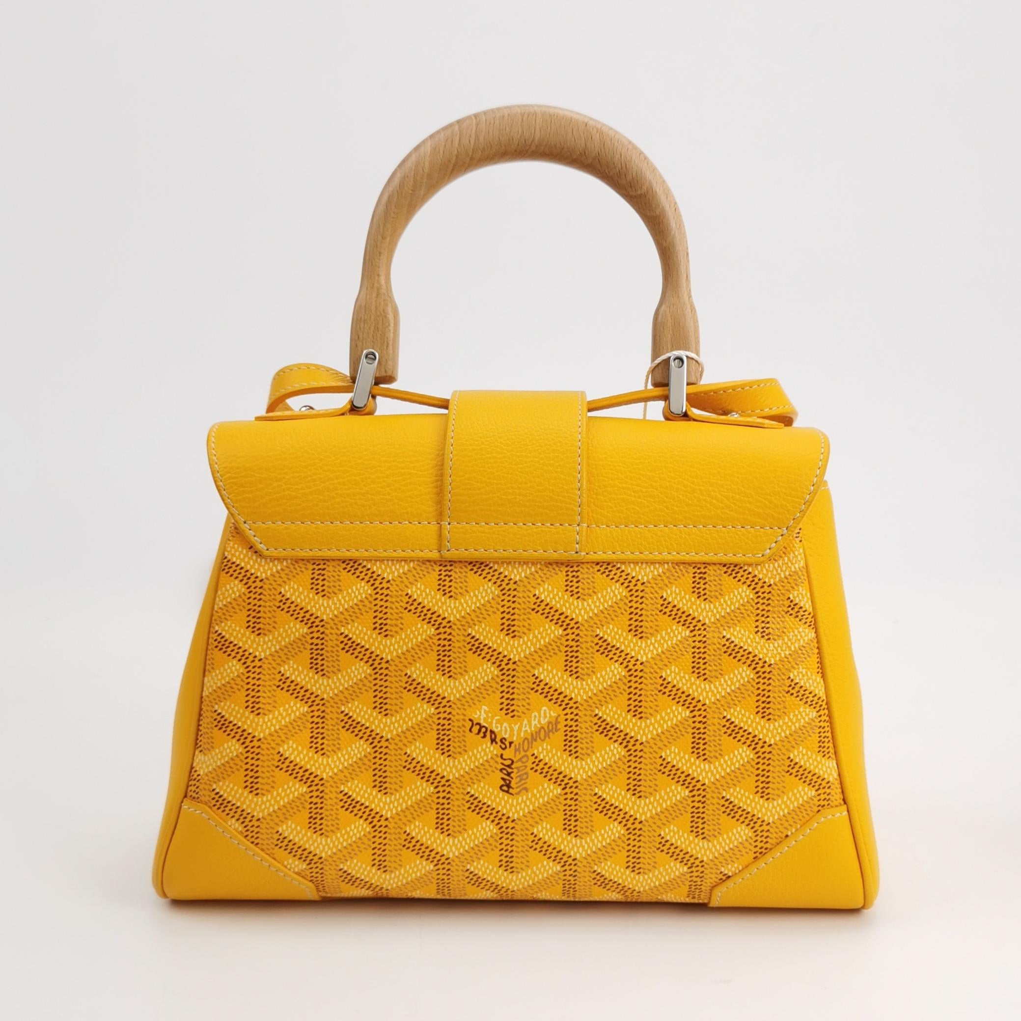 Goyard Saigon Mini Yellow Canvas and Leather Wooden Top Handle Crossbody Bag