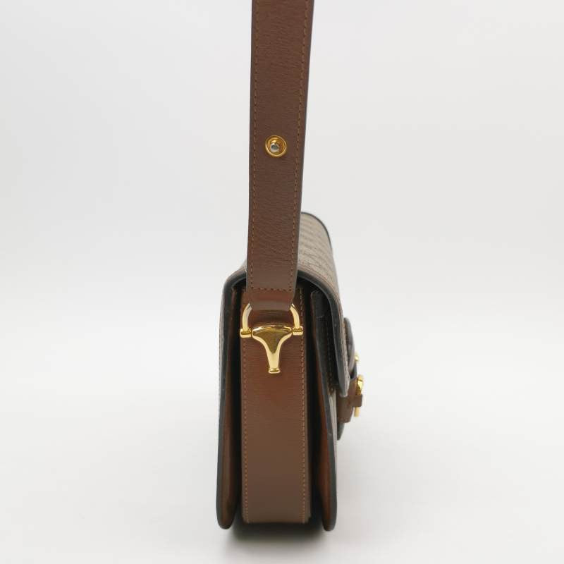 Gucci 1955 Horsebit Bag Small Brown Leather and GG Monogram Canvas