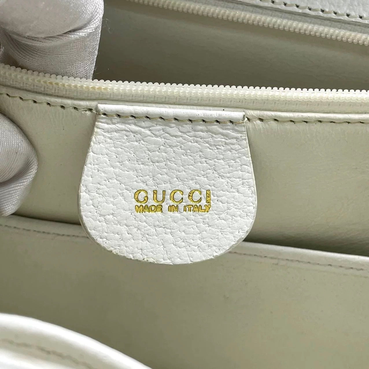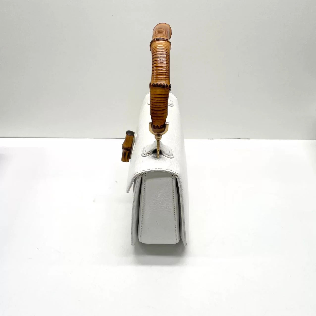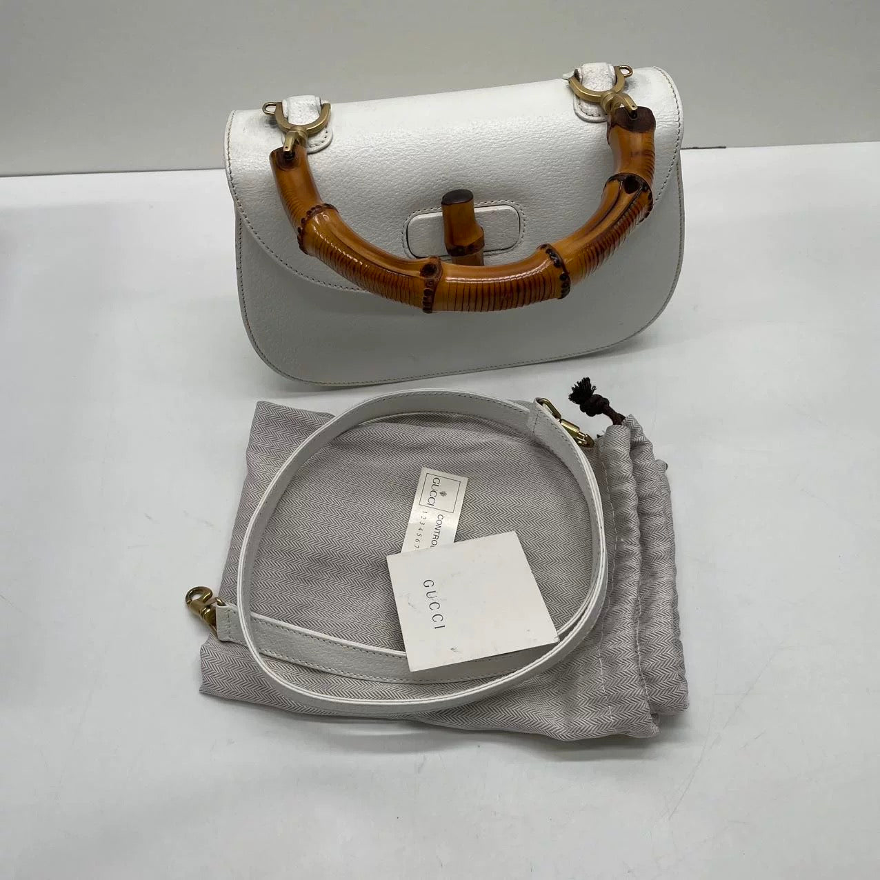 Gucci Bamboo 1947 Medium Vintage White Grained Leather With Strap