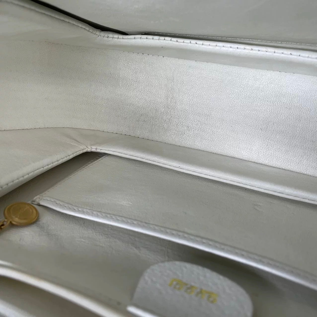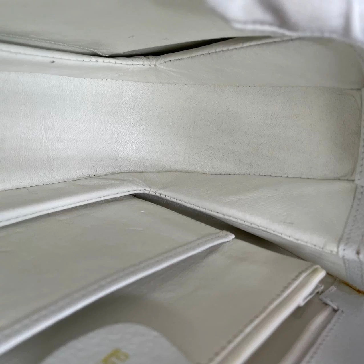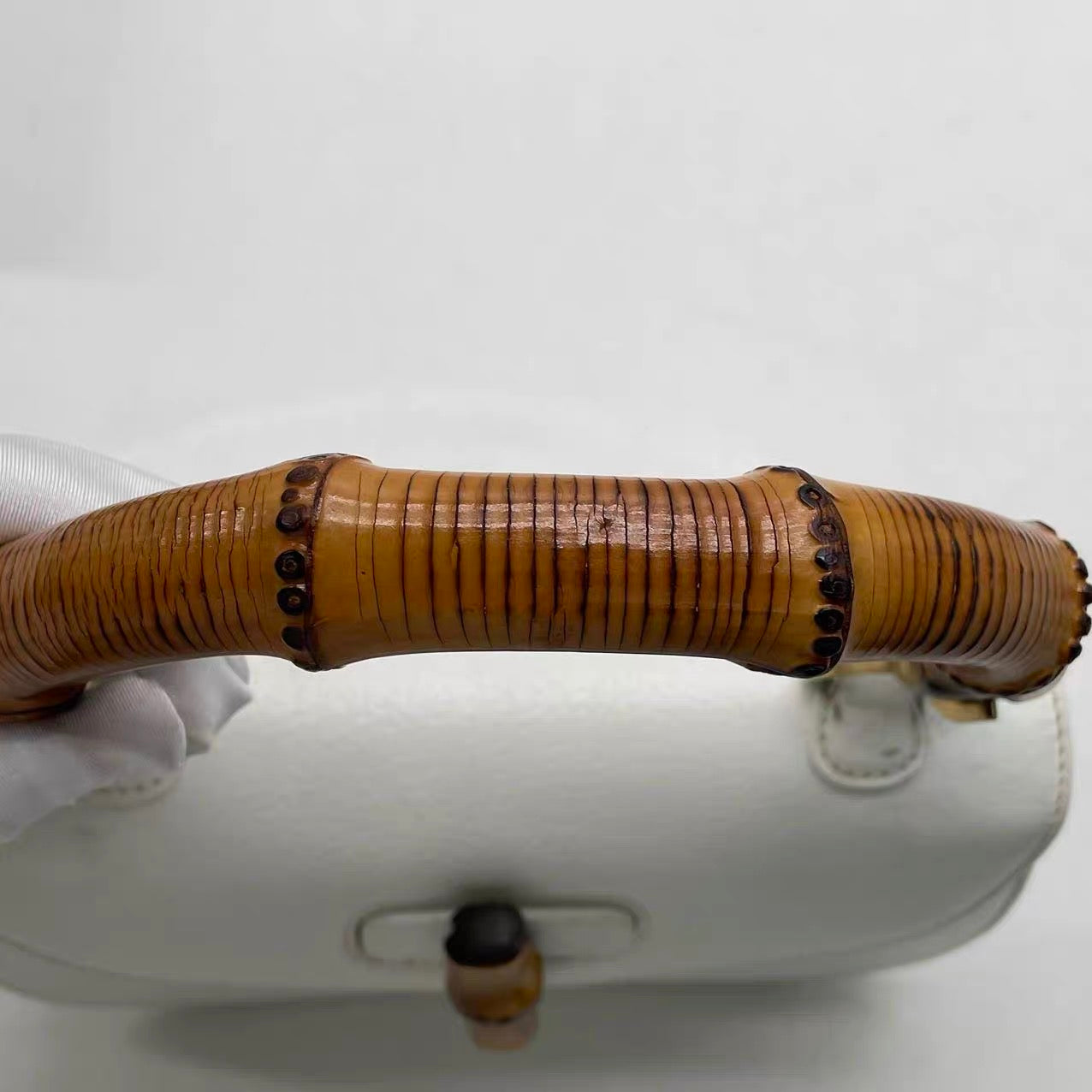 Gucci Bamboo 1947 Medium Vintage White Grained Leather With Strap