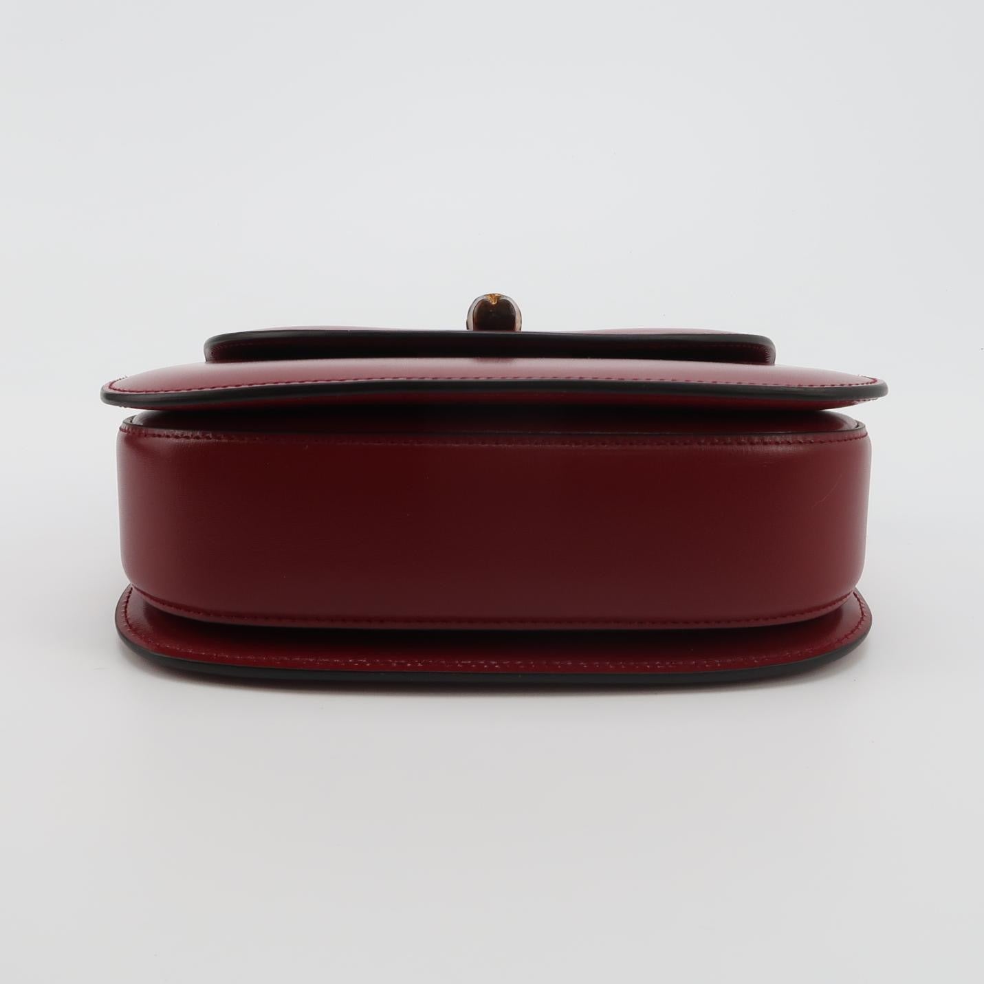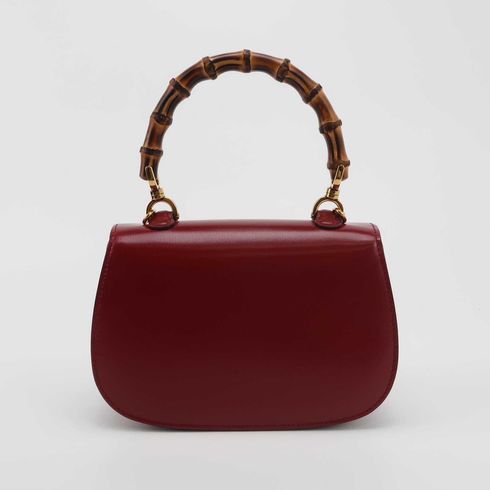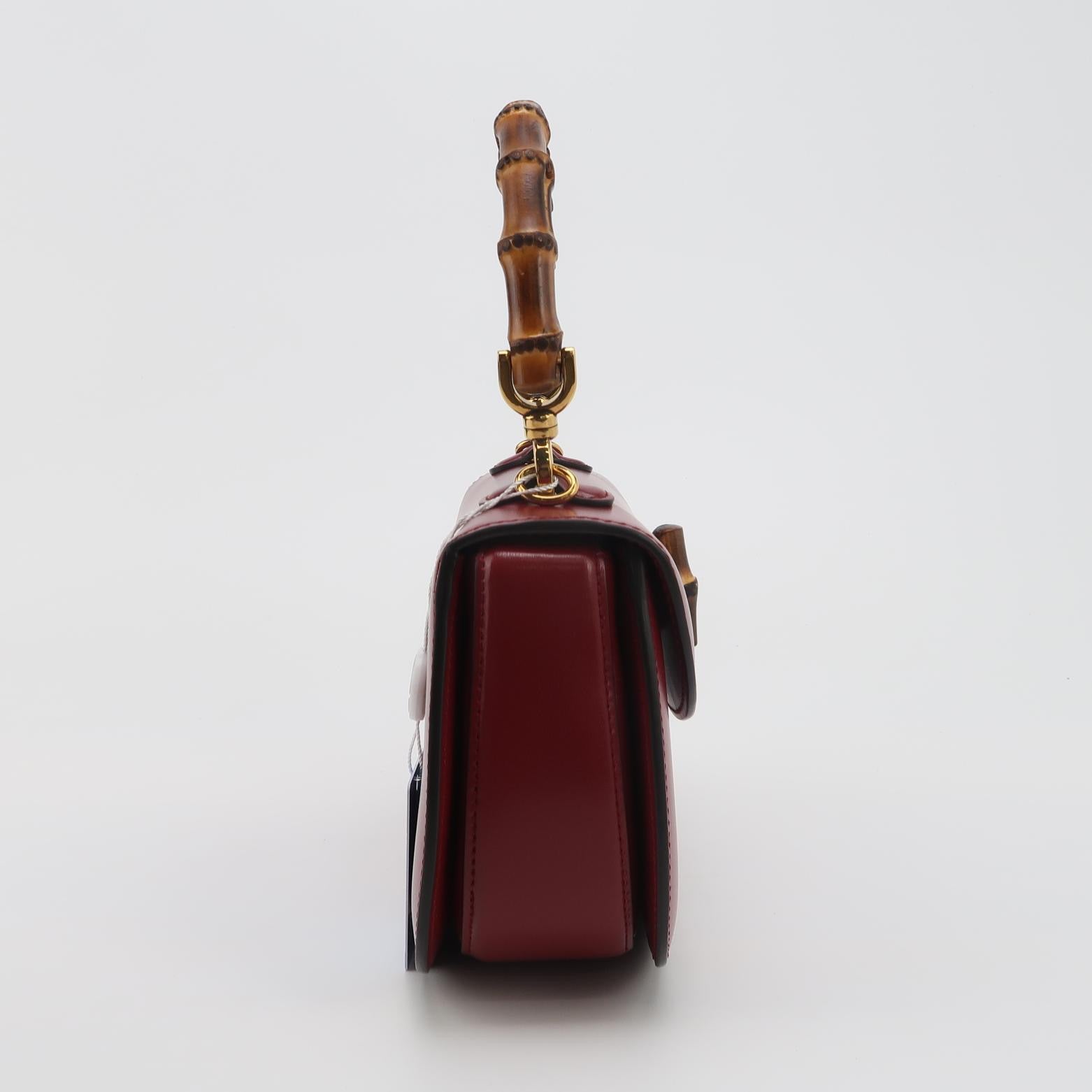 Gucci Bamboo 1947 Small Ancora Red Burgundy Calfskin Leather Top Handle Bag