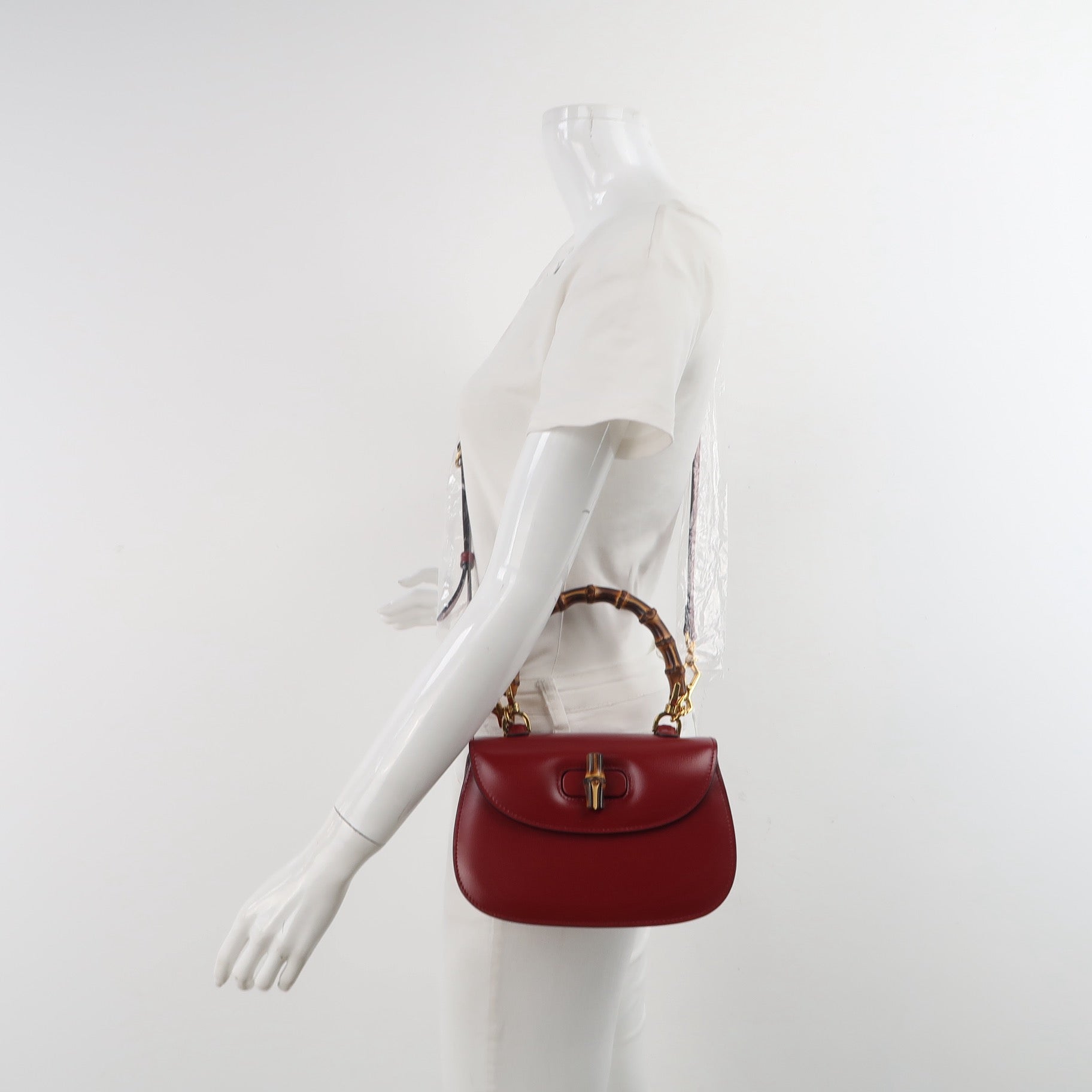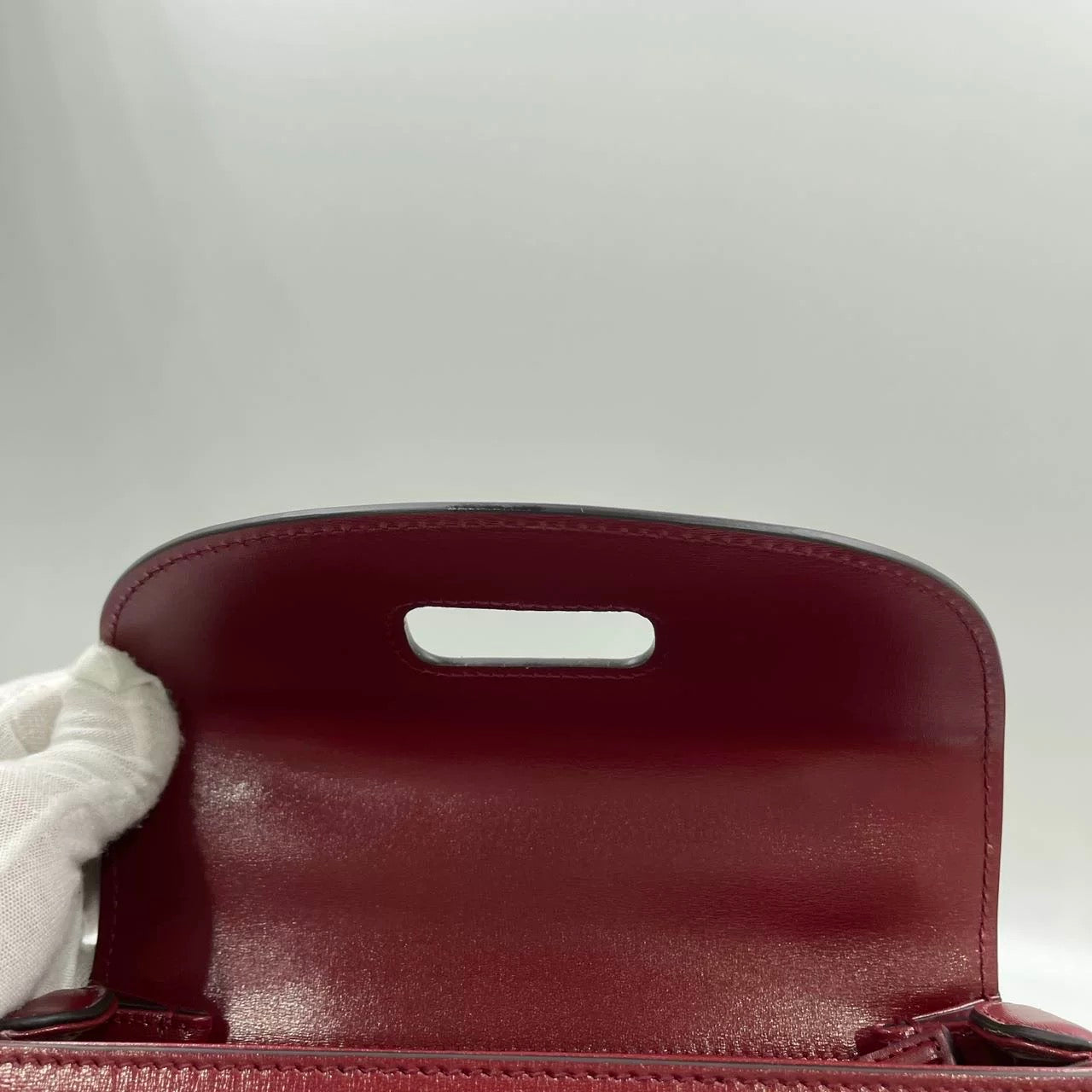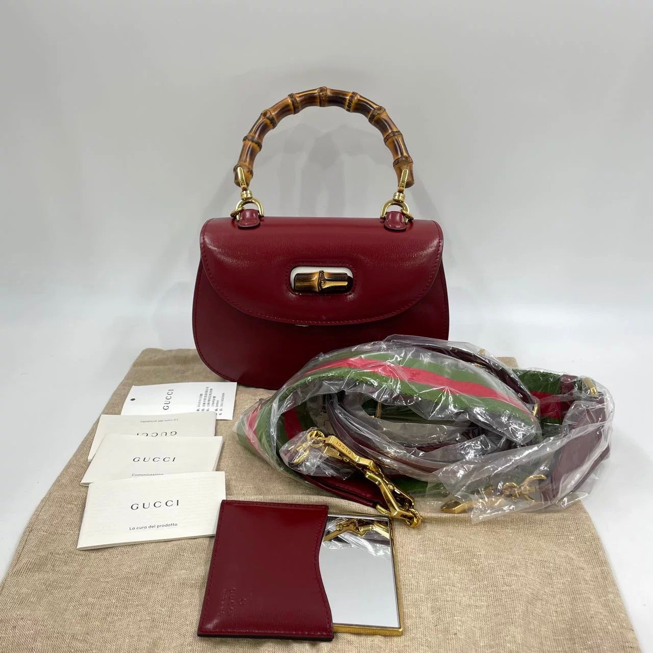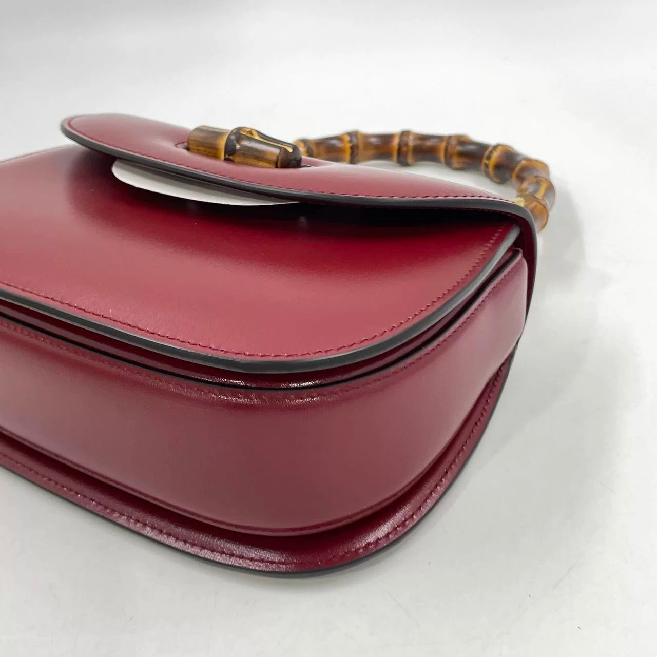 Gucci Bamboo 1947 Small Ancora Red Burgundy Calfskin Leather Top Handle Bag