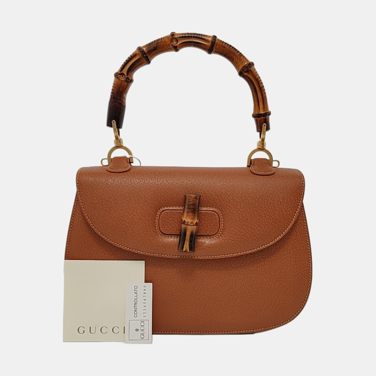 Gucci Bamboo 1947 Top Handle Bag Leather Medium Tan Brown