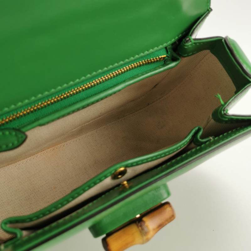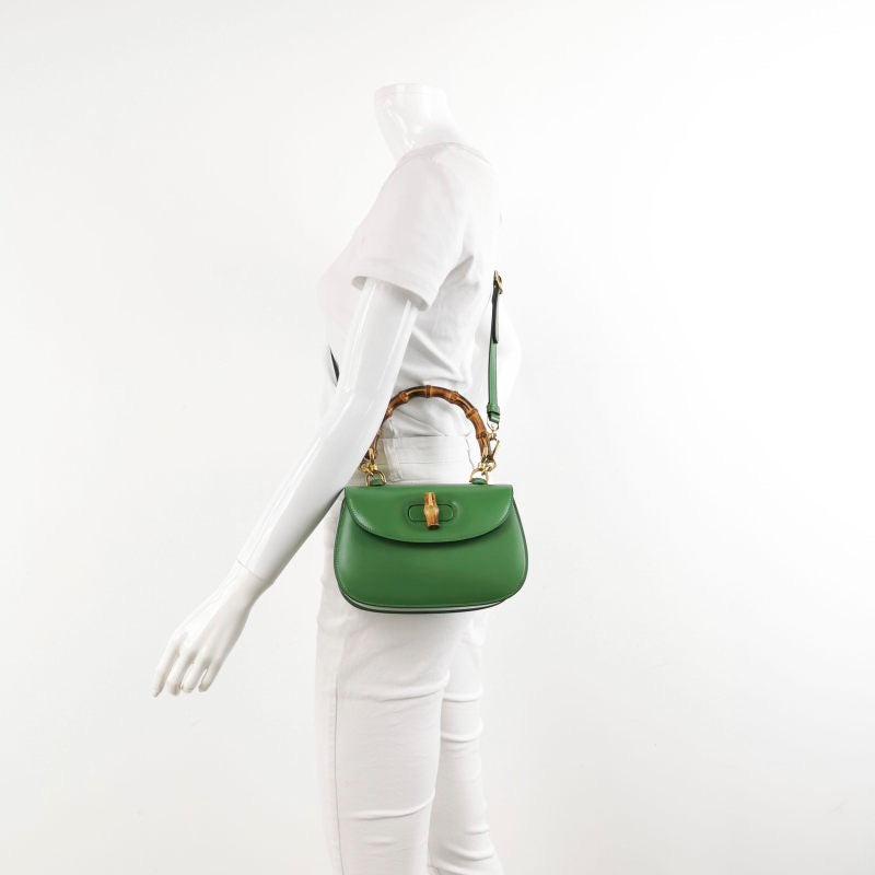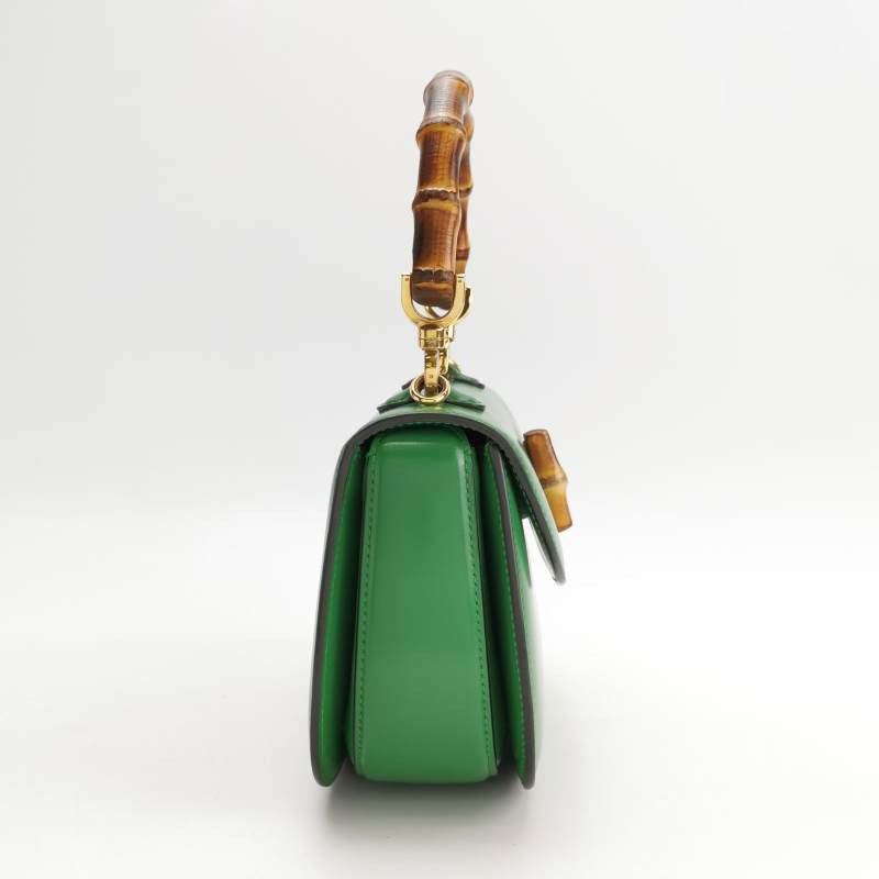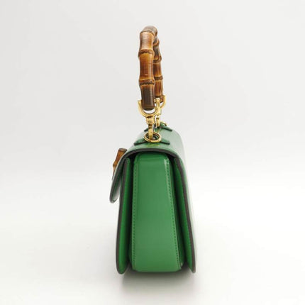 Gucci Bamboo 1947 Top Handle Bag Small Green Box Leather