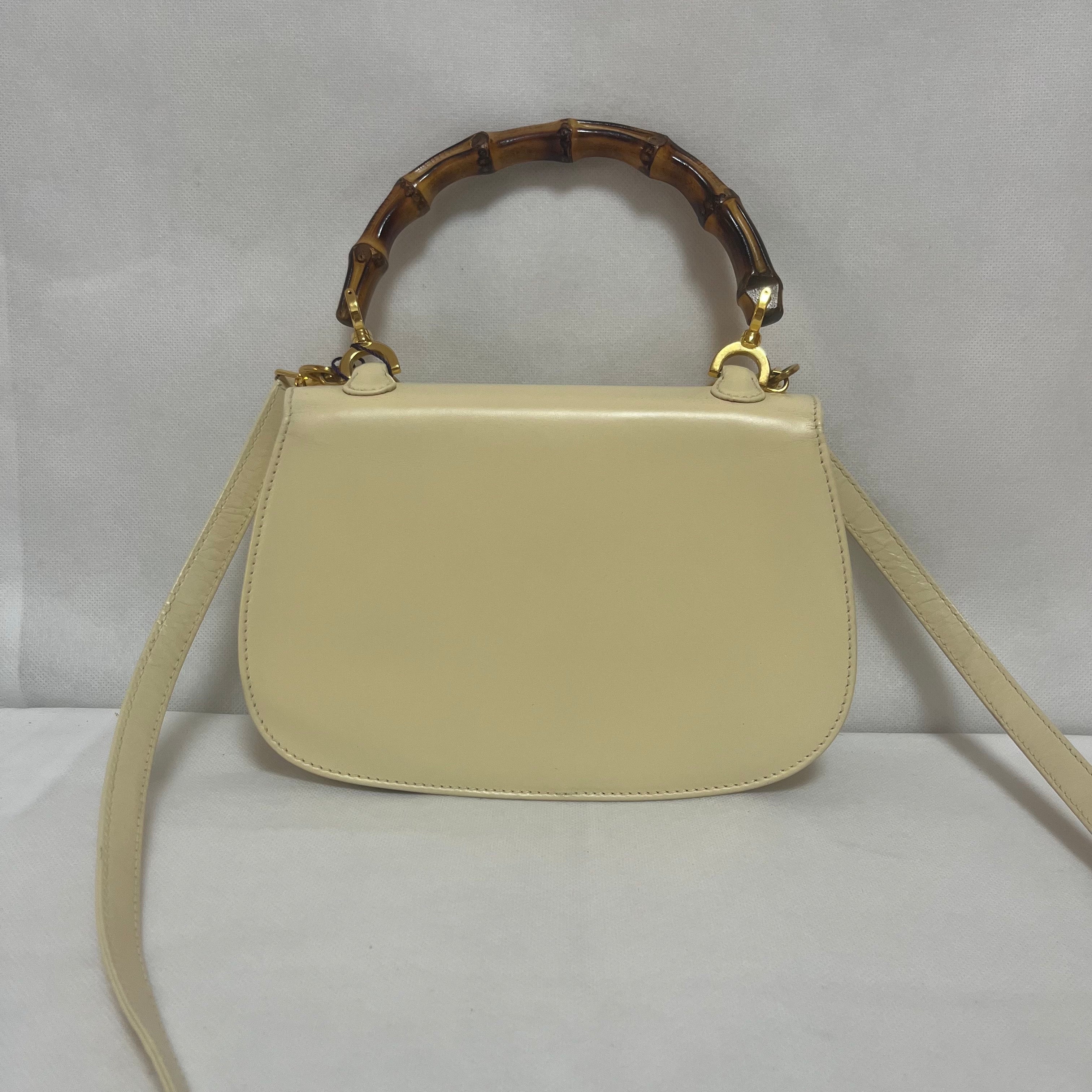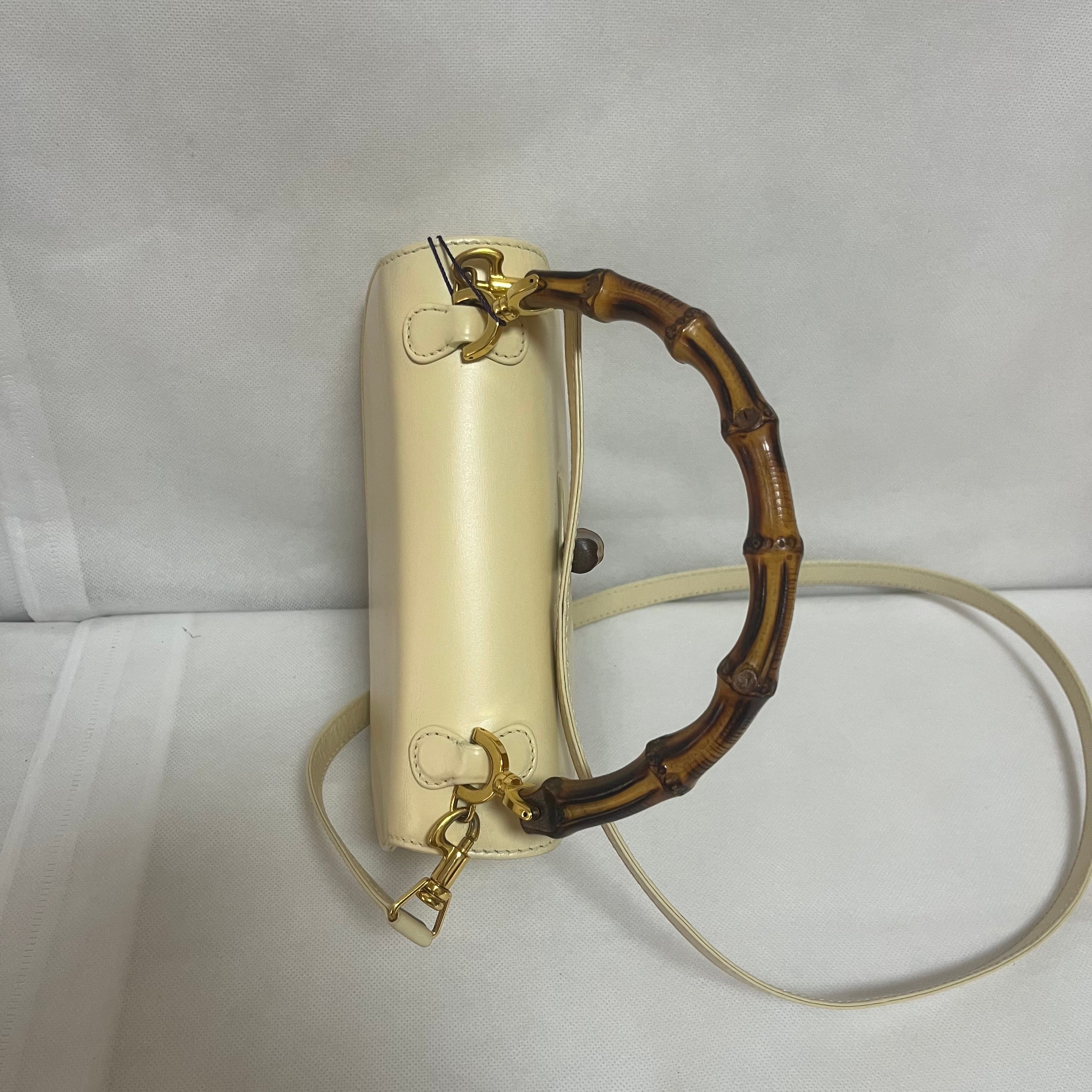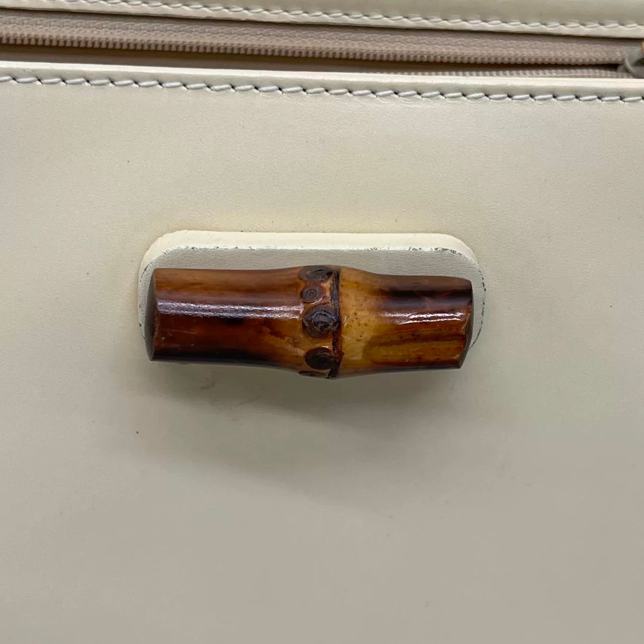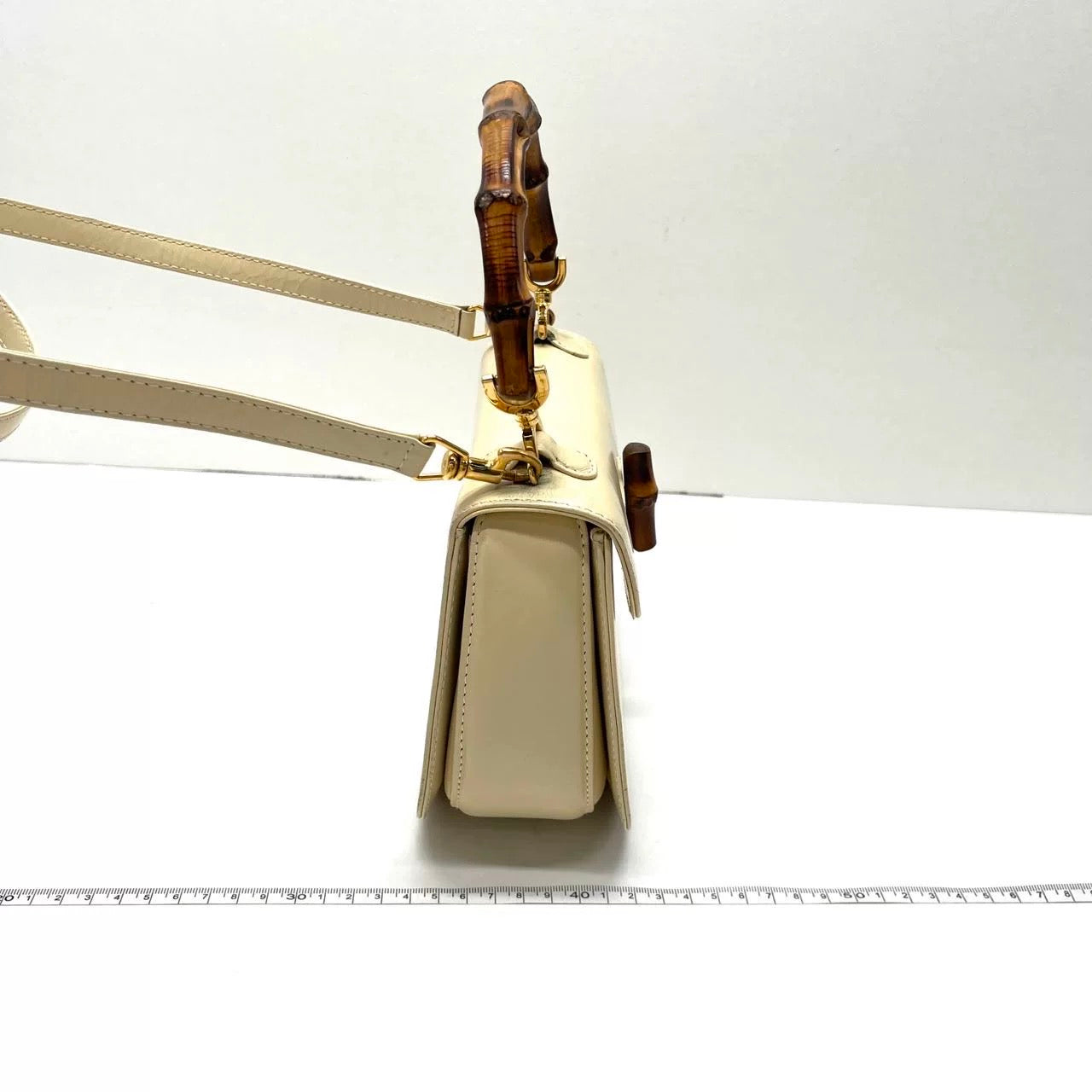 Gucci Bamboo 1947 Vintage Small White Box Leather Top Handle and Leather Strap Bag