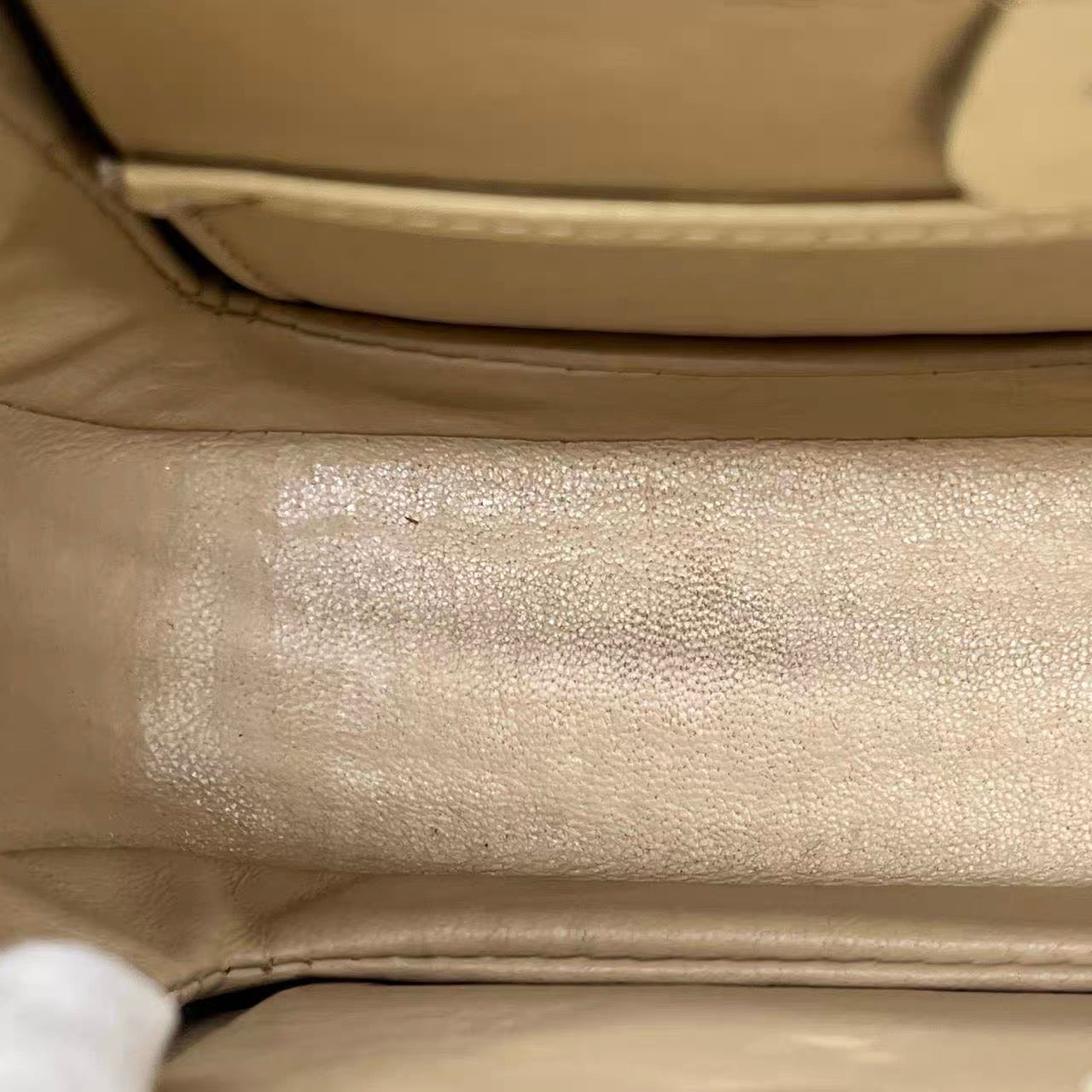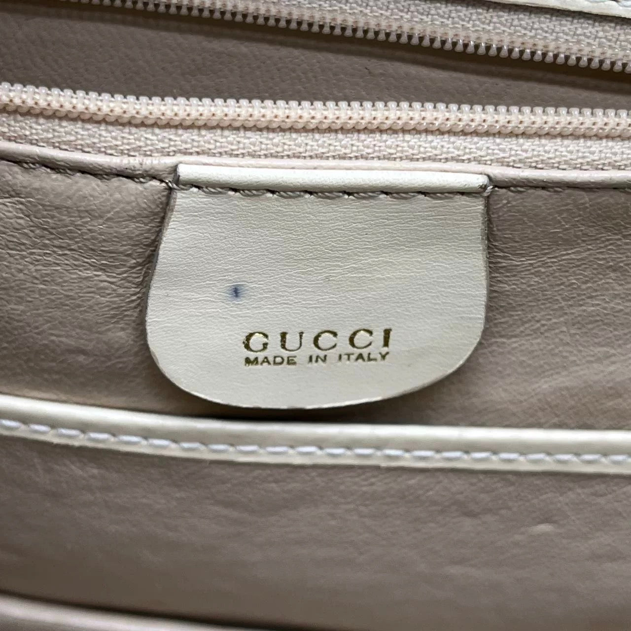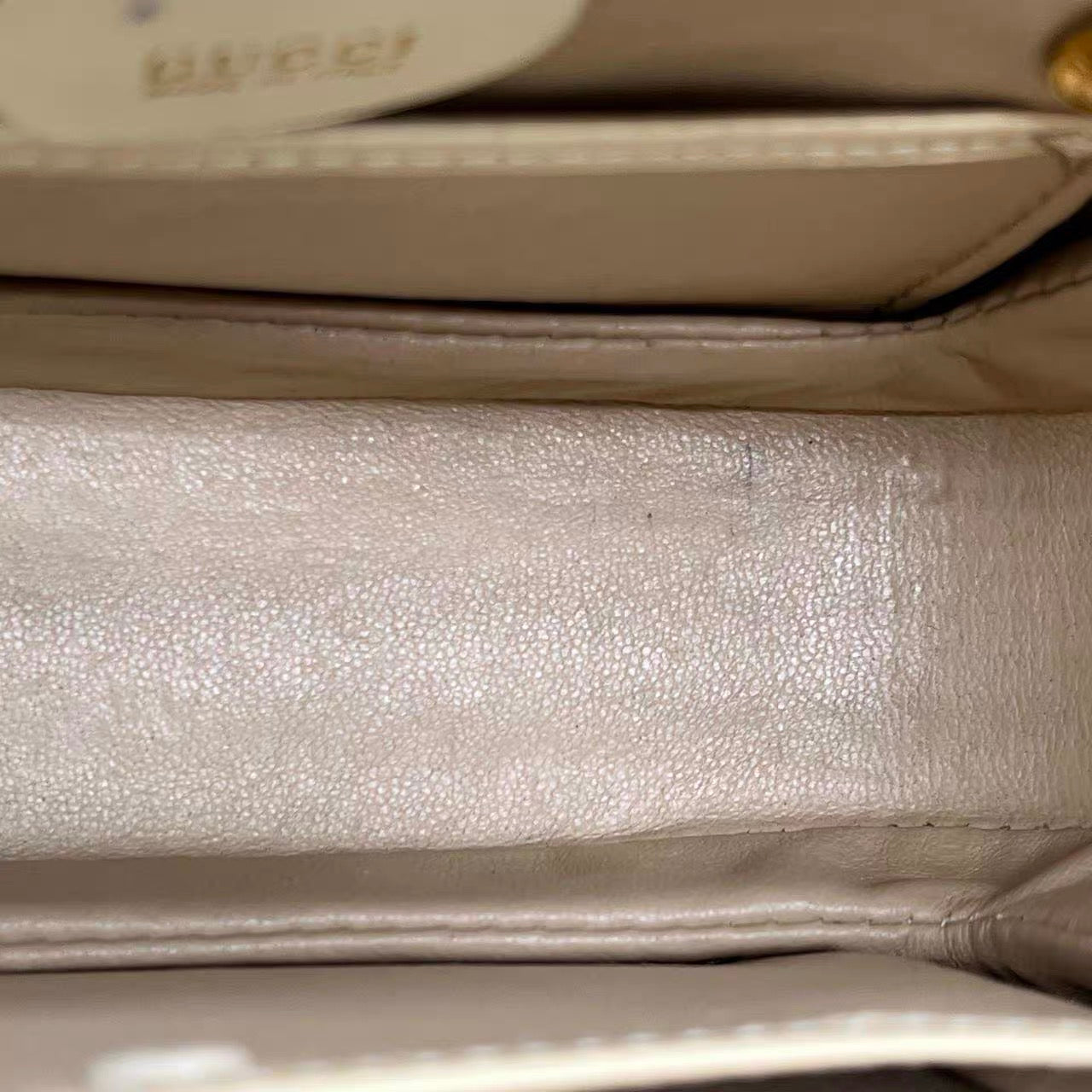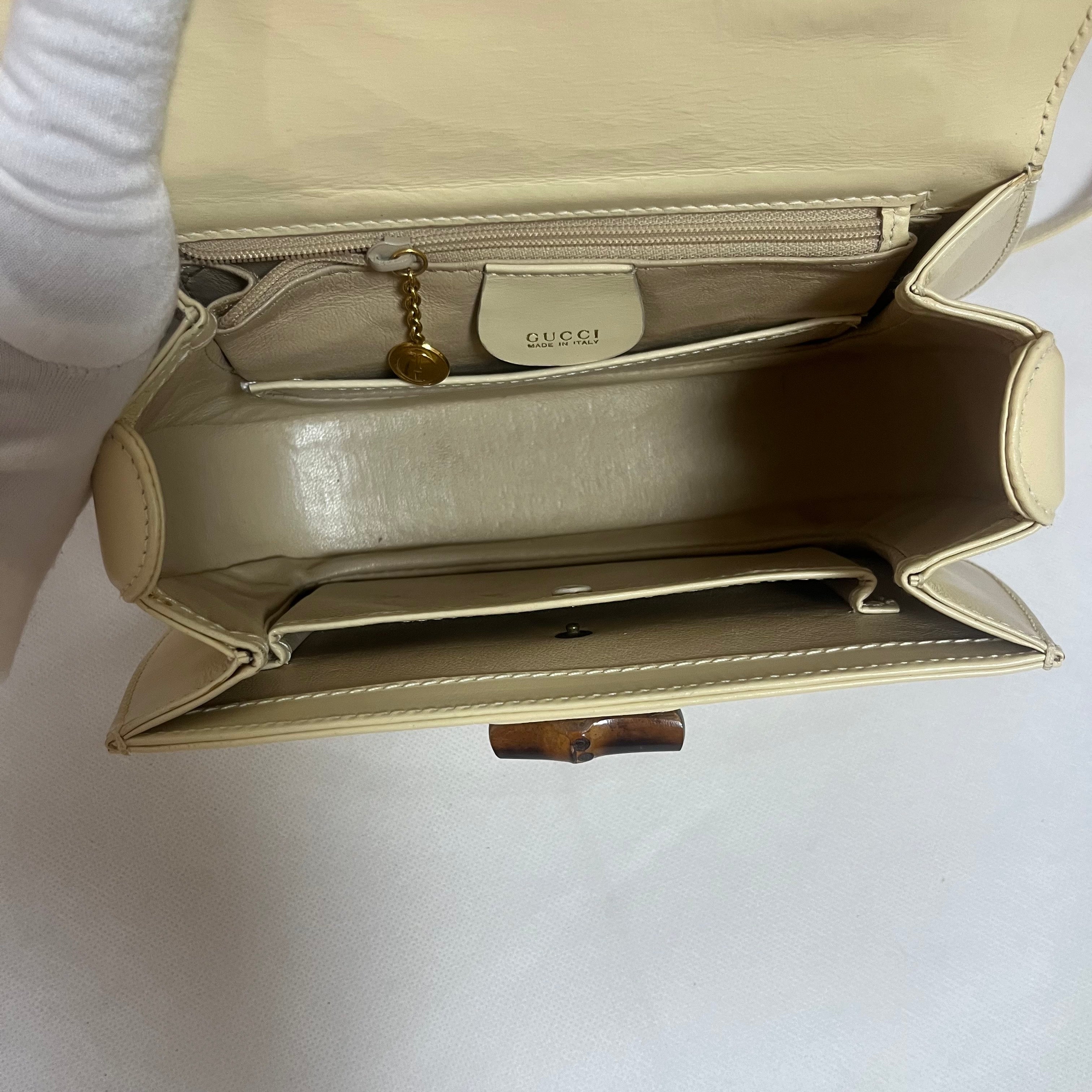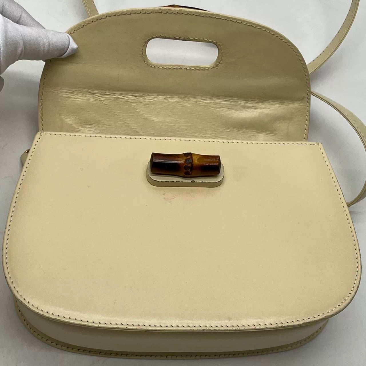 Gucci Bamboo 1947 Vintage Small White Box Leather Top Handle and Leather Strap Bag