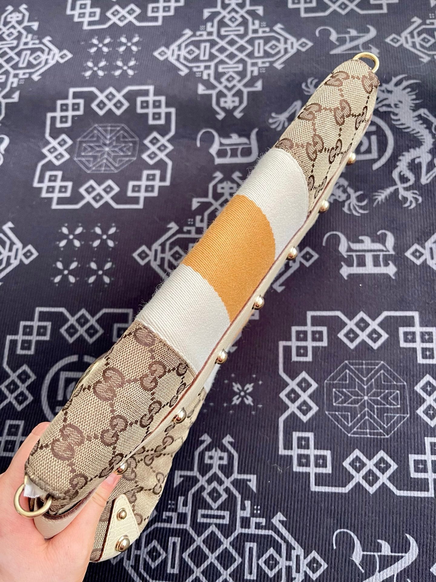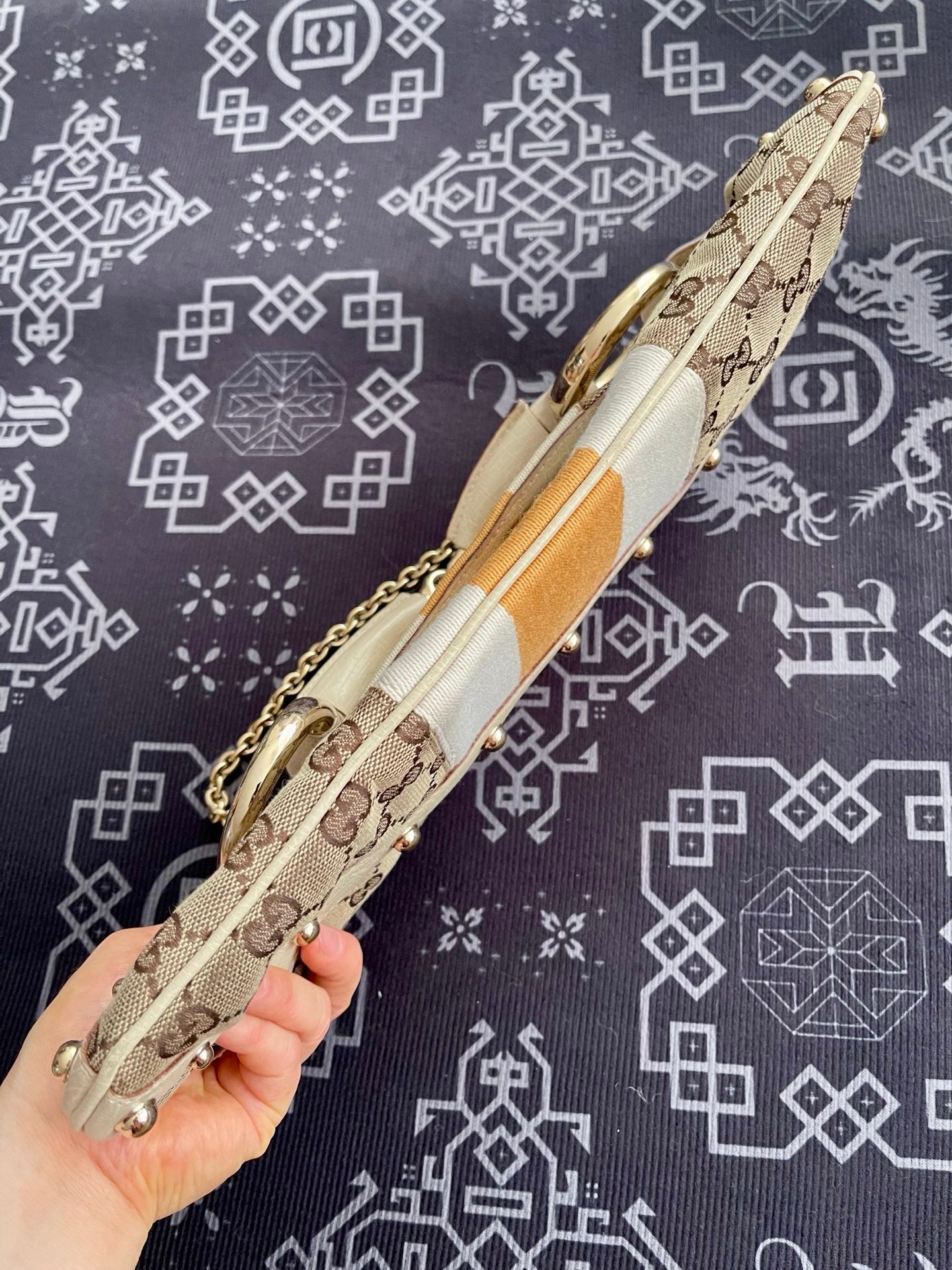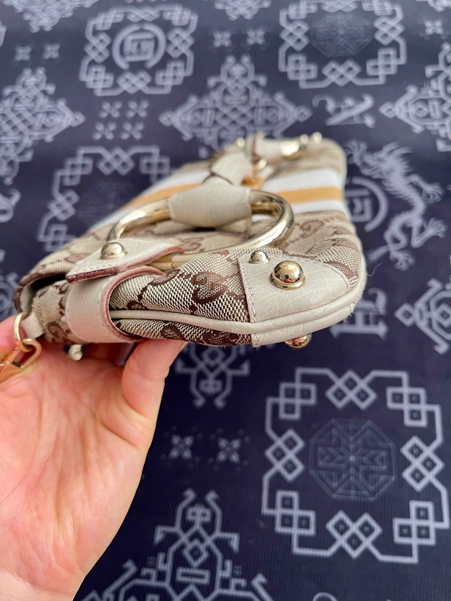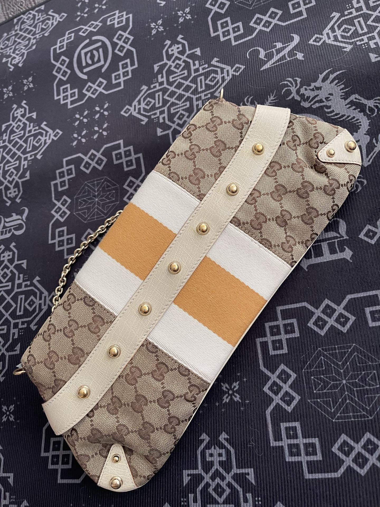 Gucci Horsebit 1955 Large Chain Bag Gucci Monogram Yellow White Web