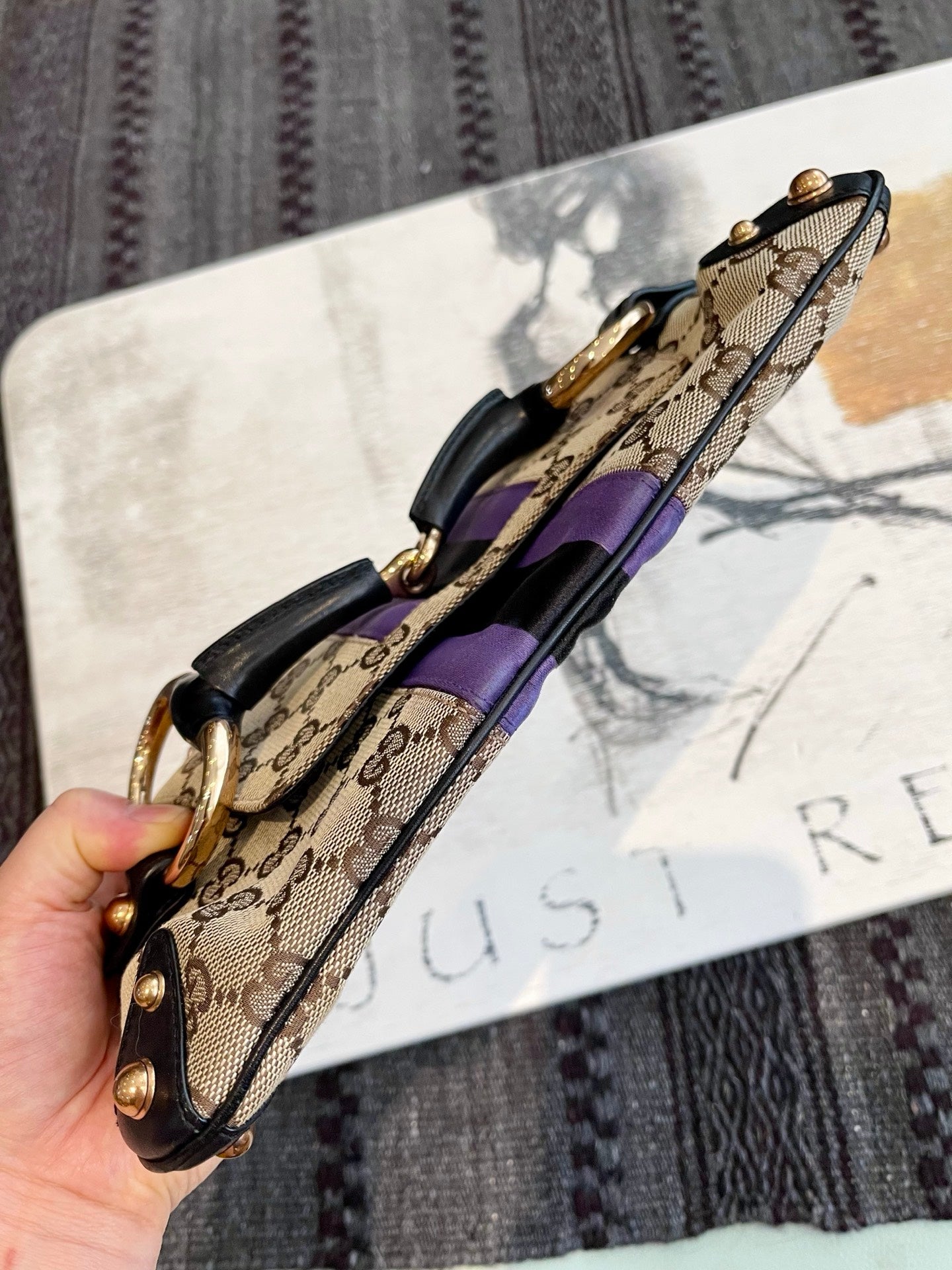 Gucci Horsebit 1955 Small Chain Bag Gucci Monogram Black Purple Web