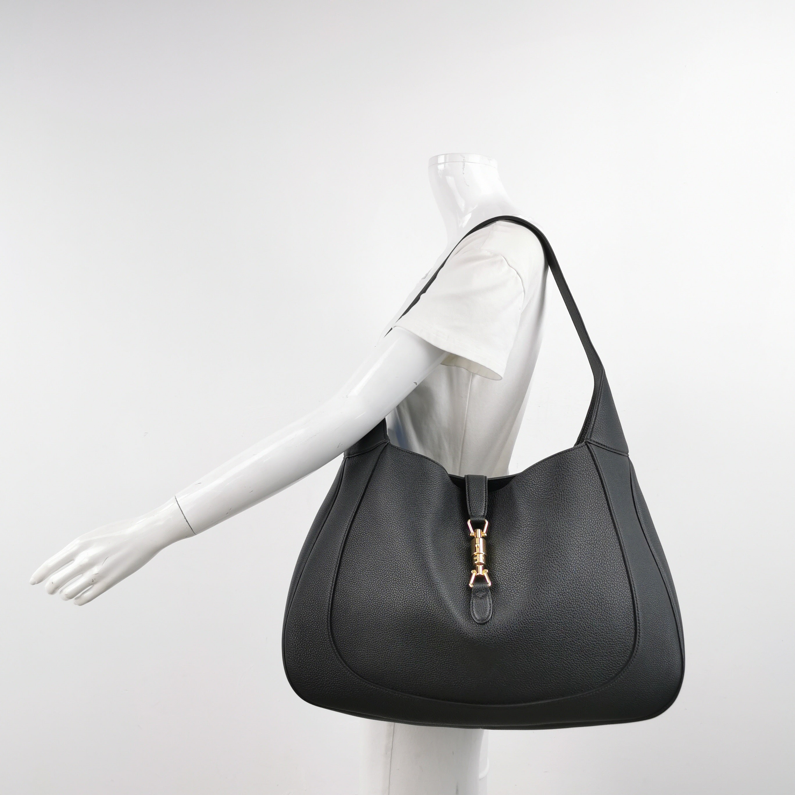 Gucci Jackie 1961 Black Large Pebbled Leather Shoulder Bag with Strap