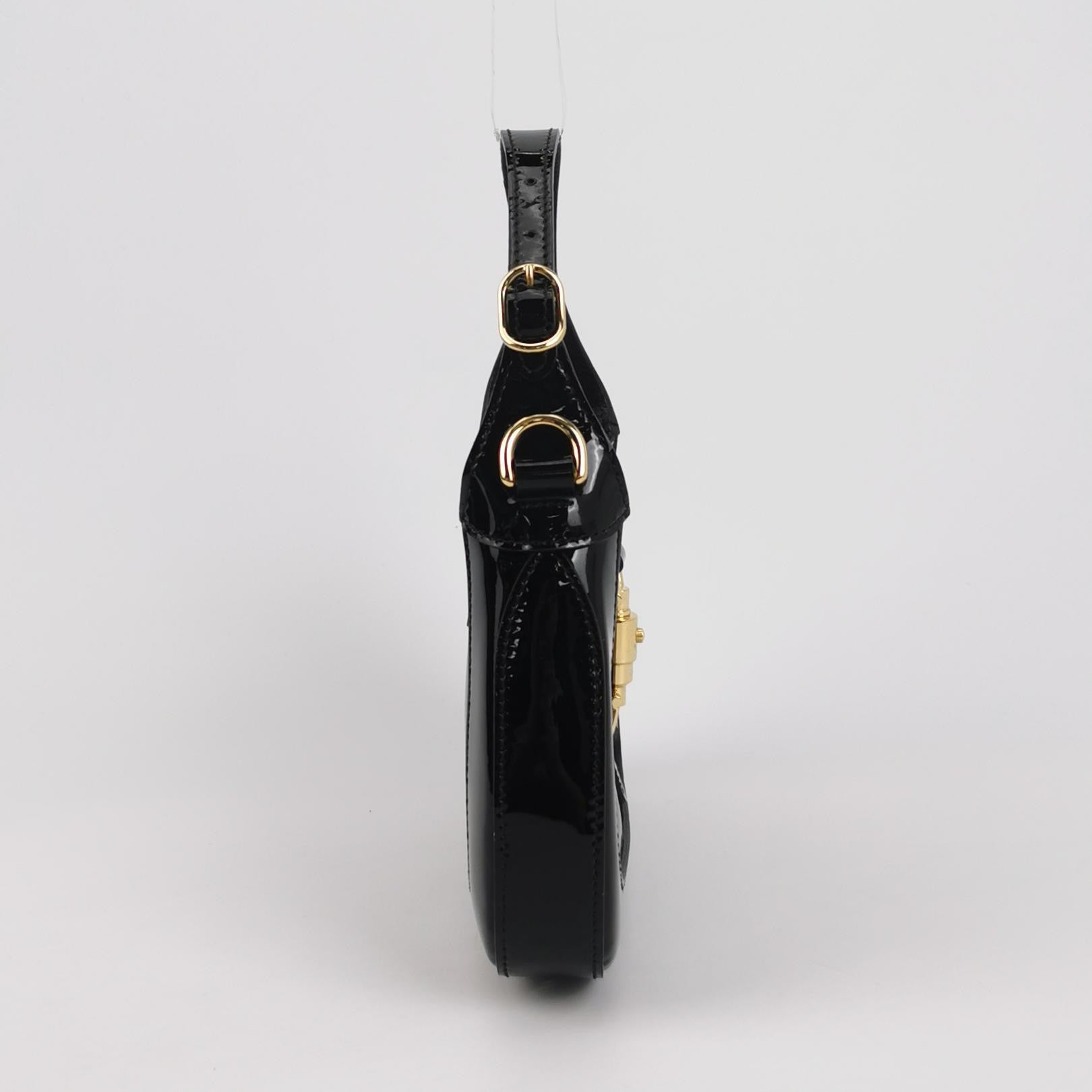 Gucci Jackie 1961 Mini Black Patent Leather Bag with Crystal Chain Strap