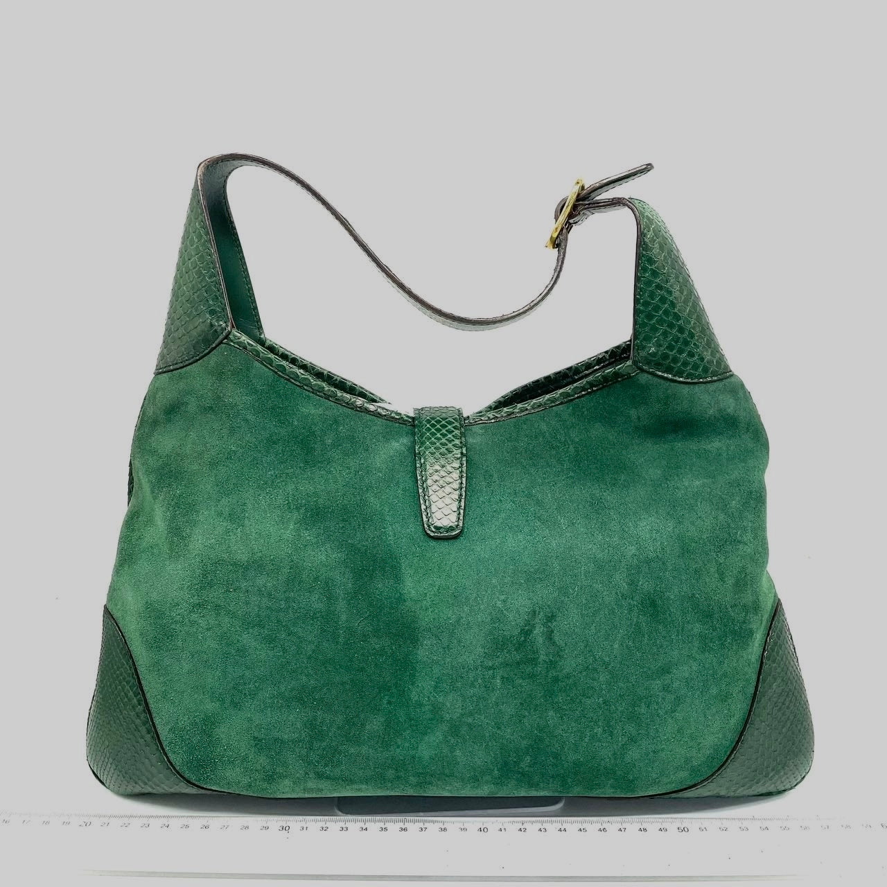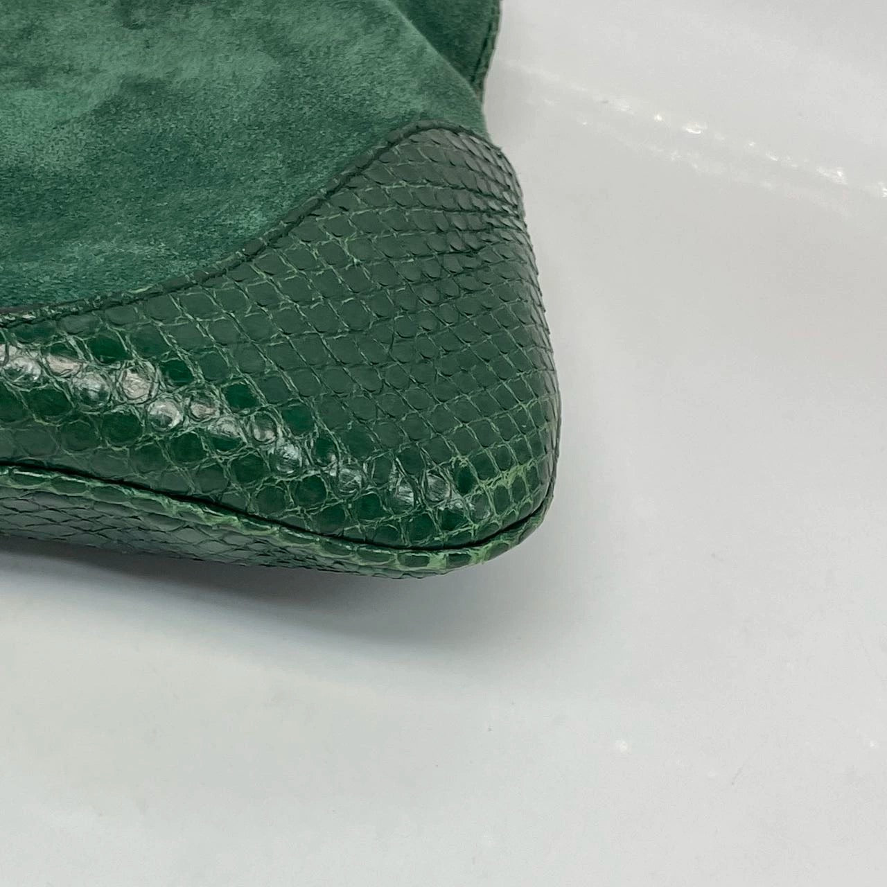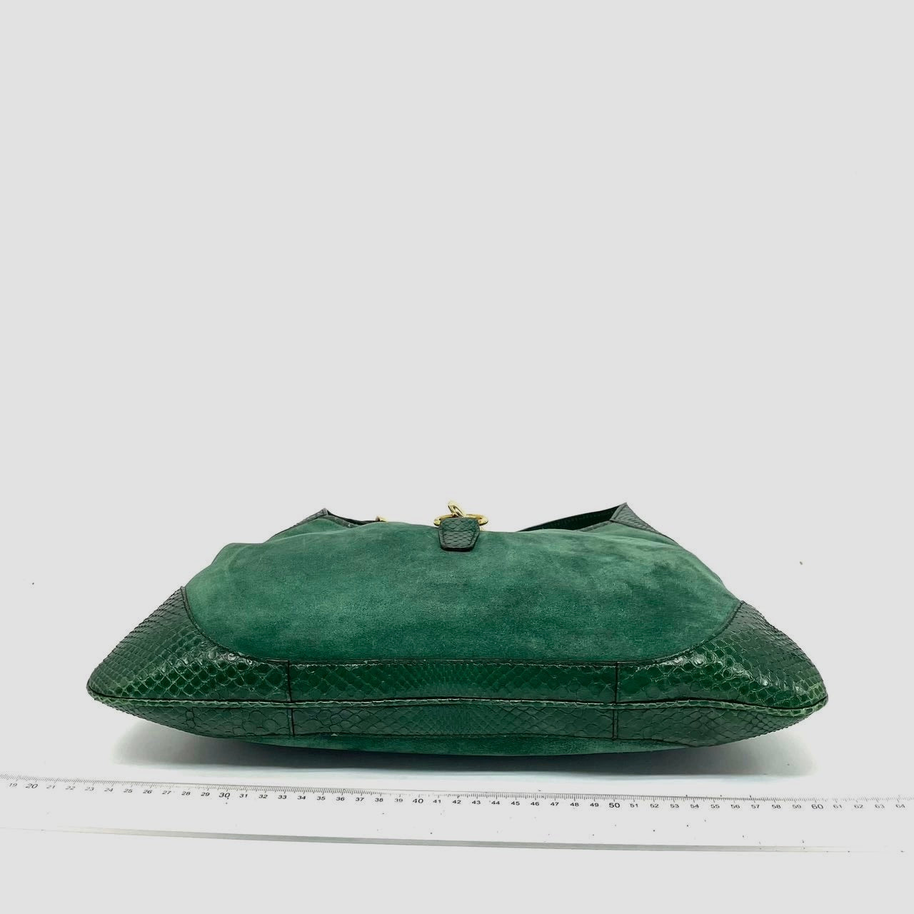 Gucci Jackie Vintage Large Green Suede and Snake-skin Leather Gold Hardware