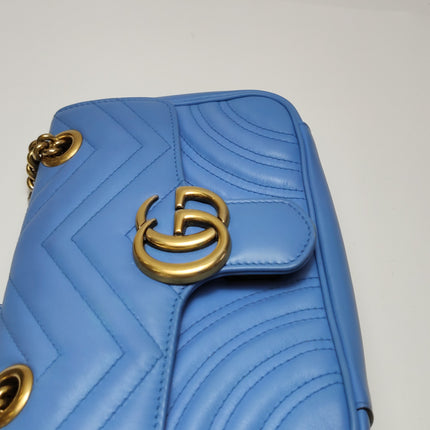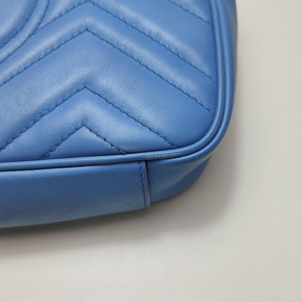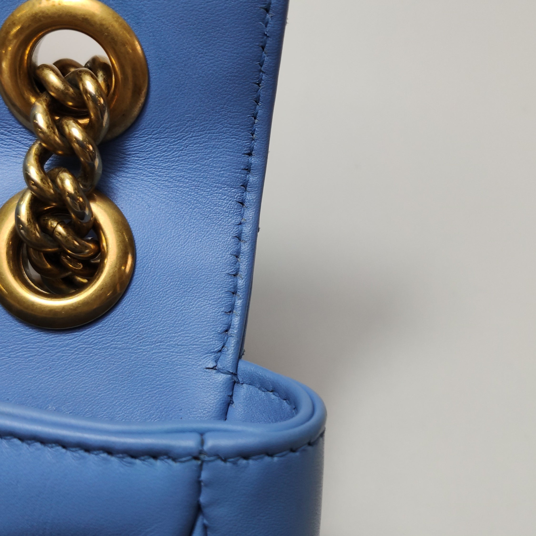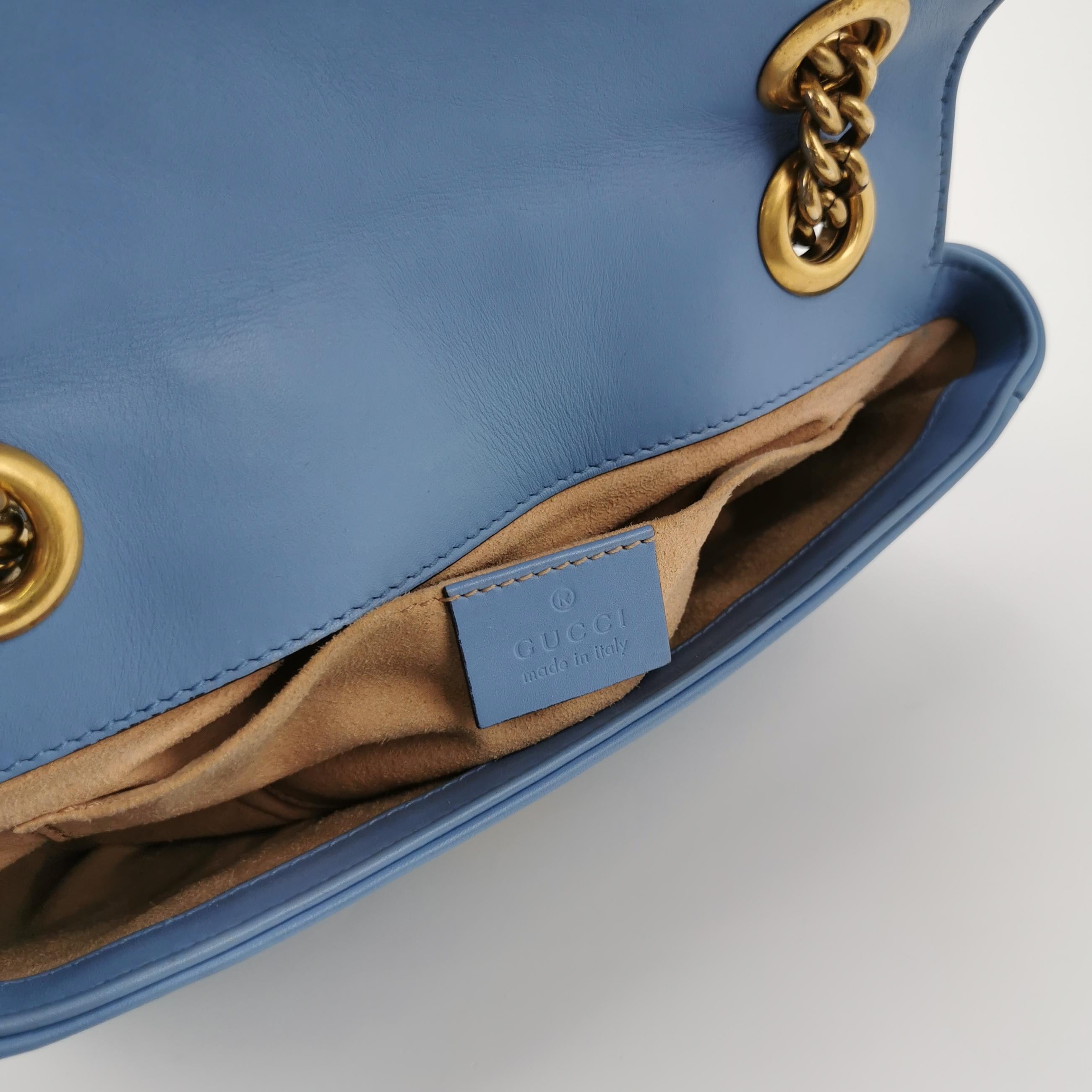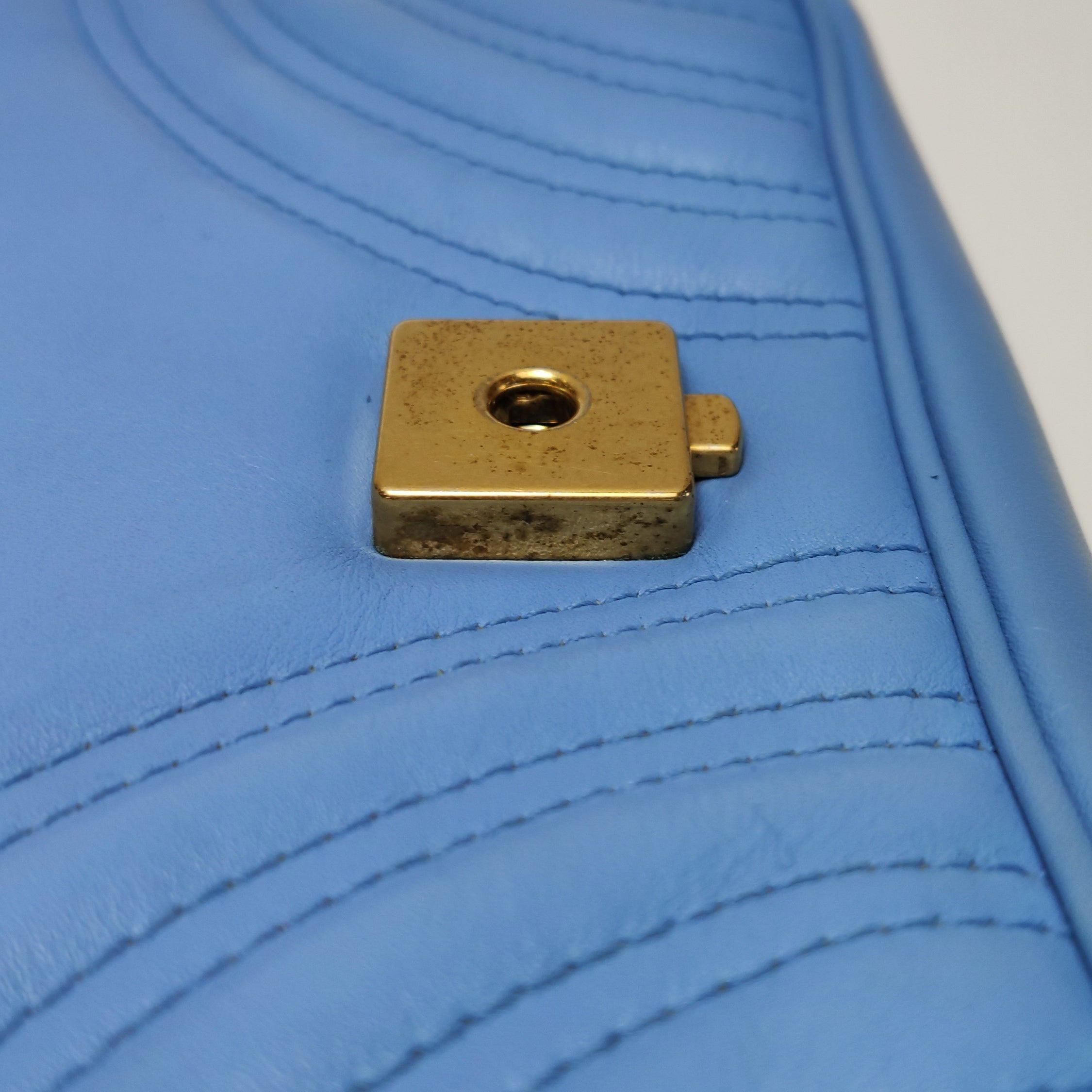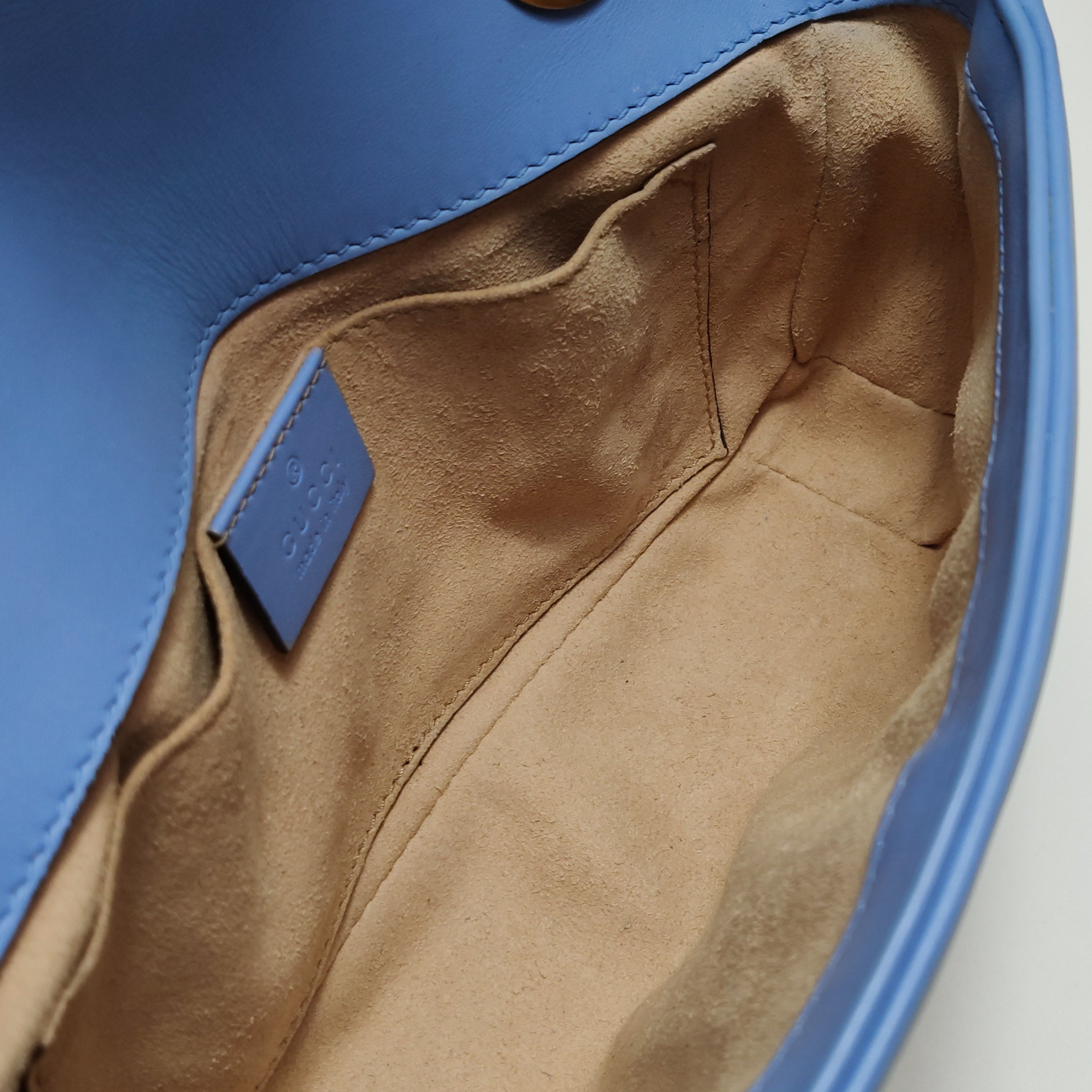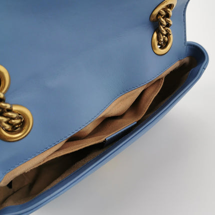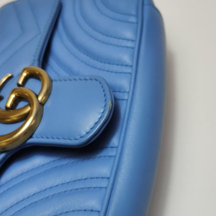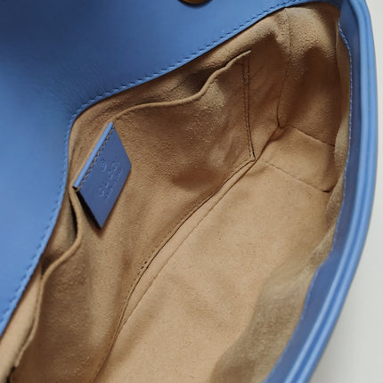 Gucci Marmont Mini Flap Baby Blue Calfskin Leather Handbag Gold Hardware